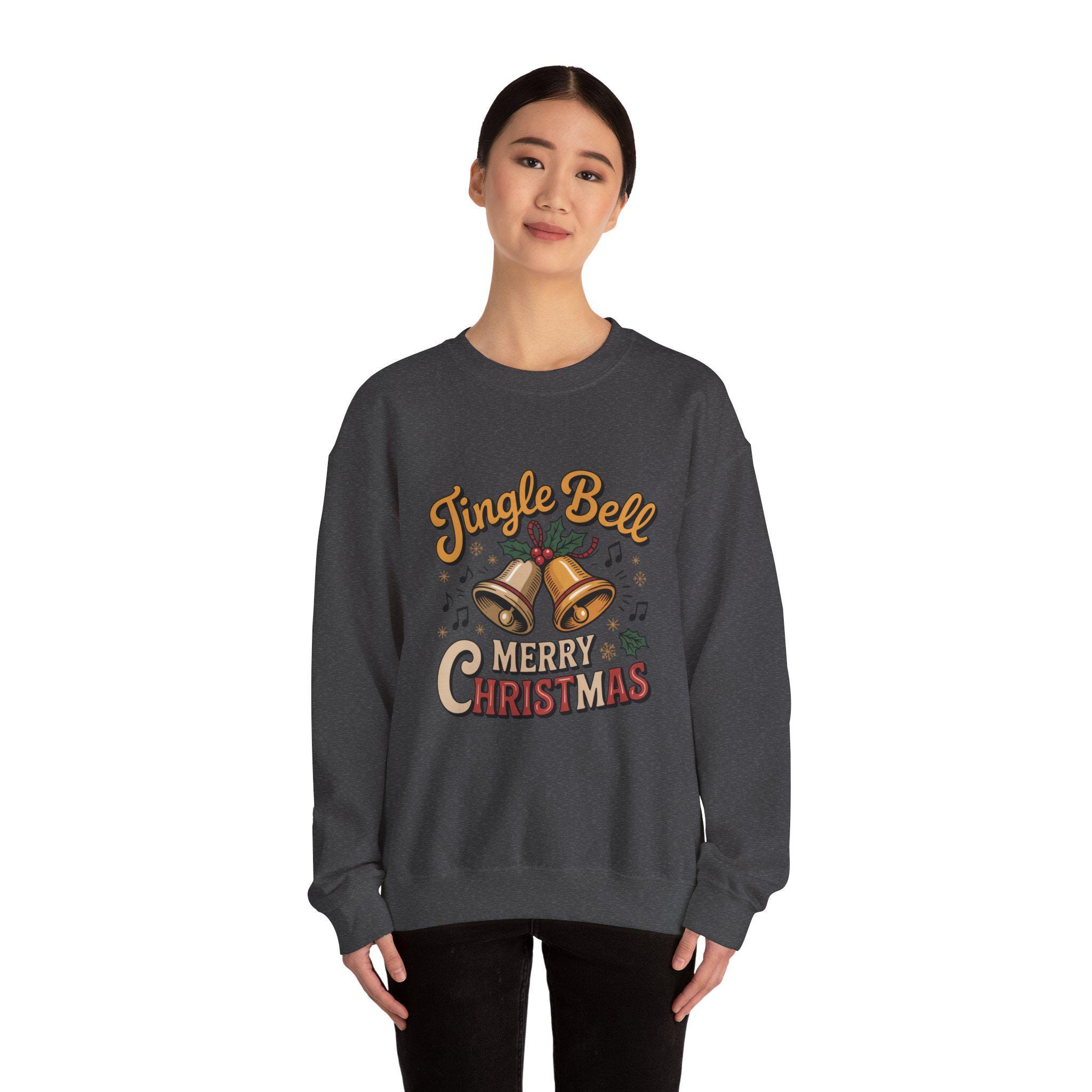 Introducing a cozy Unisex Heavy Blend™ Crewneck Sweatshirt, perfect for embracing the festive spirit. This sweatshirt showcases a playful "Jingle Bell Merry Christmas" design, adding a cheerful touch to your winter wardrobe. The soft cotton-polyester blend ensures unparalleled comfort, making it ideal for holiday gatherings, cozy nights by the fire, or casual outings with loved ones. Designed for adults, this timeless piece resonates with those who embrace the joy of the holiday season. Whether you're celebrating Christmas, attending holiday parties, or simply enjoying a winter evening, this sweatshirt brings warmth and style to every occasion. Gift it to friends and family, or treat yourself to a festive wardrobe staple that radiates joy and comfort during the most wonderful time of the year!