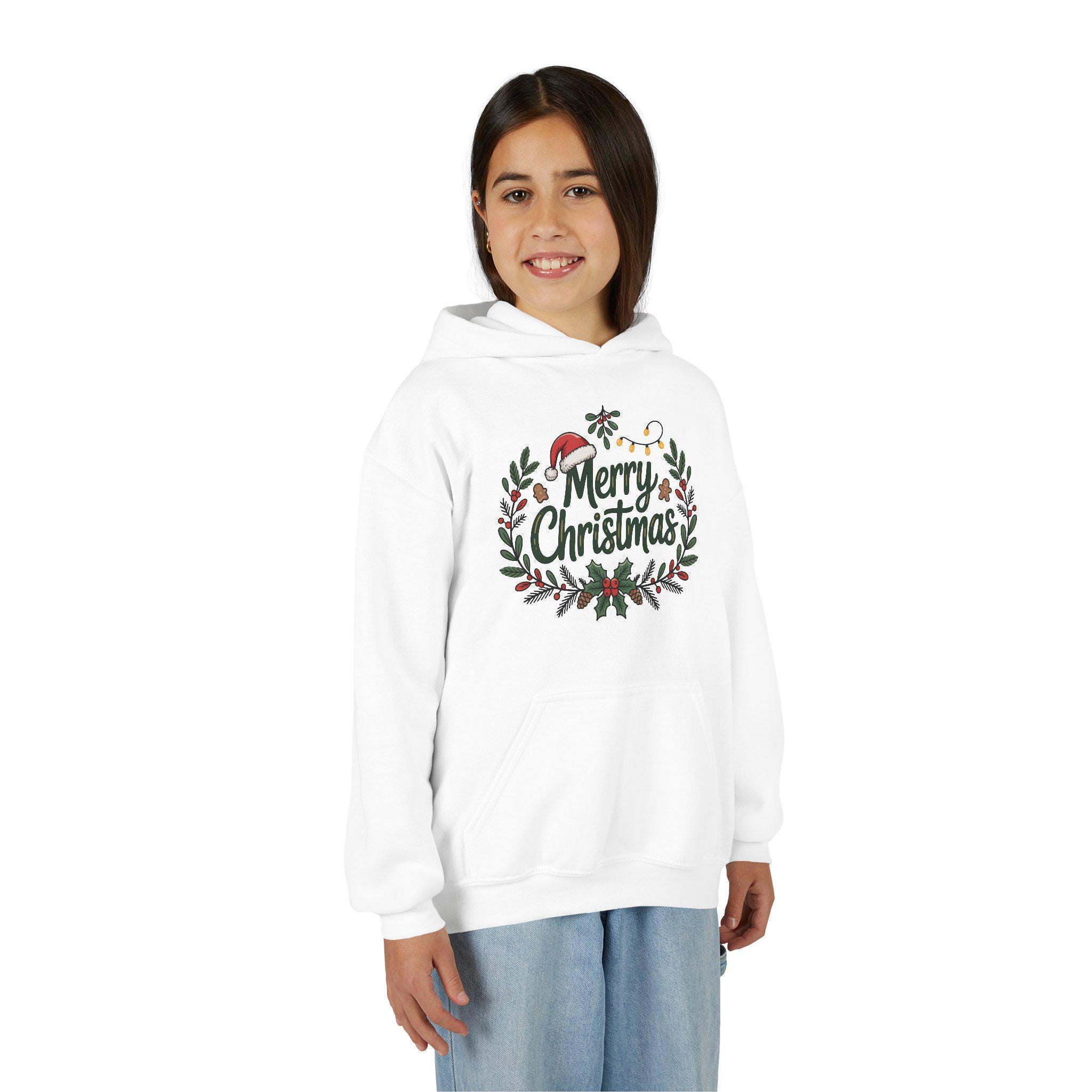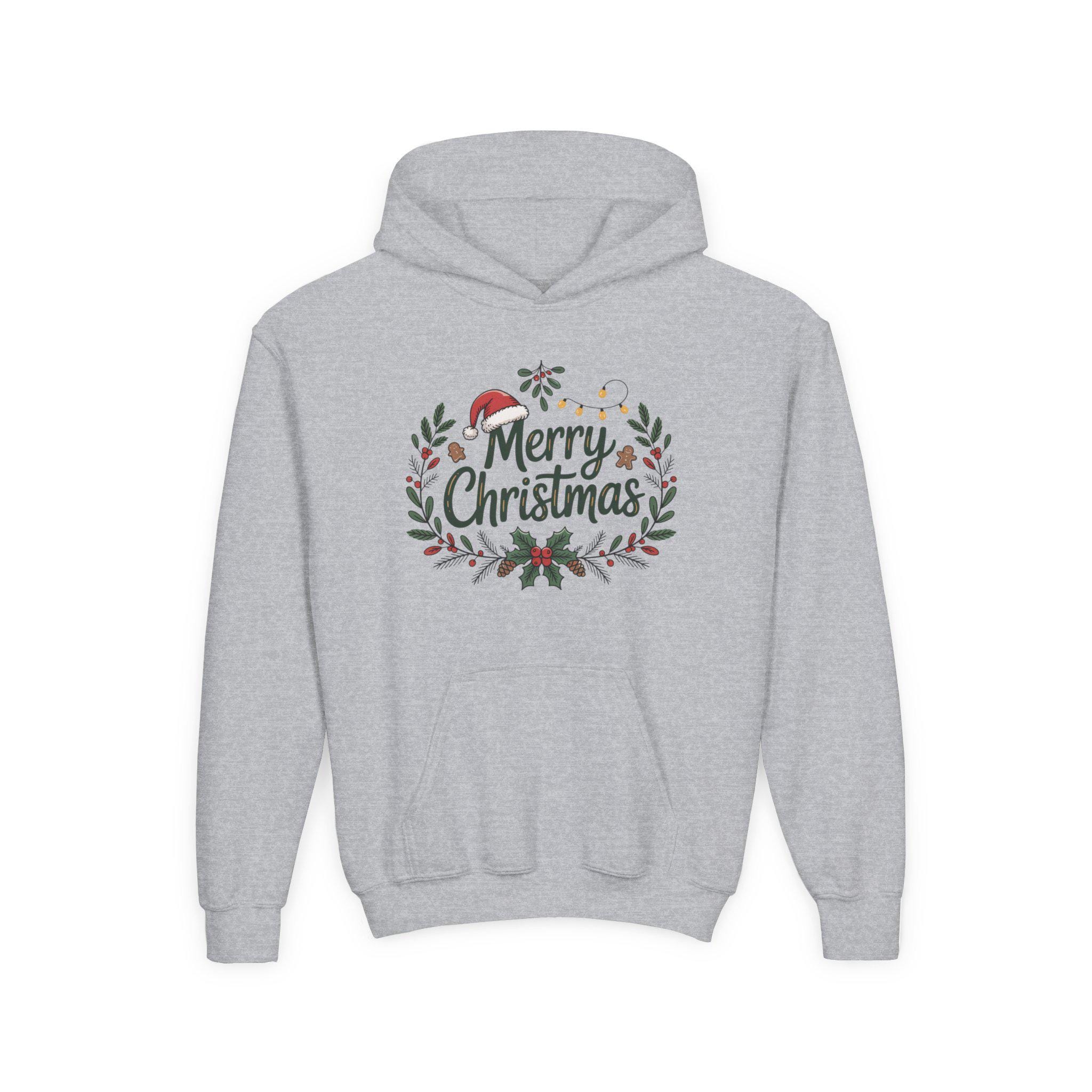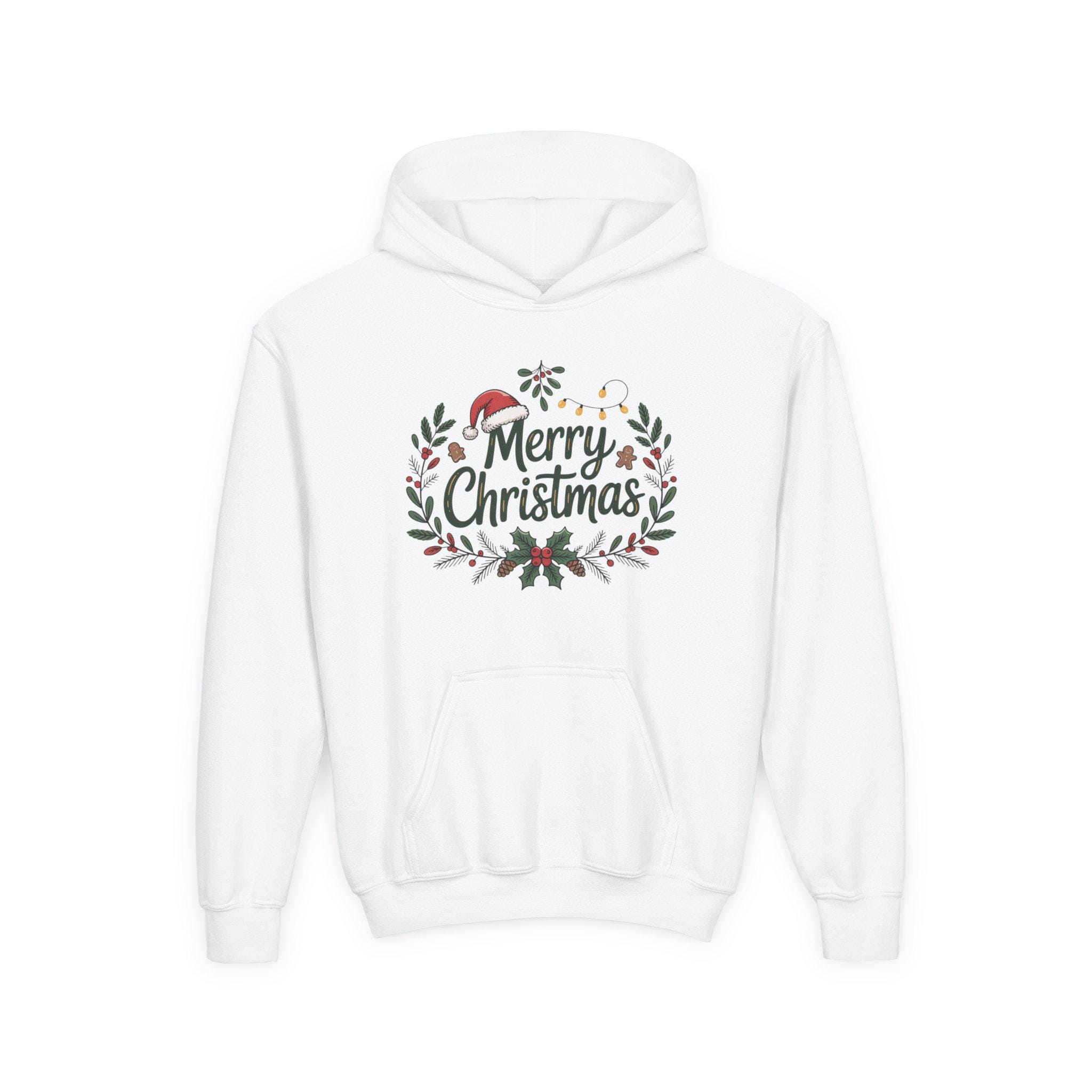 Wrap yourself in warmth and cheer with this cozy Youth Heavy Blend Hooded Sweatshirt. Designed to bring comfort and festive joy, this hoodie features a playful "Merry Christmas" design that encapsulates the spirit of the holiday season. Perfect for children, this sweatshirt is ideal for family gatherings, school events, or cozy nights around the fireplace. The kangaroo pocket not only adds a stylish touch but also keeps hands warm during chilly winter days. Whether you're out building snowmen or enjoying holiday festivities, this hoodie brings an inviting vibe to any occasion. Gift it for Christmas, birthdays, or simply to spread holiday cheer!