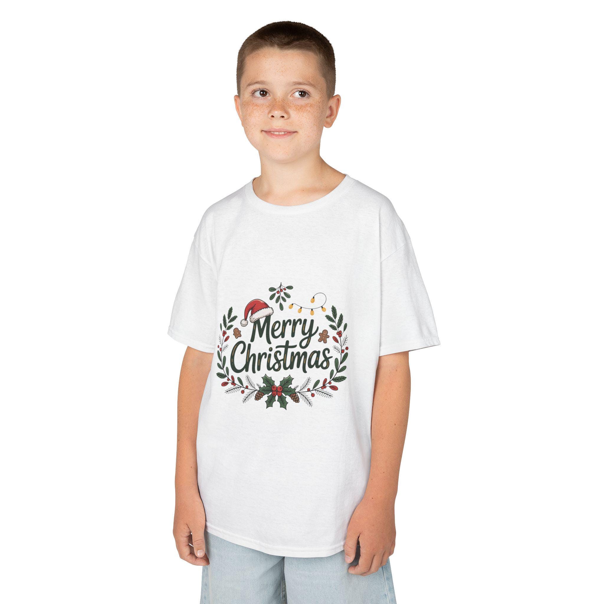 Celebrate the joys of childhood with this Kids Heavy Cotton™ Tee, designed to embody comfort and style for your little ones. Made from soft, midweight cotton, this tee feels gentle against the skin and is perfect for all-day wear. The timeless crew neckline and classic fit make it ideal for everyday adventures or festive celebrations. Its cheerful design, featuring a playful 'Merry Christmas' print, adds a festive touch, making it a perfect choice for the holiday season. Whether it's for family gatherings, school activities, or just lounging at home, this tee fits seamlessly into your child's wardrobe. It's a delightful gift for birthdays, holidays, or any child-centric festivity, sure to bring joy and smiles at every occasion.