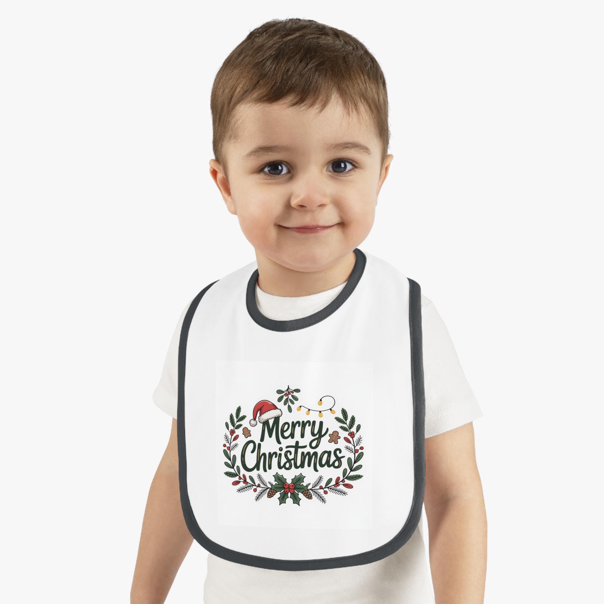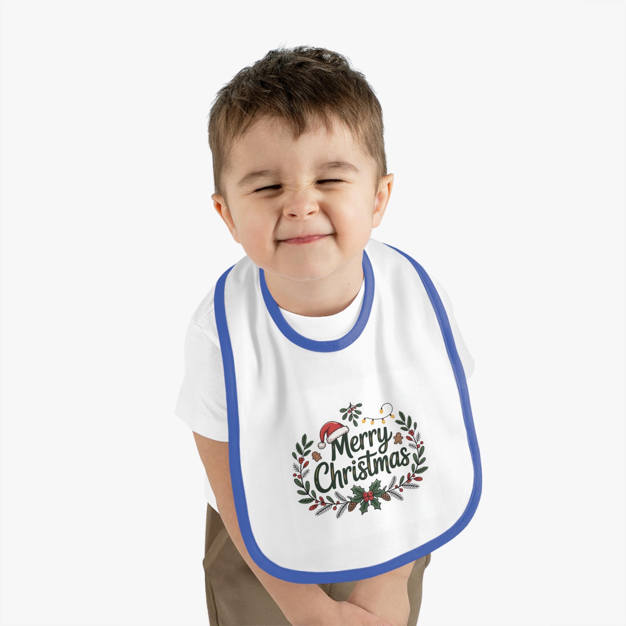 Introducing the perfect addition to your little one's holiday wardrobe, this adorable Baby Bib is designed to keep mealtime messes at bay while adding a festive touch to your child's attire. Made with soft, premium cotton, it ensures comfort and durability, ideal for everyday use or special occasions. The cheerful "Merry Christmas" design brings a joyful vibe to family gatherings and celebrations, making it a delightful gift for new parents, grandparents, or anyone celebrating their child's first holiday season. Perfect for Christmas parties, family photos, or just adding some holiday spirit at home, this bib is a must-have for your baby's festivities!