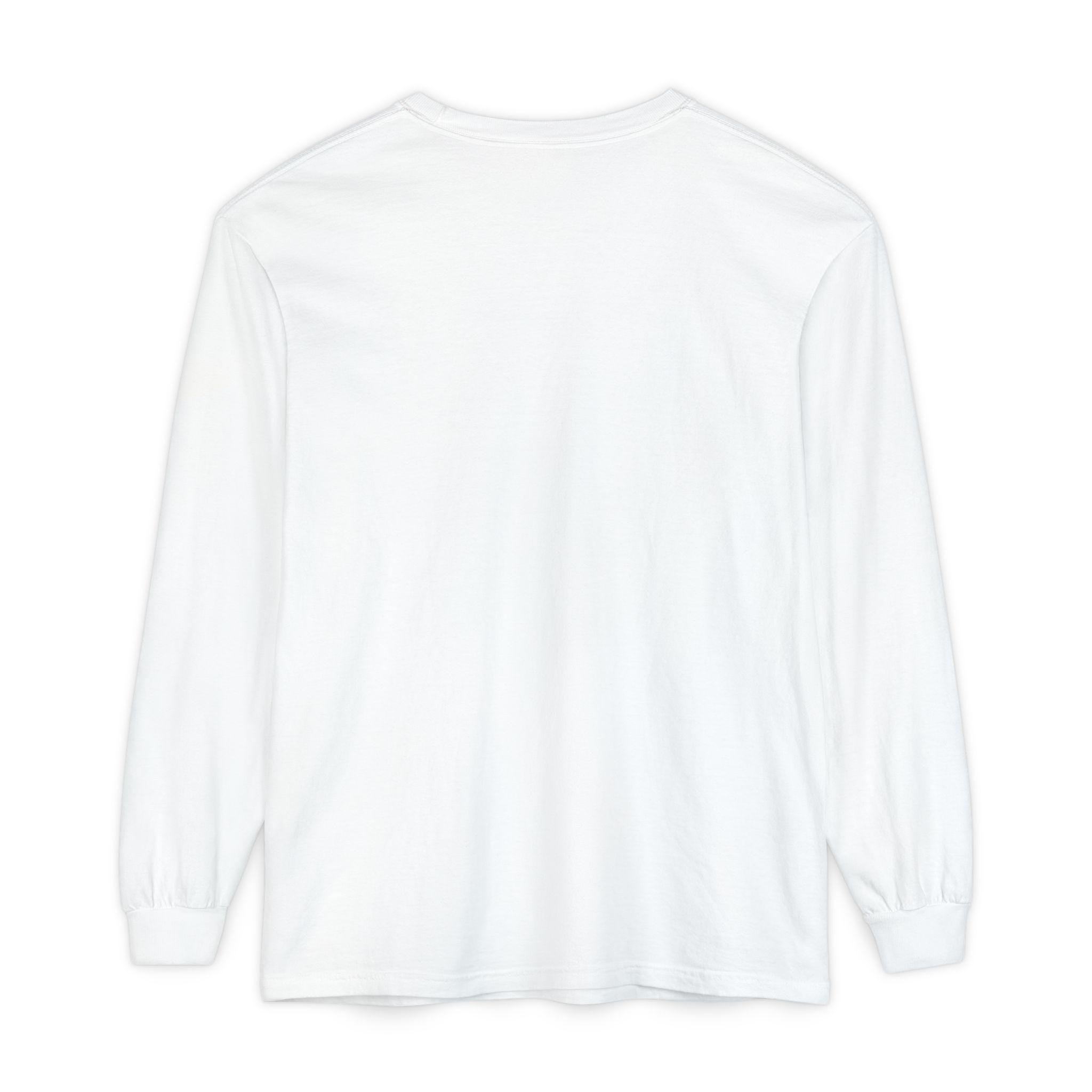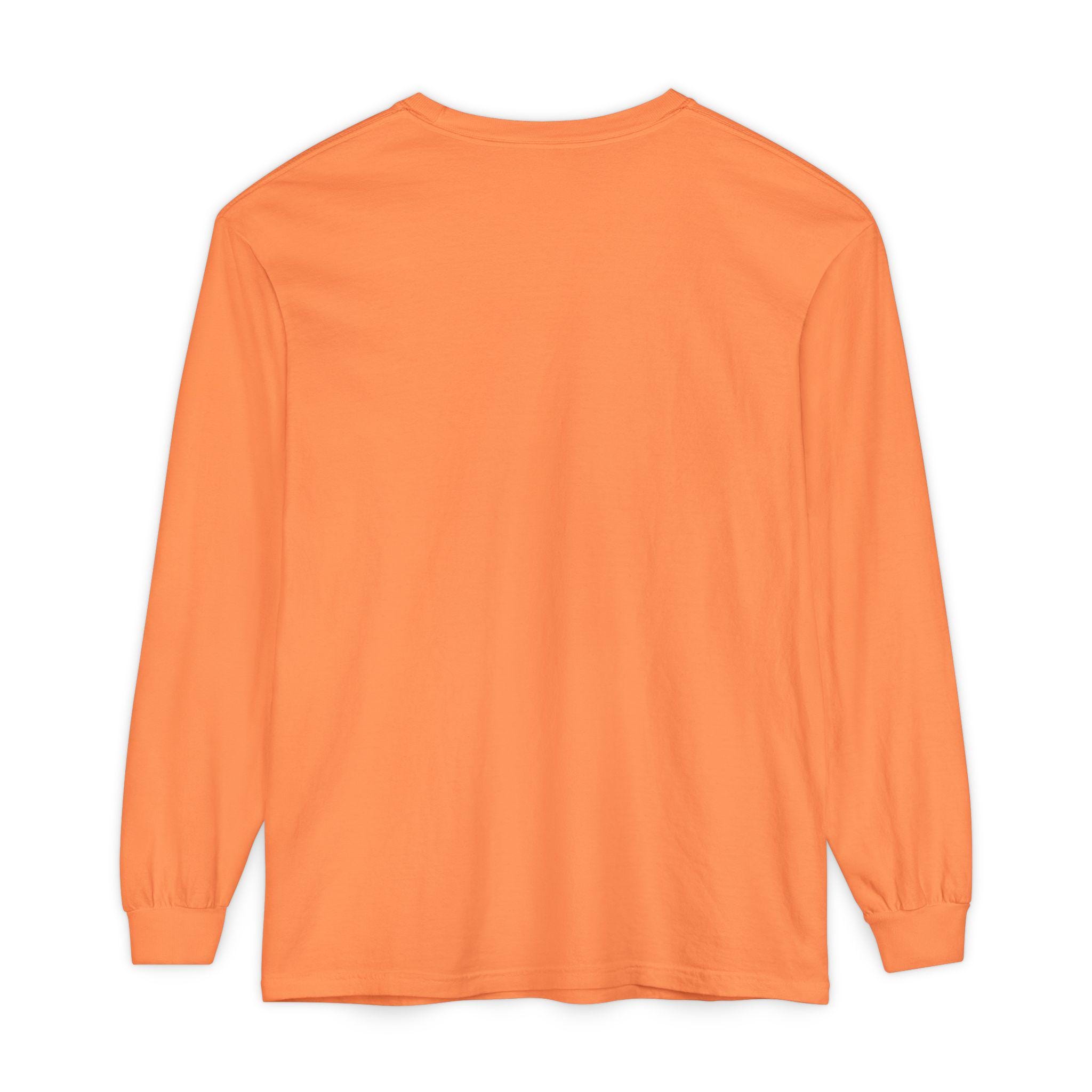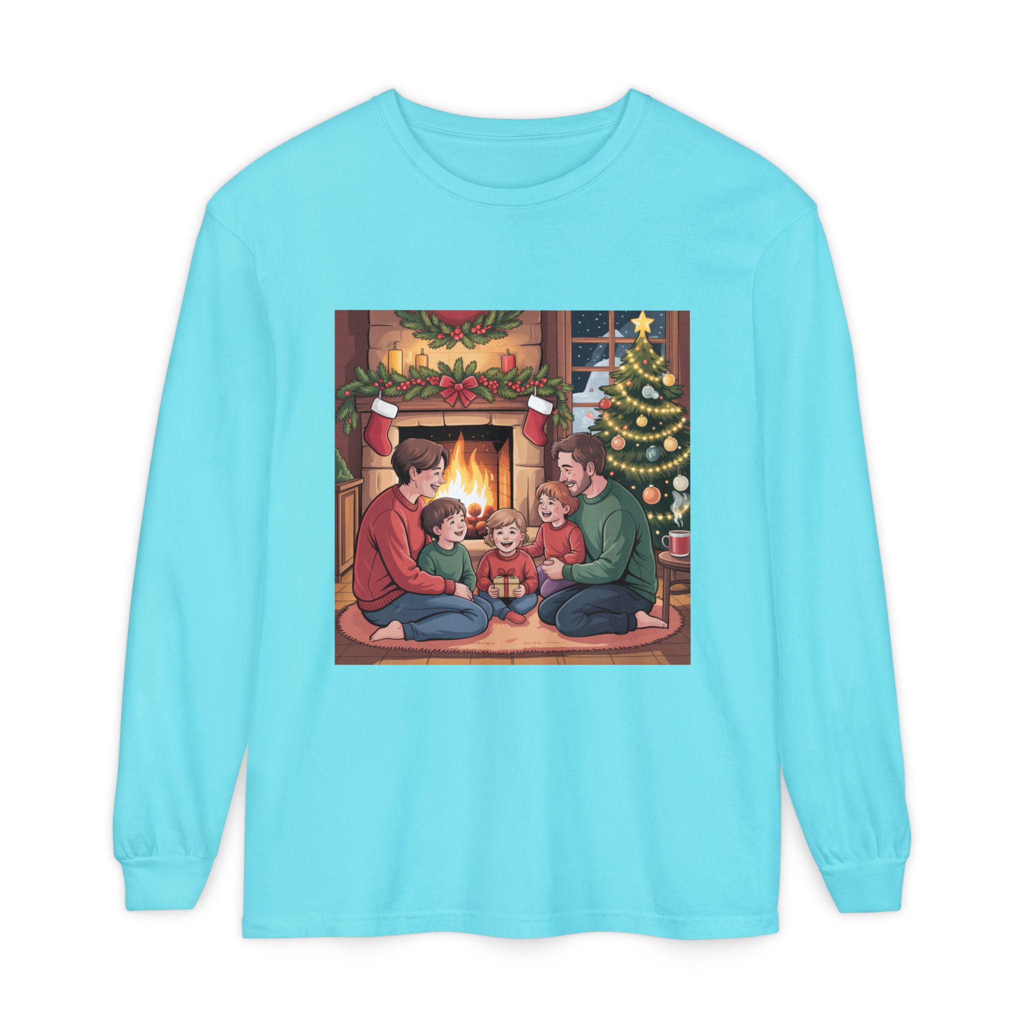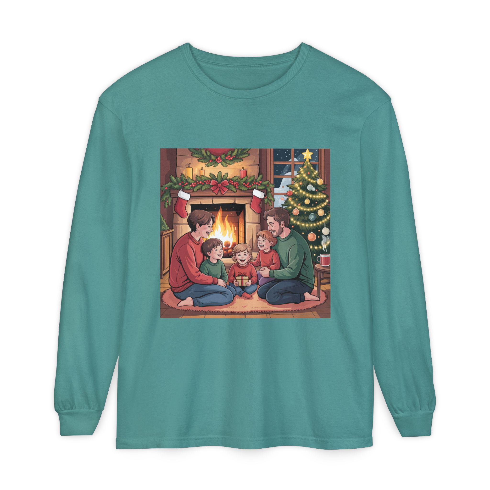 A festive Christmas family-themed long sleeve T-shirt in a unisex style, perfect for the holiday season. Made for adults, this garment-dyed T-shirt features double needle sleeve and bottom hems, ribbed-knit cuffs, neck and shoulder tape, and is made from 100% ring spun cotton.