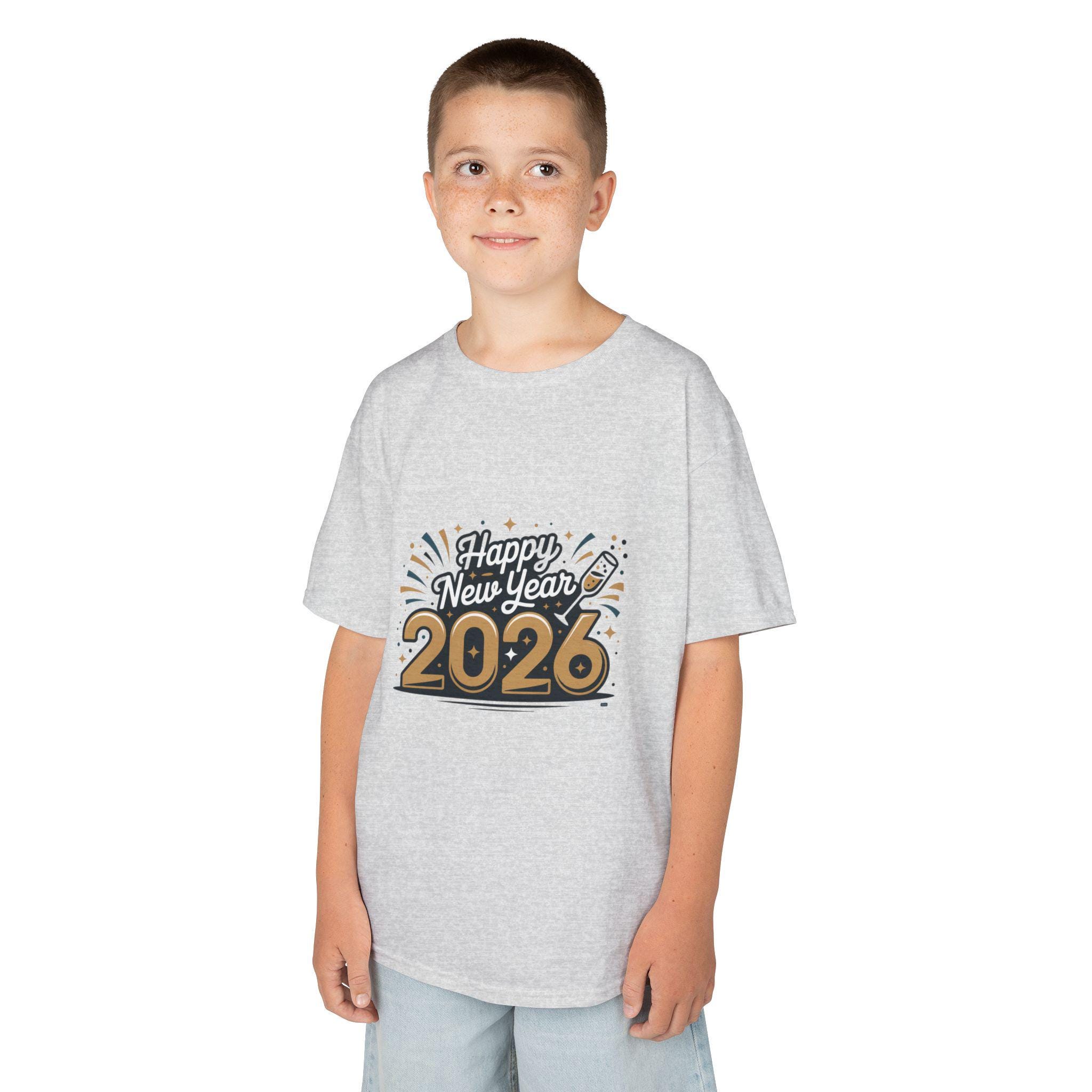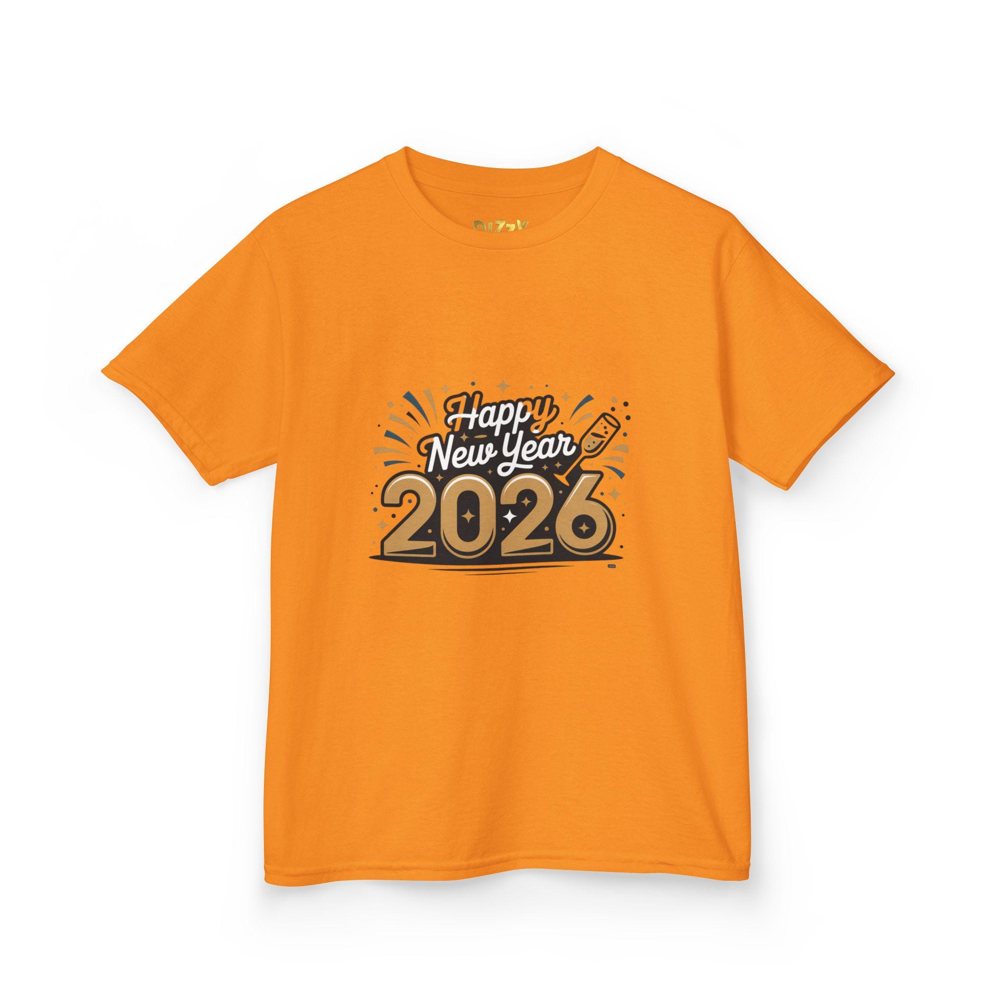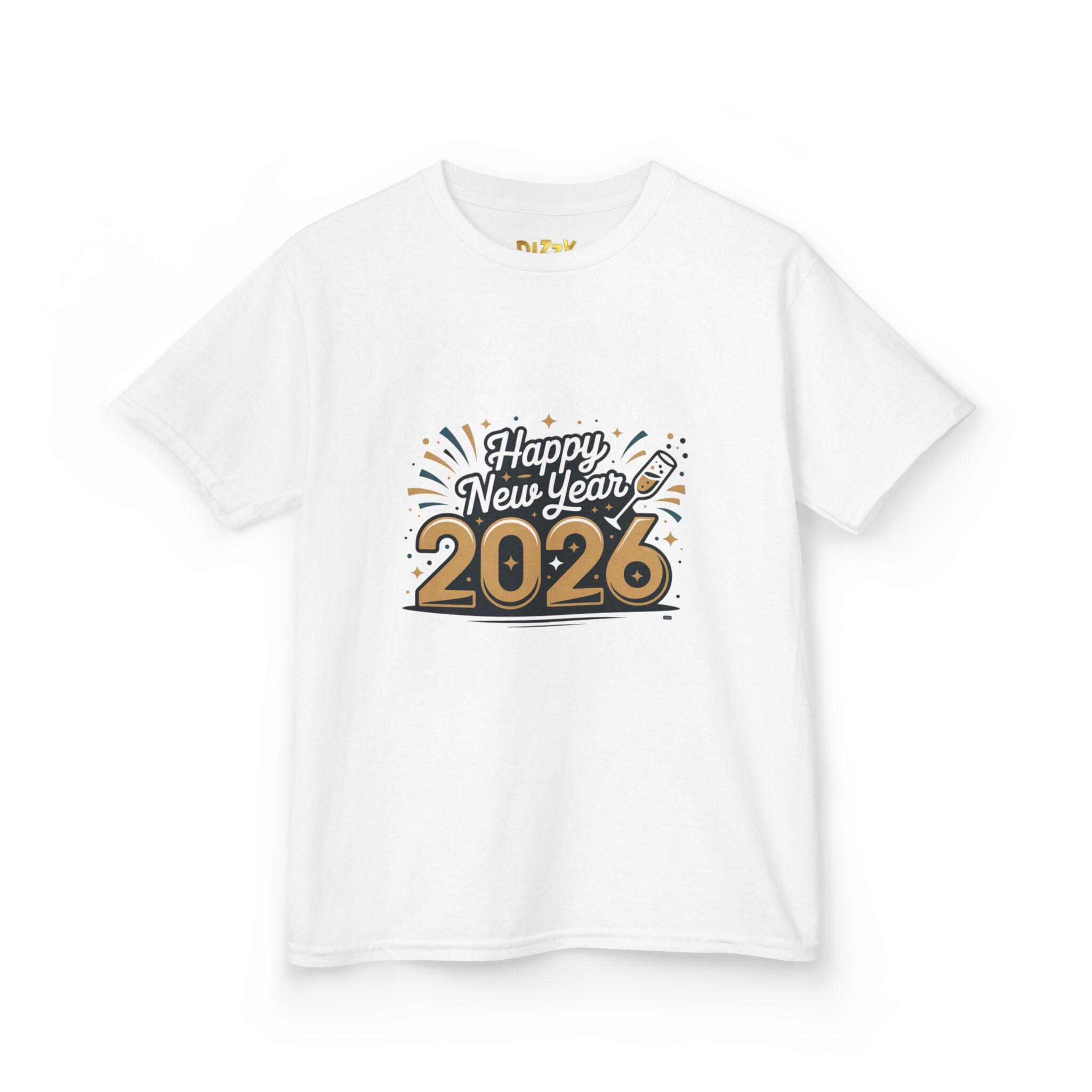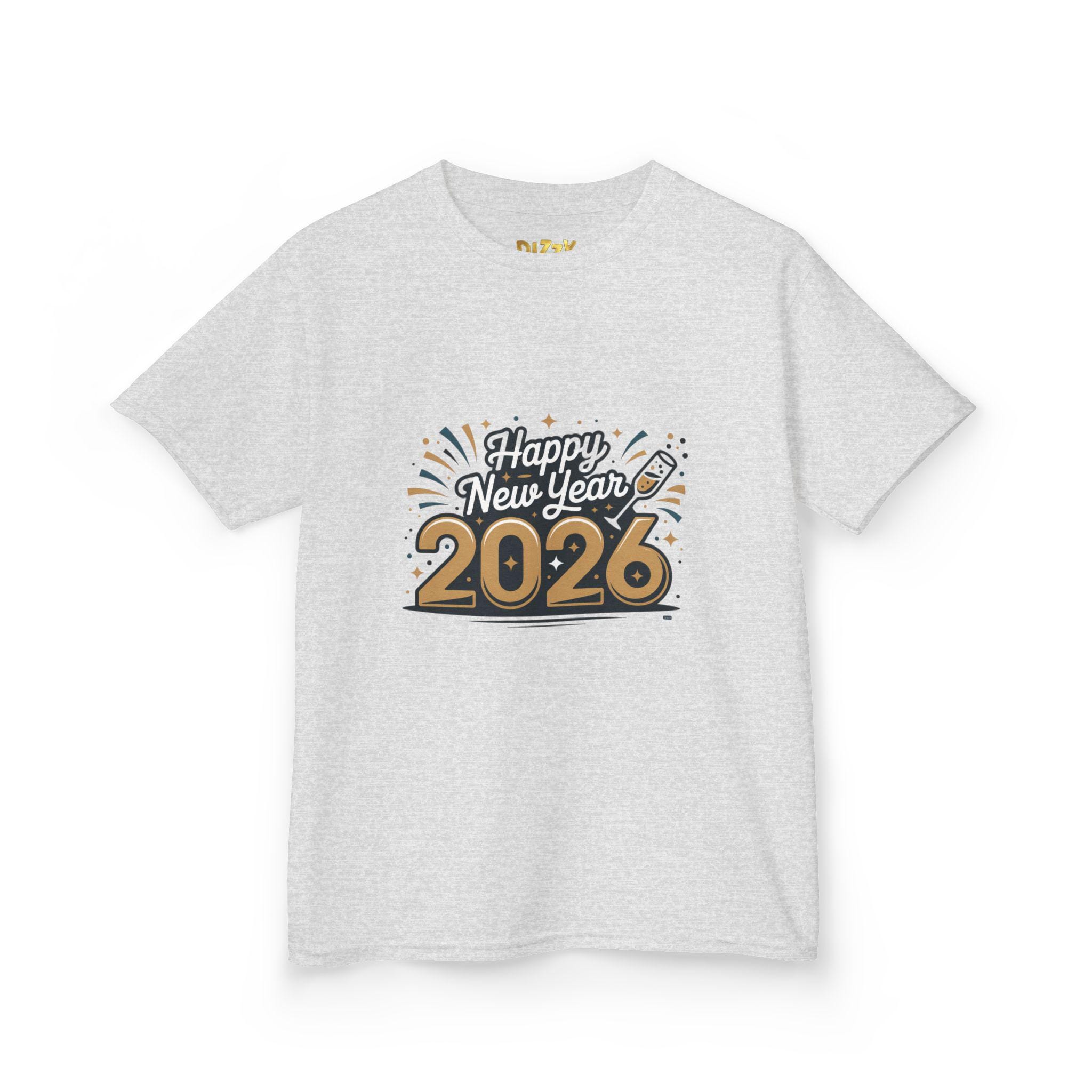 Celebrate the New Year in style with this festive tshirt designed for kids. Made of soft and midweight US cotton, this tee features a classic fit and crew neckline for everyday comfort. Perfect for young ones looking to join the celebration and welcome the new year.