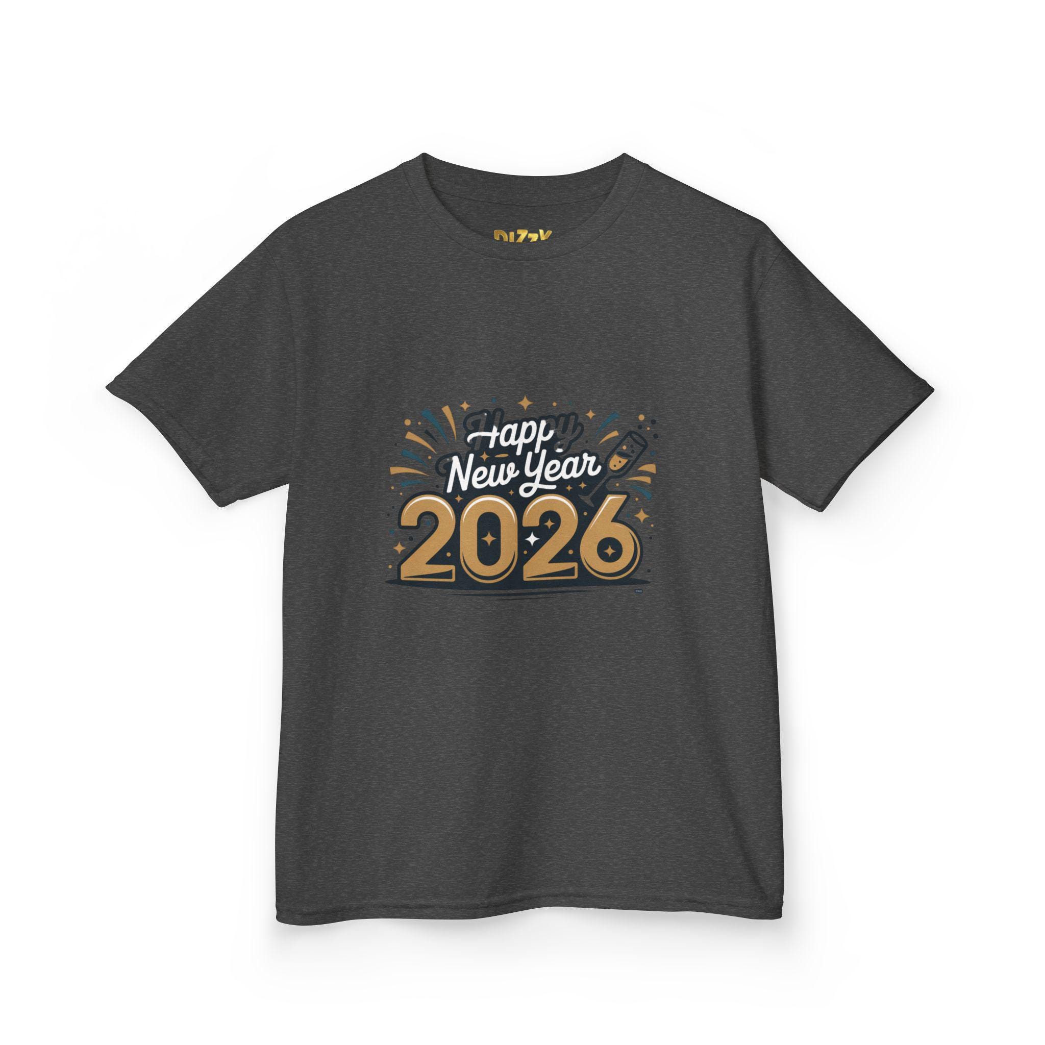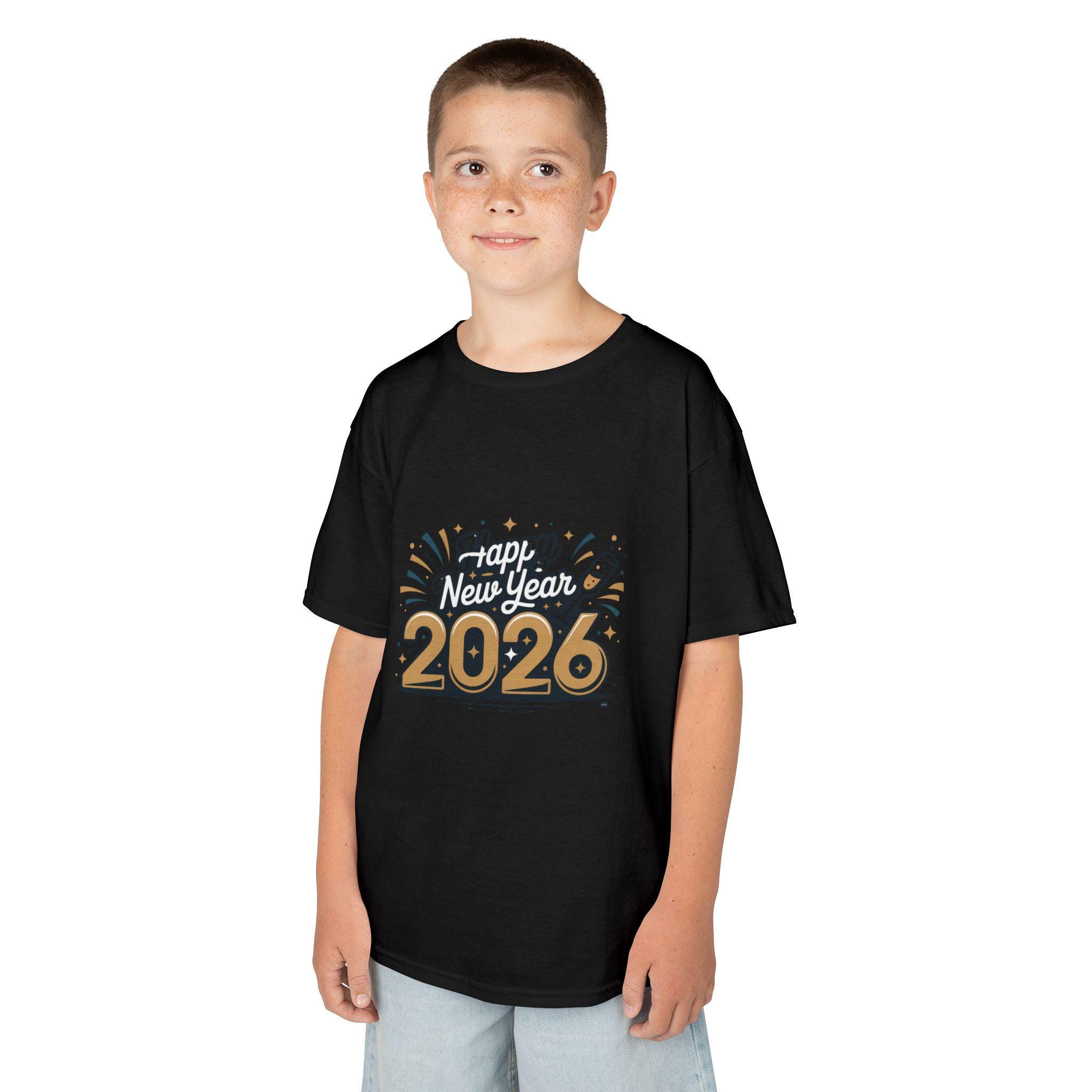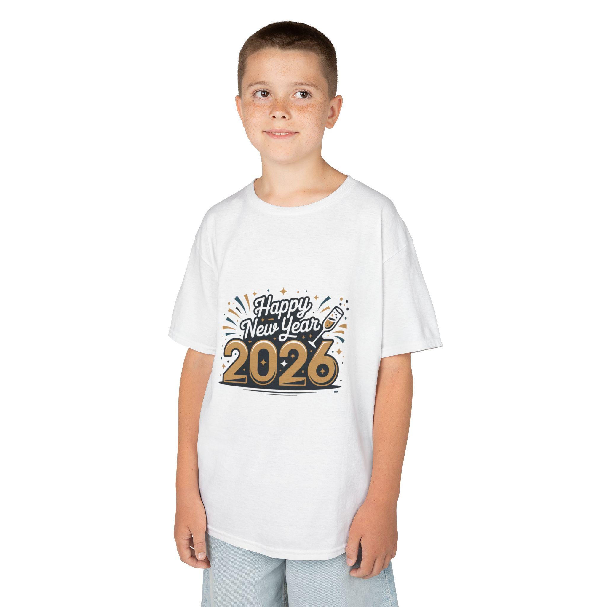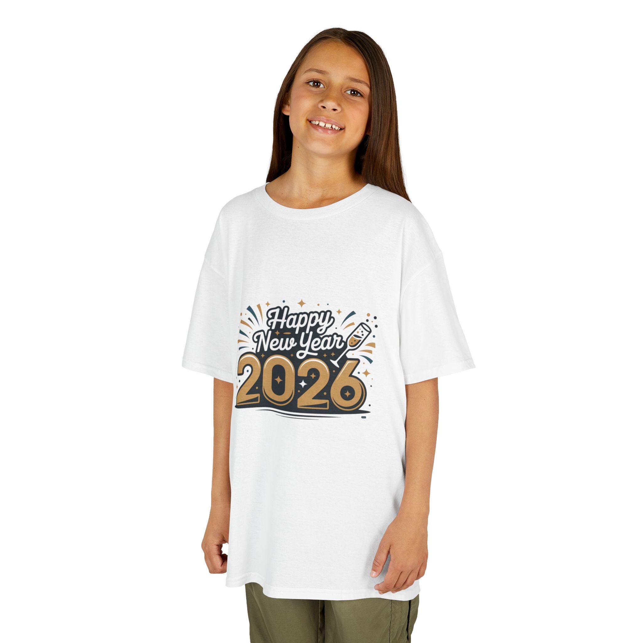 Celebrate the New Year in style with this festive tshirt designed for kids. Made of soft and midweight US cotton, this tee features a classic fit and crew neckline for everyday comfort. Perfect for young ones looking to join the celebration and welcome the new year.