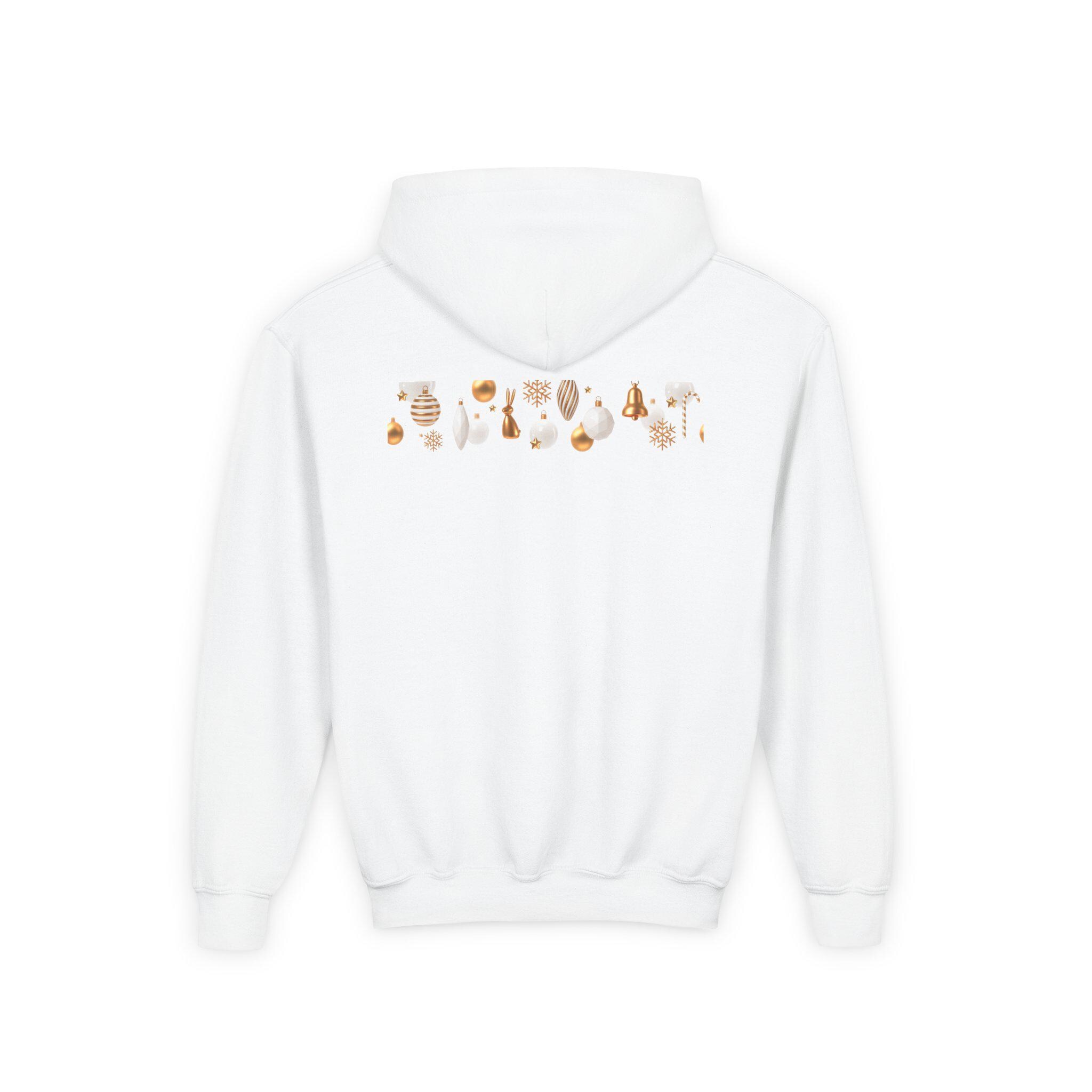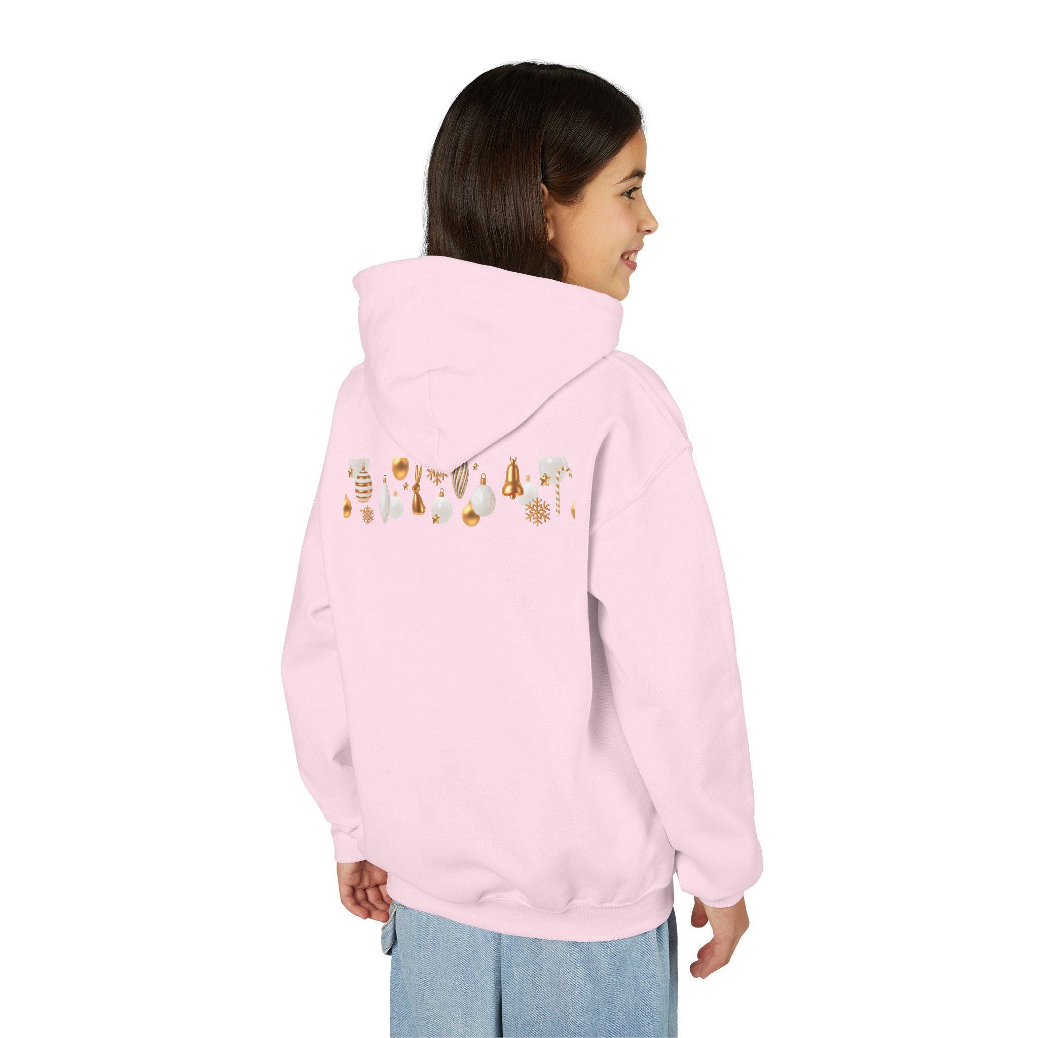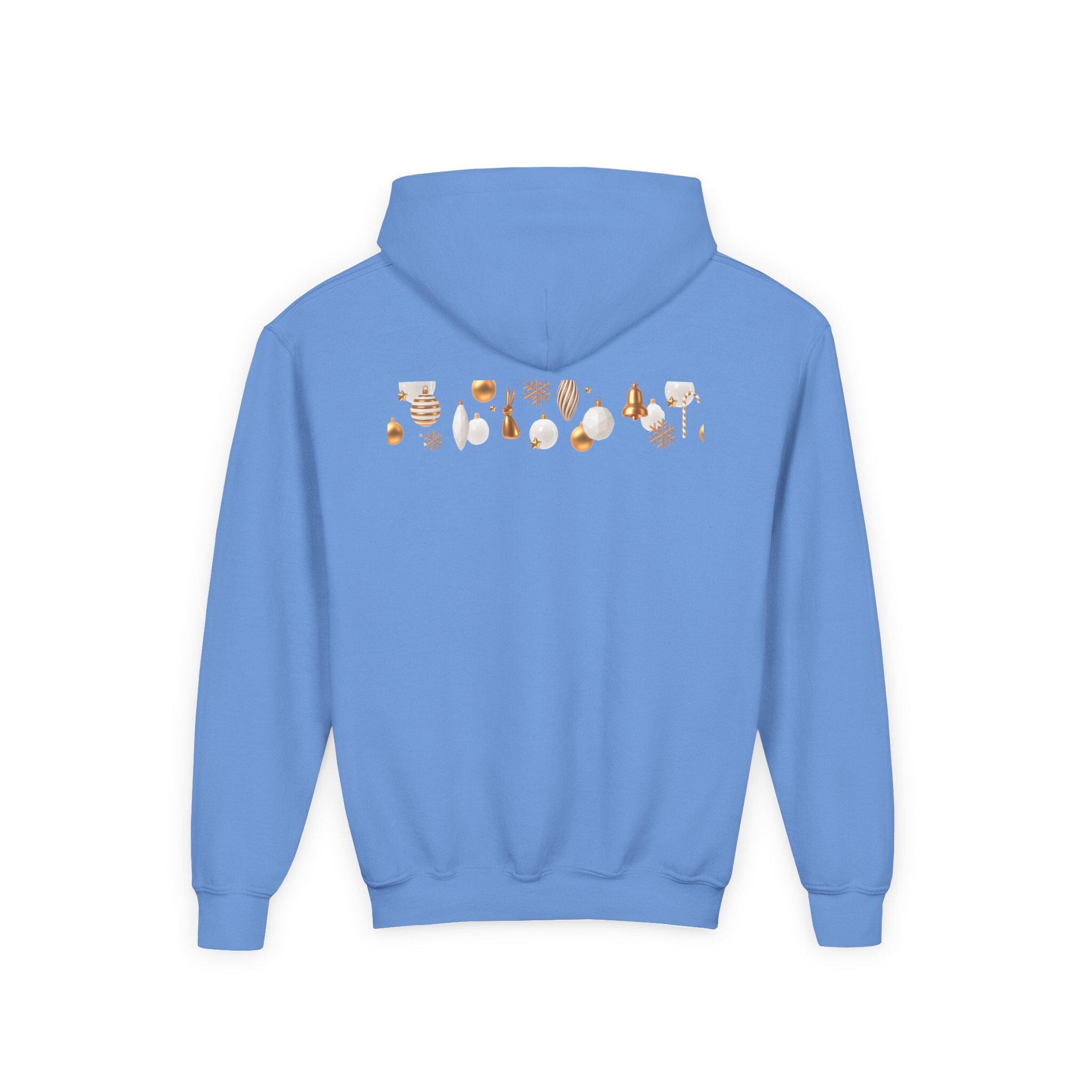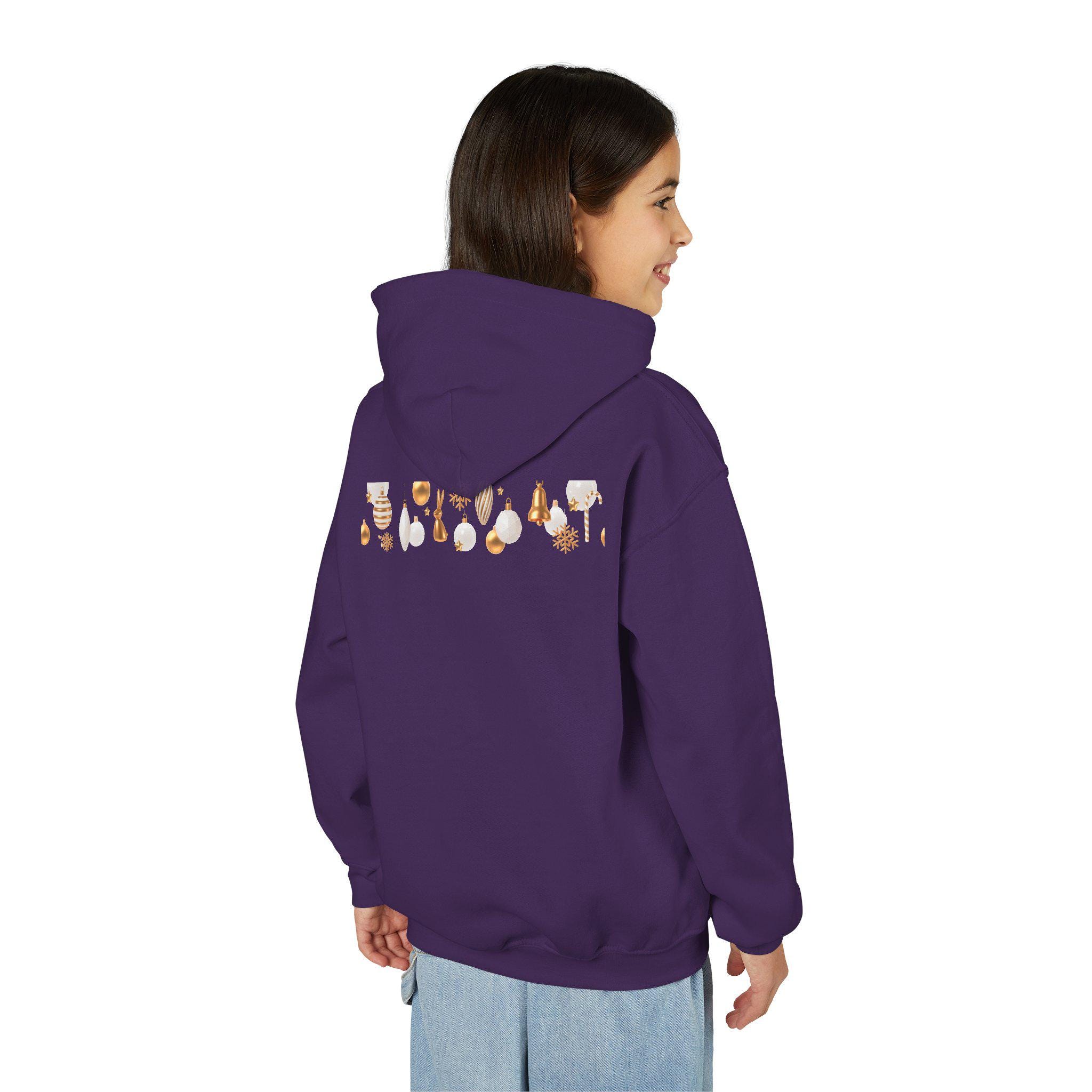 Embrace the cozy spirit of the holiday season with this Youth Heavy Blend Hooded Sweatshirt. Perfectly designed for kids, the sweatshirt features festive imagery that spreads joy and warmth. Whether lounging at home, enjoying a holiday party, or participating in winter festivities, this hoodie adds a delightful touch to any outfit. It's an ideal gift for young ones to wear during Christmas celebrations, family gatherings, or casual outings. The relaxed fit makes it versatile for both playtime and festive moments, ensuring kids stay comfortable and stylish.