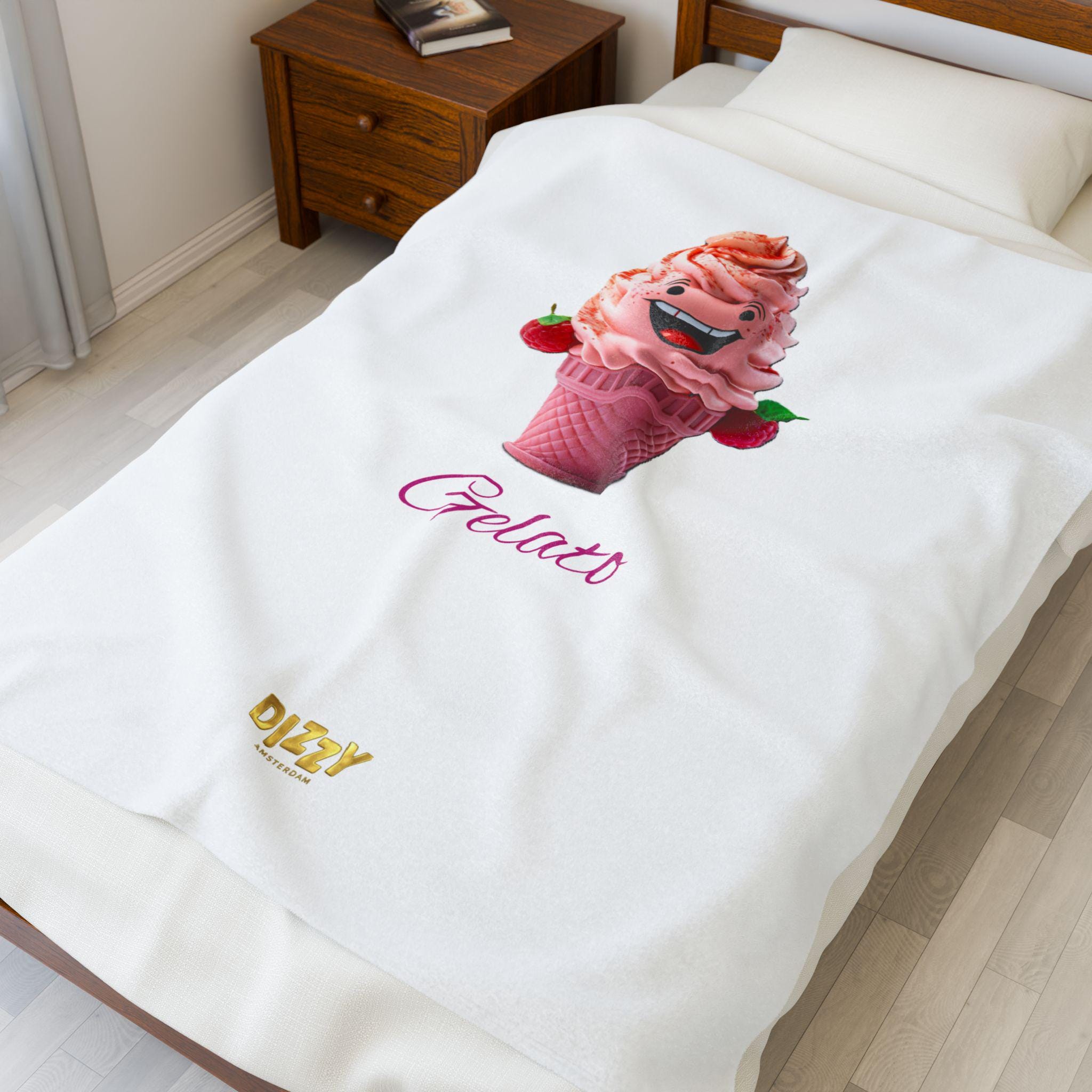 Wrap yourself in cozy comfort with this velveteen plush blanket. Designed for adults, it offers a perfect blend of softness and durability, making it an ideal addition to any relaxation space. The vibrant, high-quality print showcases a delightful gelato character, bringing a playful touch to your home decor. Suitable for chilly evenings, movie nights, or snuggling up with a good book, this blanket enhances your cozy atmosphere. It's a thoughtful gift for birthdays, housewarmings, or any celebration where warmth and joy are welcomed. Treat yourself or a loved one to the luxurious feel and cheerful design of this blanket, perfect for creating memories on those special occasions.