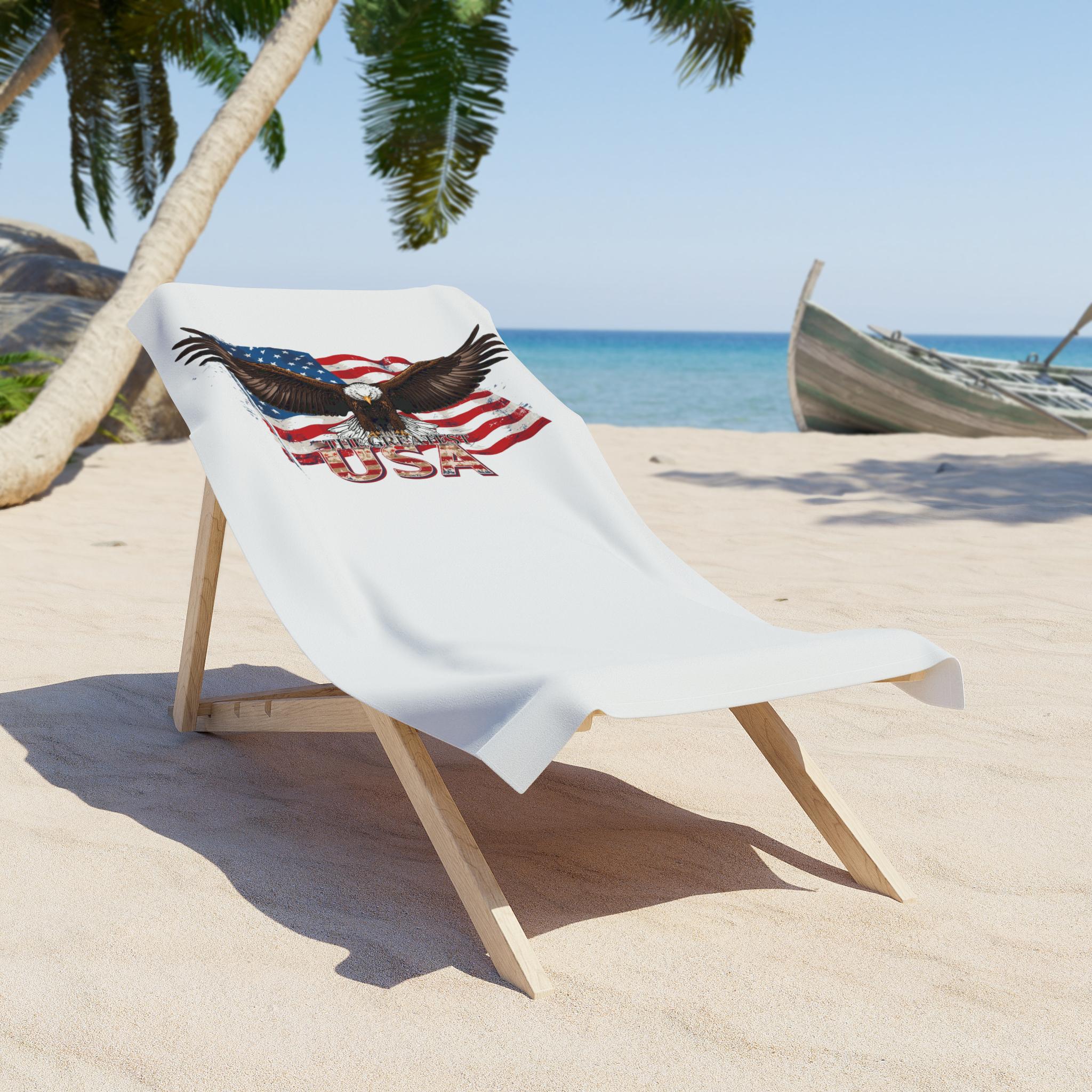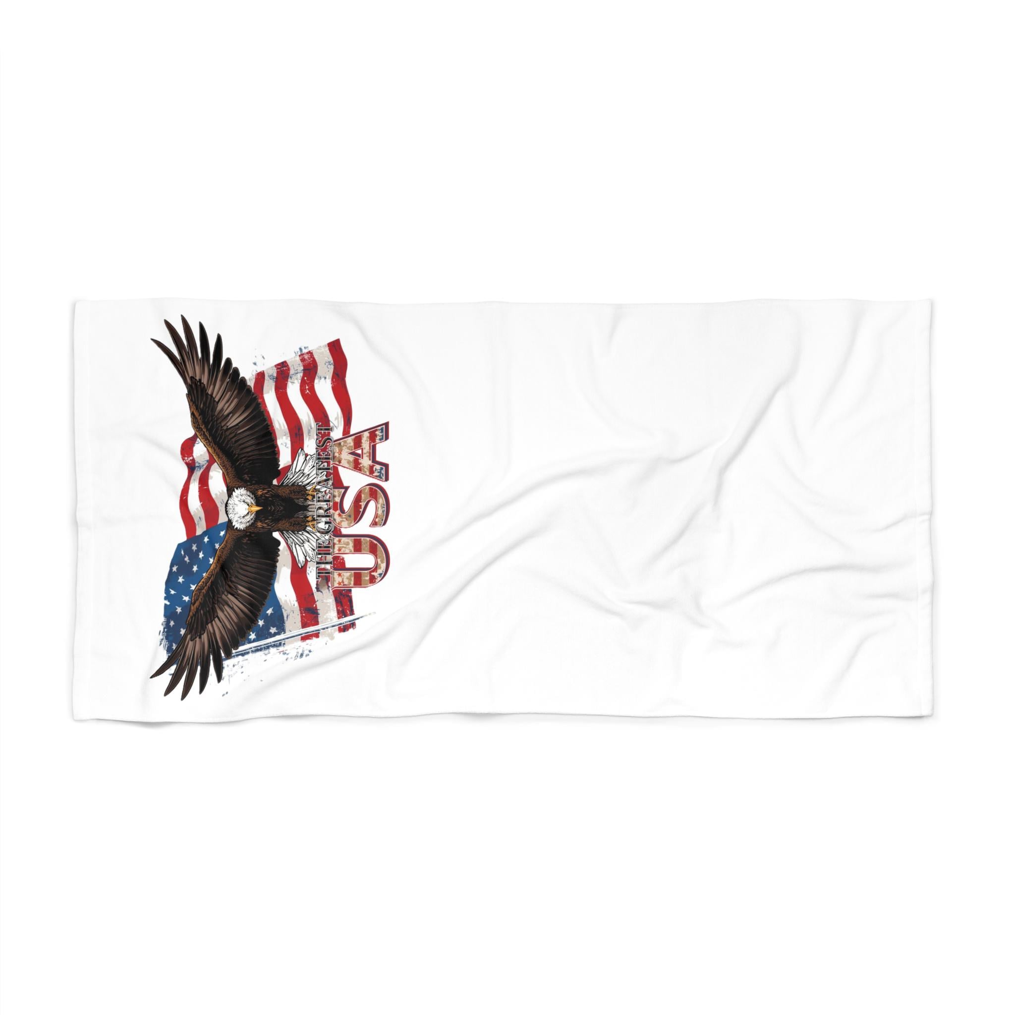 Introducing a stunning beach towel designed for those who love the outdoors and want to make a statement. This vibrant towel features a captivating eagle design against the backdrop of the iconic American flag, perfect for showing your patriotic spirit. Made to bring joy and comfort as you relax on the beach, poolside, or during a picnic, this towel is the ideal accessory for sun-soaked days. Its soft cotton loop backing ensures a cozy feel against your skin, while the durable polyester print side provides a striking visual that stands out. Whether you're planning a summer getaway, enjoying a day at the park, or celebrating Independence Day, this towel is the perfect companion. It's suited for adults who appreciate quality and style in their beach gear, making it an excellent gift for friends, family, or even yourself. Elevate your outdoor experience with a touch of artistry and patriotism!