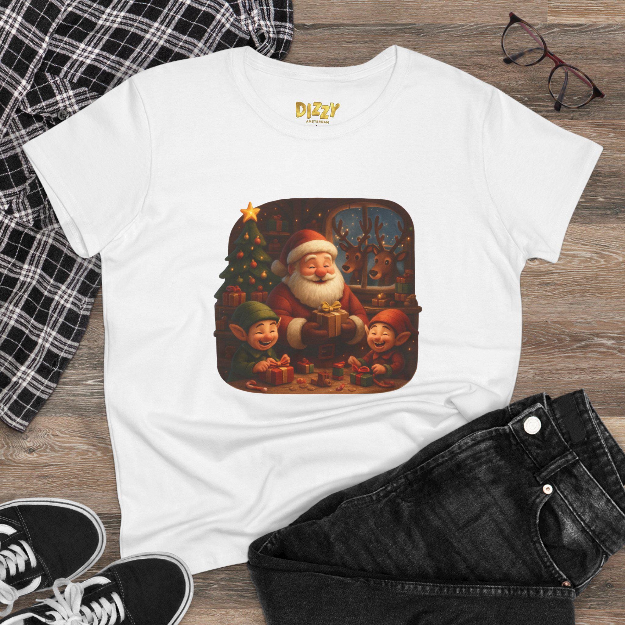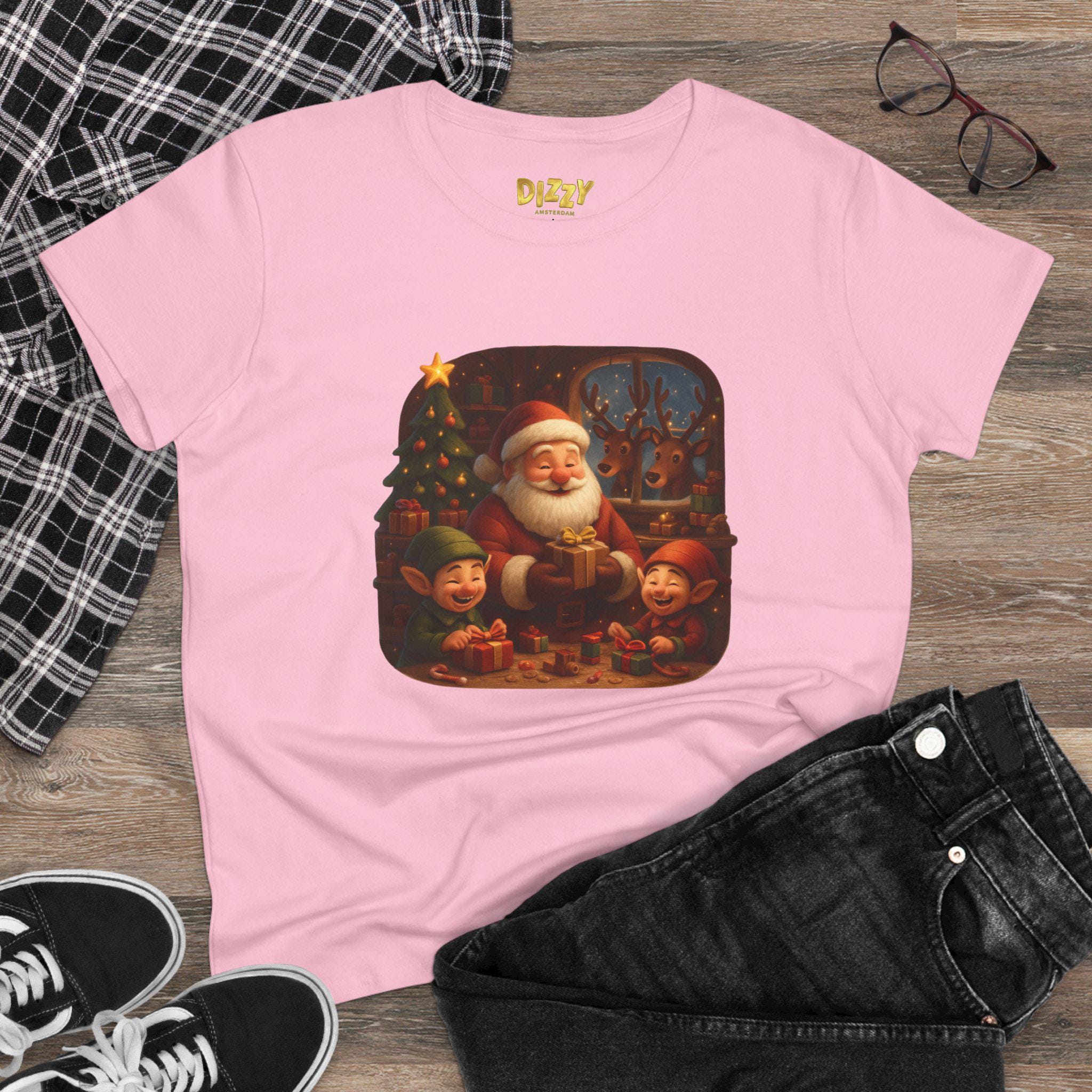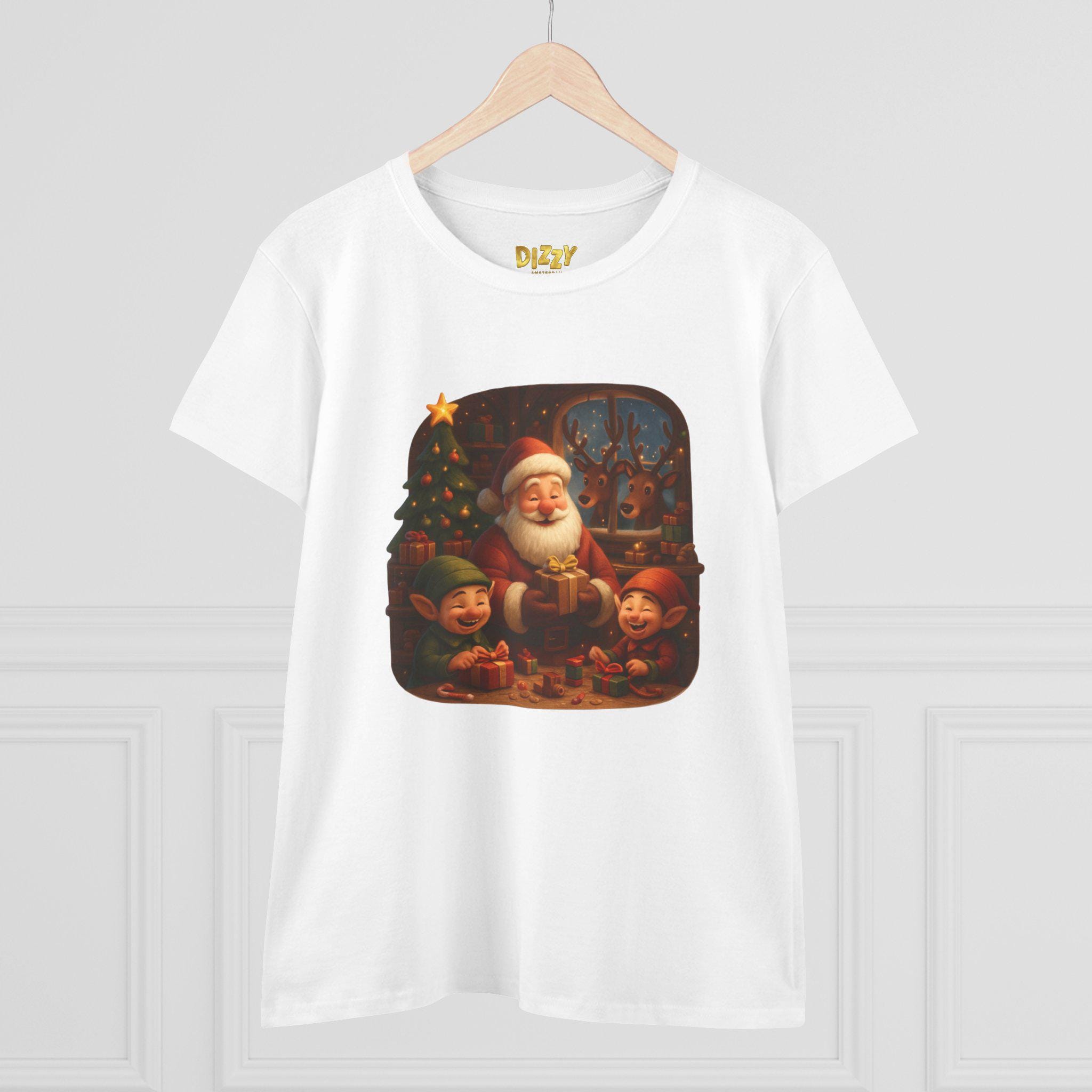 Introducing our charming Women's Midweight Cotton Tee, perfect for spreading cheer during the festive season! This delightful tee features vibrant designs that resonate with holiday spirit, making it an ideal addition to your wardrobe for Christmas celebrations, family gatherings, or cozy nights in. The breathable fabric ensures comfort, allowing you to enjoy all your favorite activities, whether it's wrapping presents or enjoying a warm drink by the fire. Targeted towards women who appreciate style and comfort, this tee makes a great gift for loved ones or a personal treat for yourself. Embrace the joy of the holidays with this versatile piece that is sure to bring smiles!