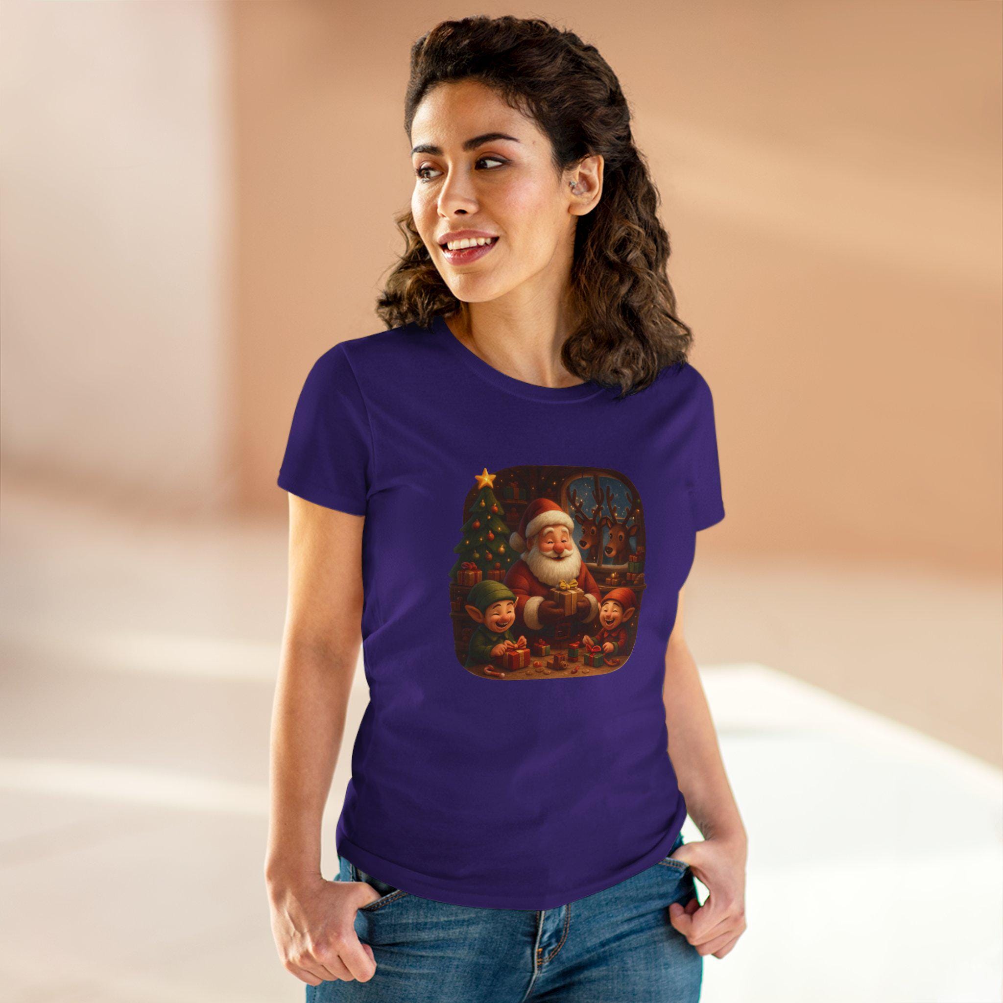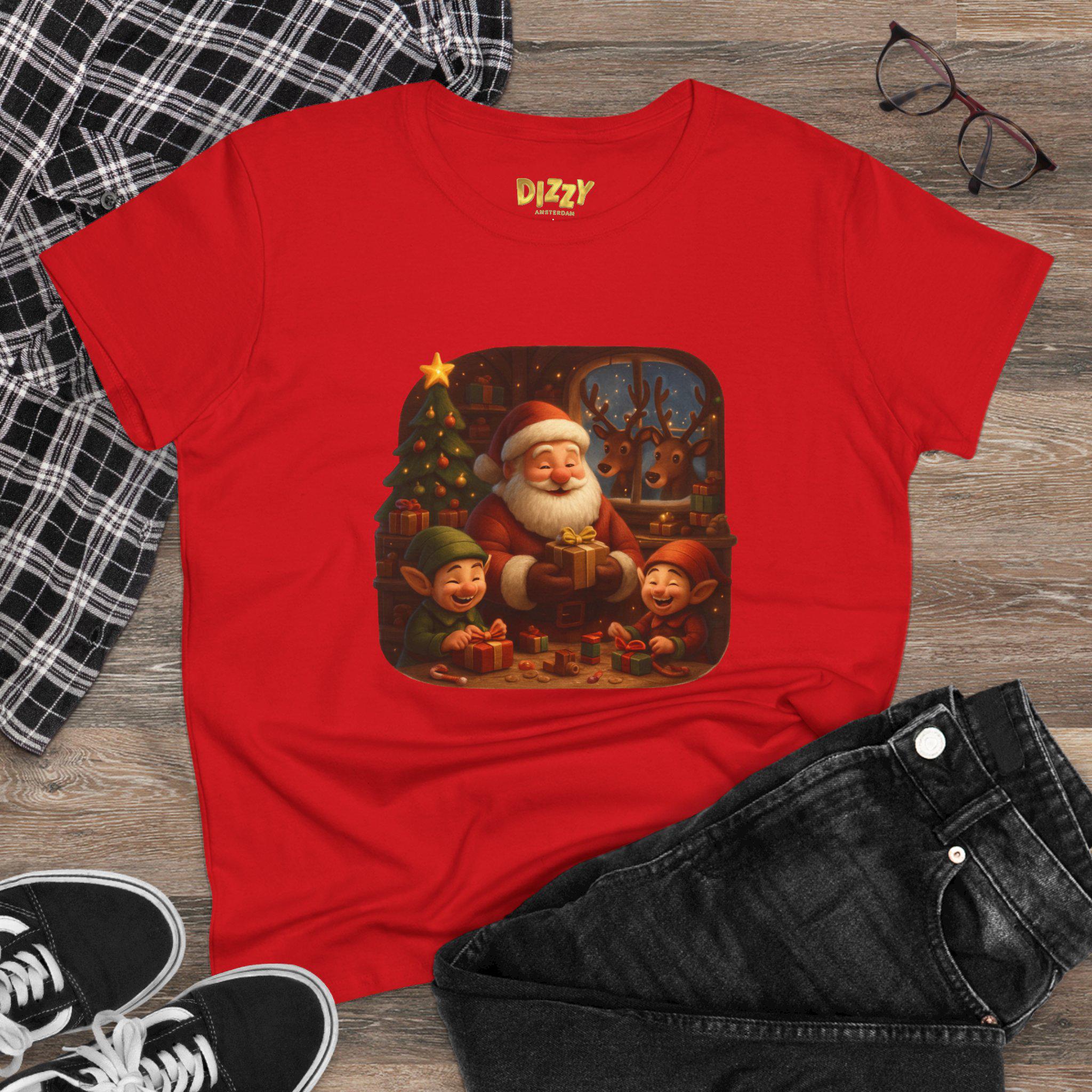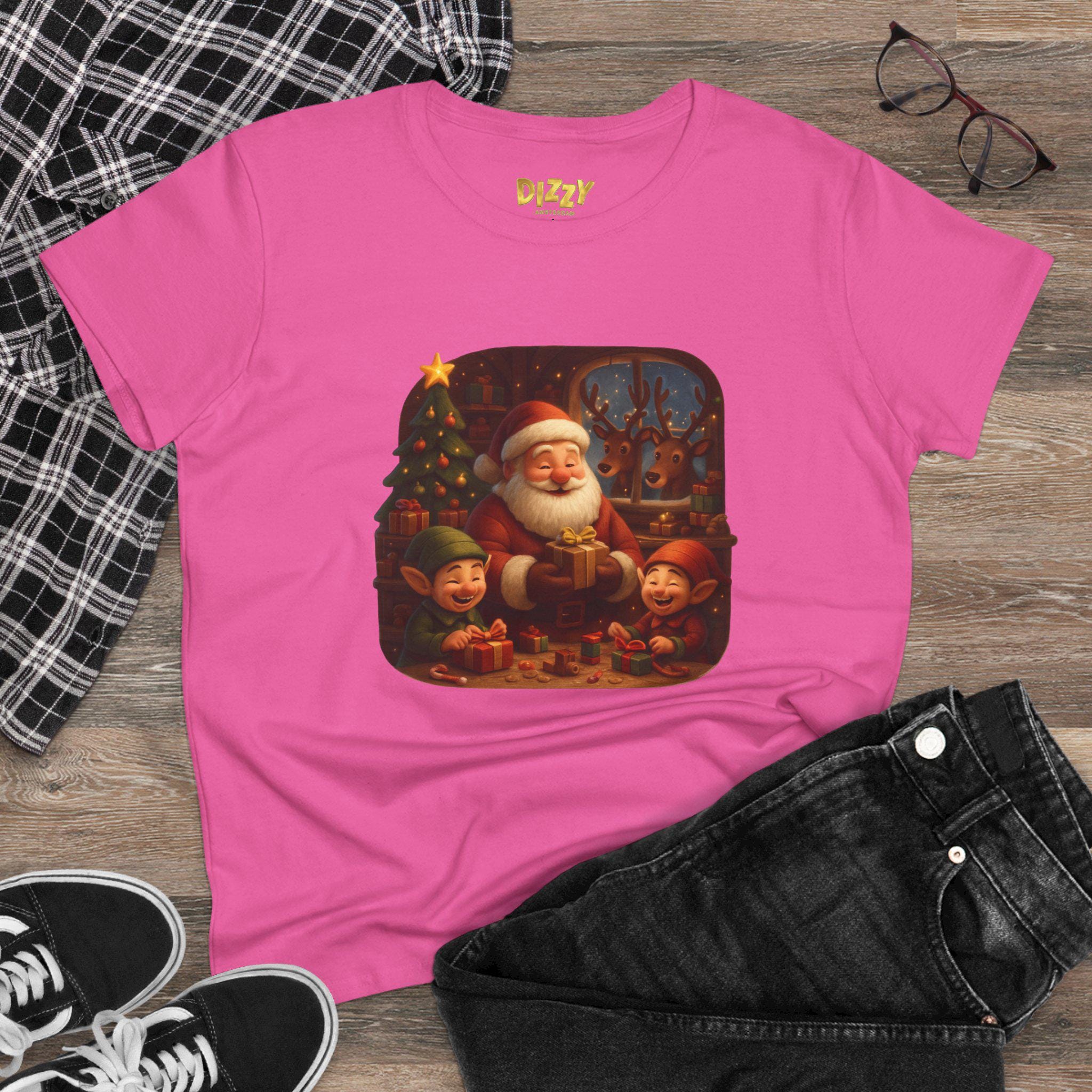 Introducing our charming Women's Midweight Cotton Tee, perfect for spreading cheer during the festive season! This delightful tee features vibrant designs that resonate with holiday spirit, making it an ideal addition to your wardrobe for Christmas celebrations, family gatherings, or cozy nights in. The breathable fabric ensures comfort, allowing you to enjoy all your favorite activities, whether it's wrapping presents or enjoying a warm drink by the fire. Targeted towards women who appreciate style and comfort, this tee makes a great gift for loved ones or a personal treat for yourself. Embrace the joy of the holidays with this versatile piece that is sure to bring smiles!