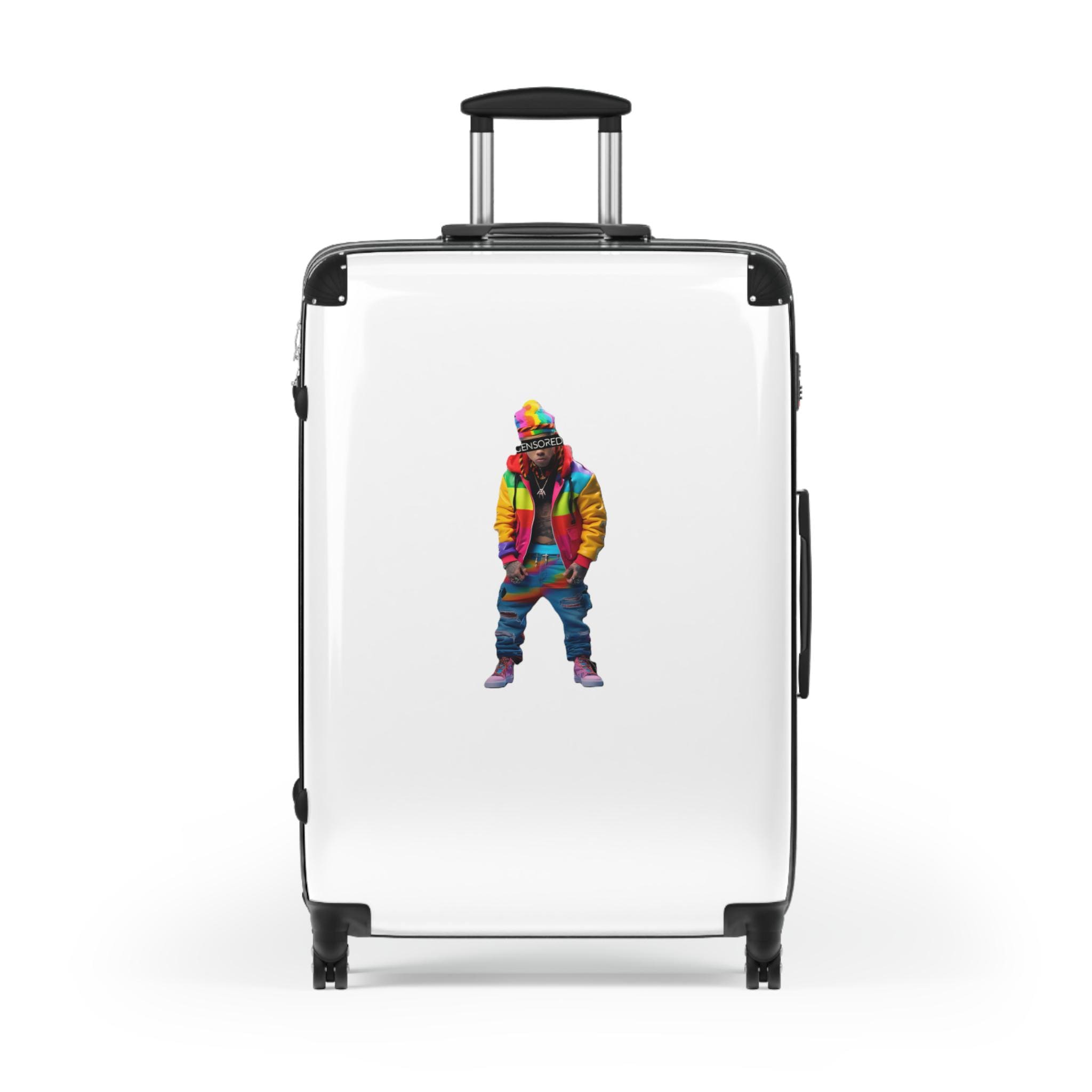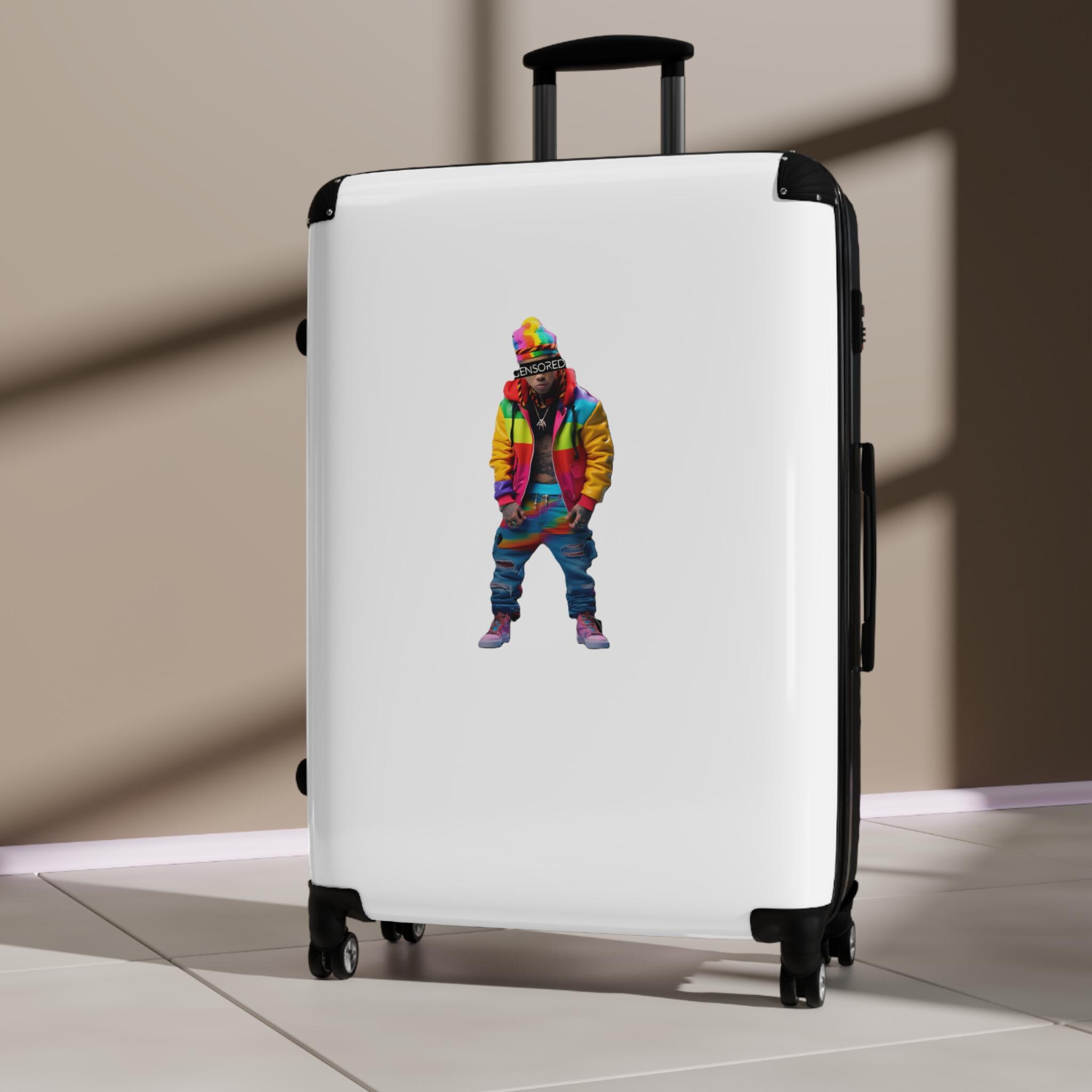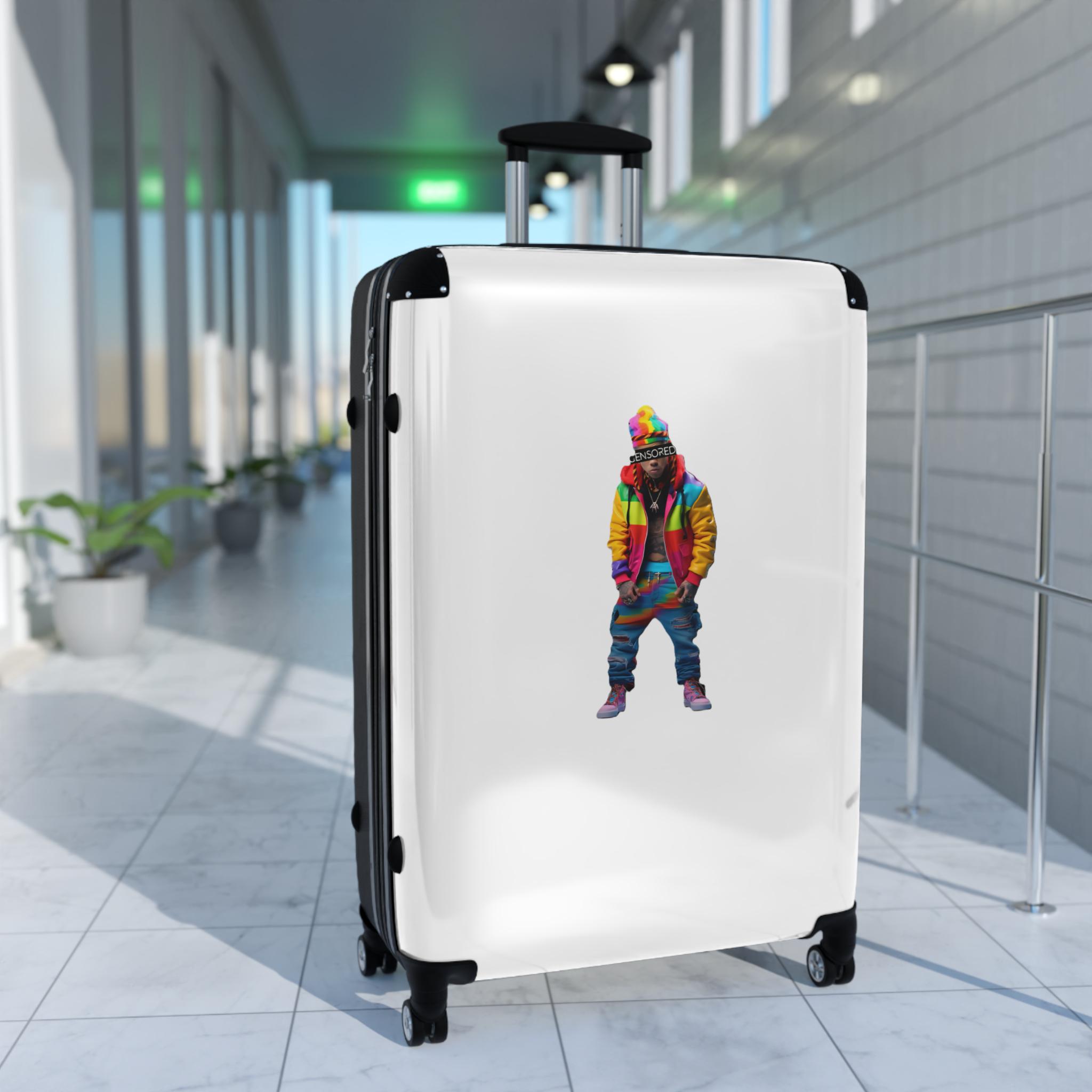 A vibrant and durable suitcase featuring a Zkittlez Icon design, perfect for travel kids families. With inner pockets, customizable materials, extended storage, a built-in lock, and 360 degree swivel wheels, this suitcase offers both style and functionality. Ideal for families going on vacations or travelers looking to make a statement.