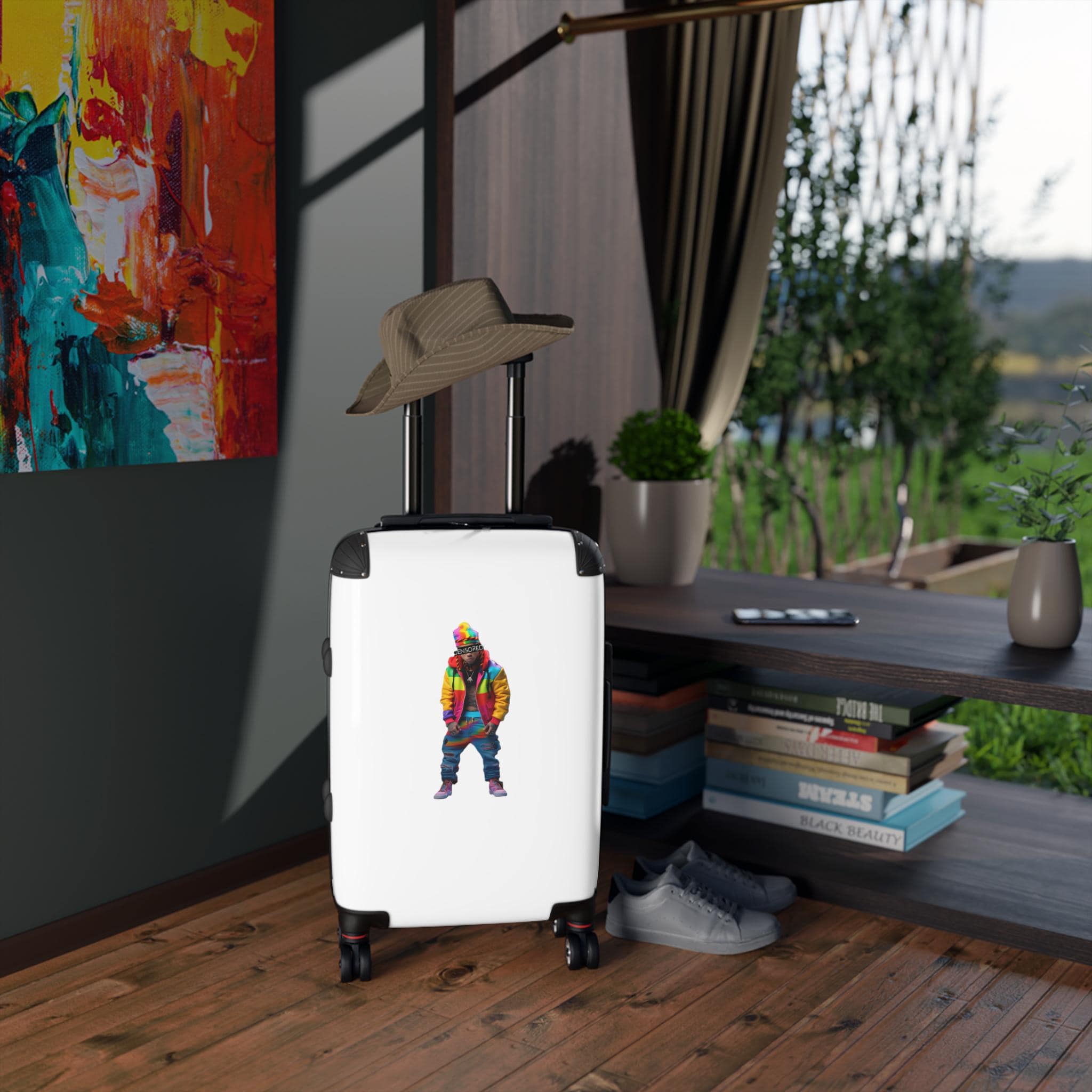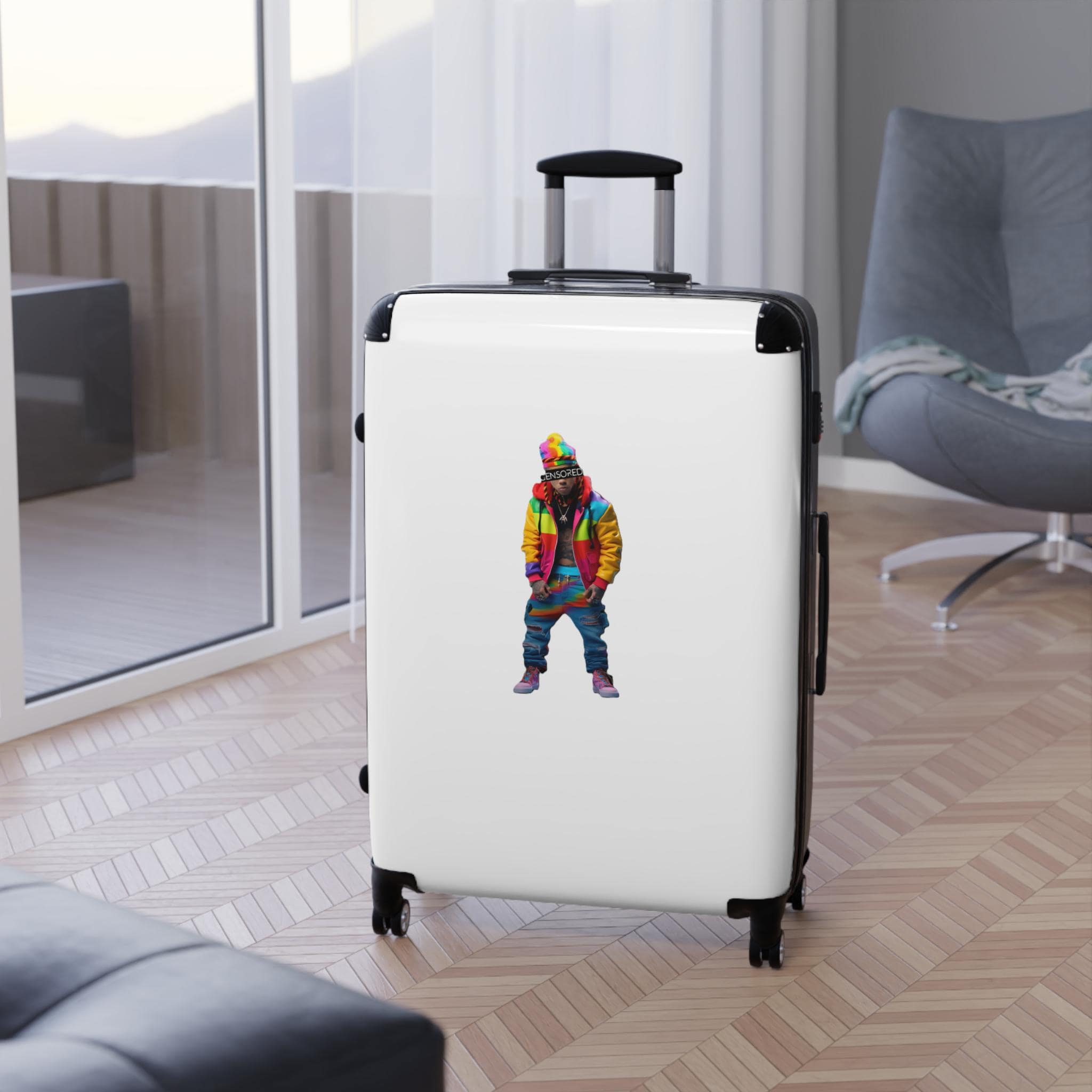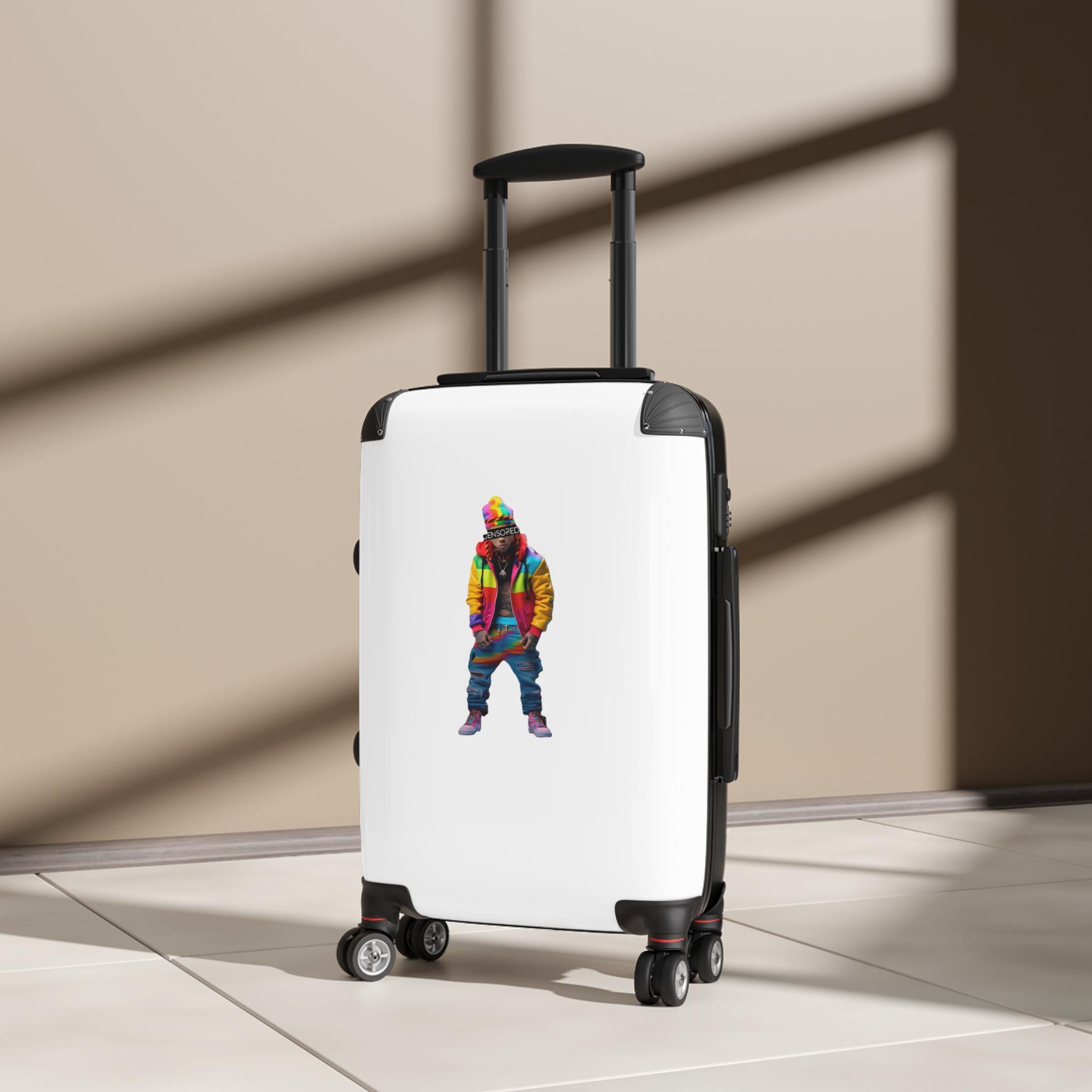 A vibrant and durable suitcase featuring a Zkittlez Icon design, perfect for travel kids families. With inner pockets, customizable materials, extended storage, a built-in lock, and 360 degree swivel wheels, this suitcase offers both style and functionality. Ideal for families going on vacations or travelers looking to make a statement.