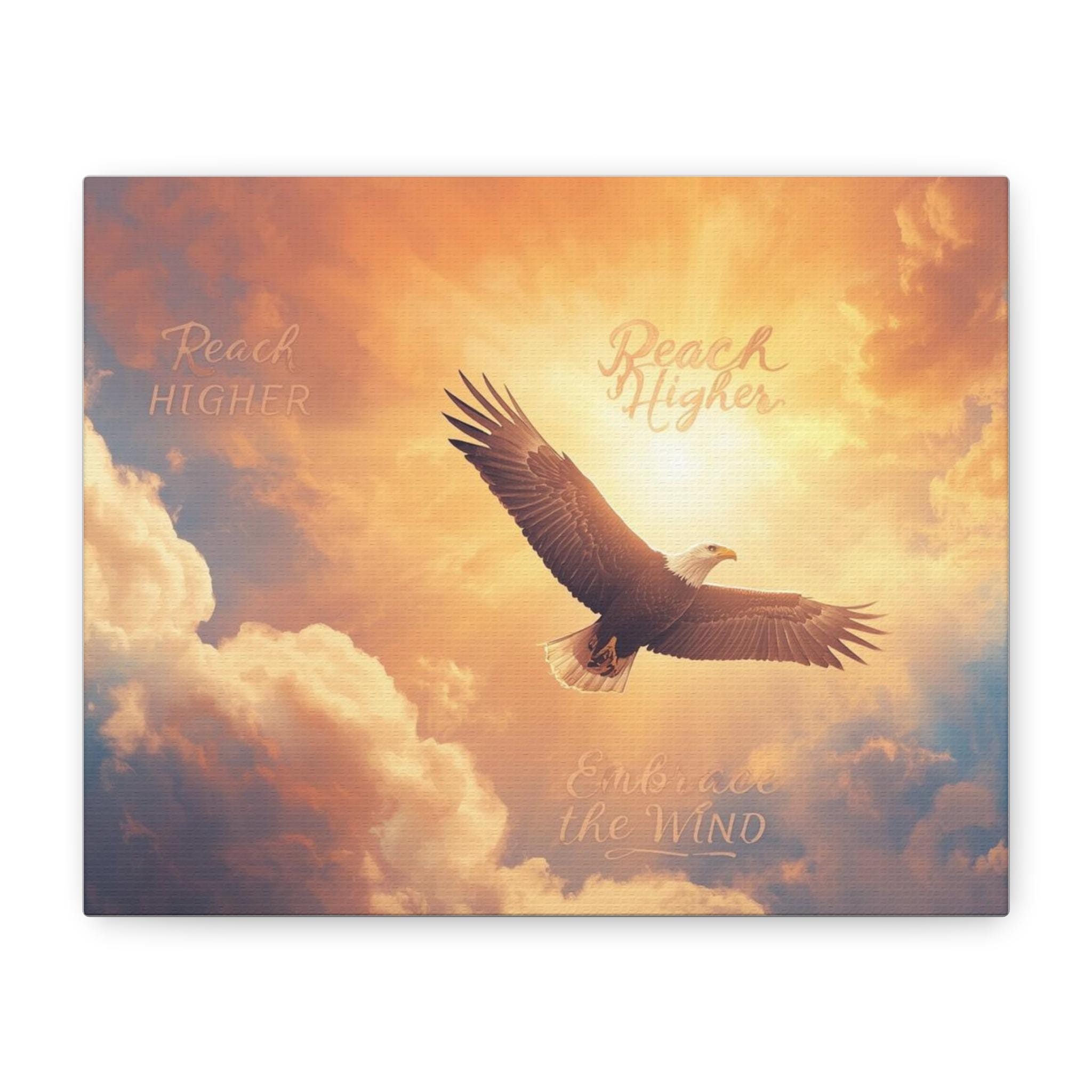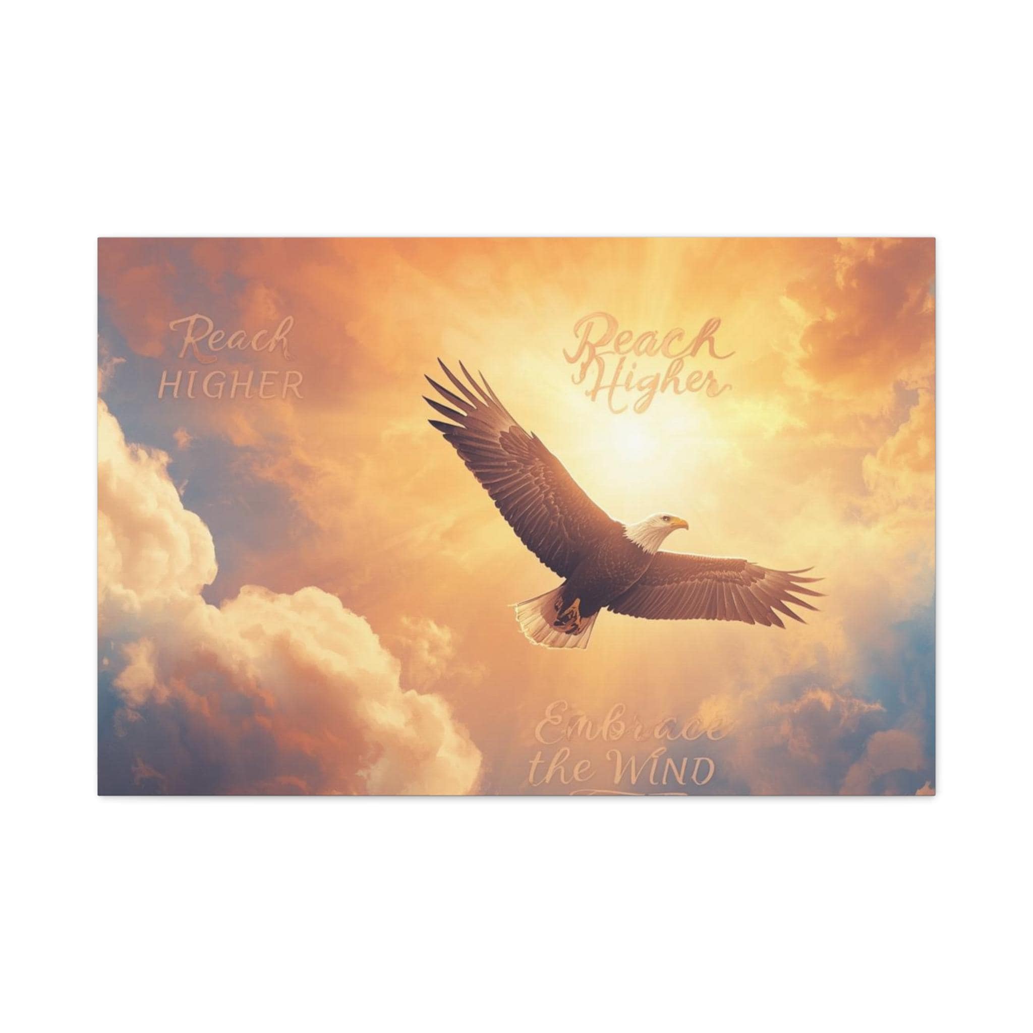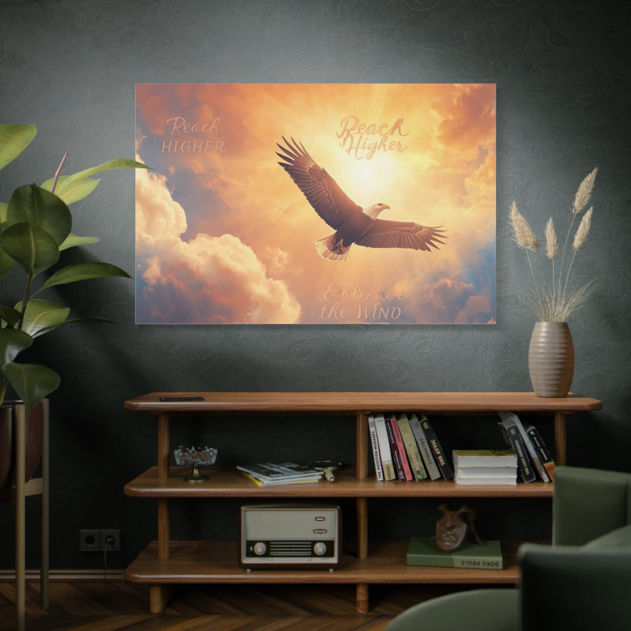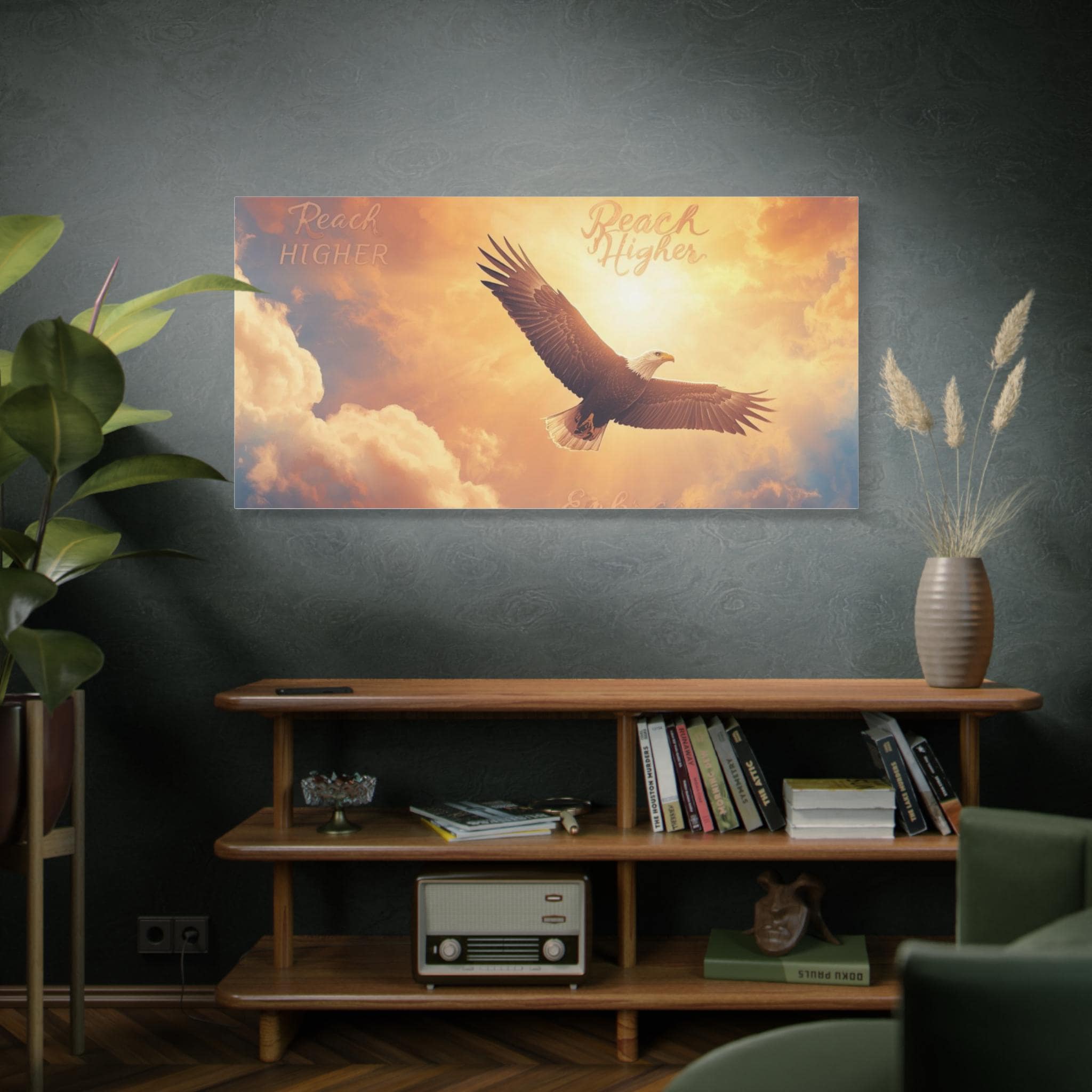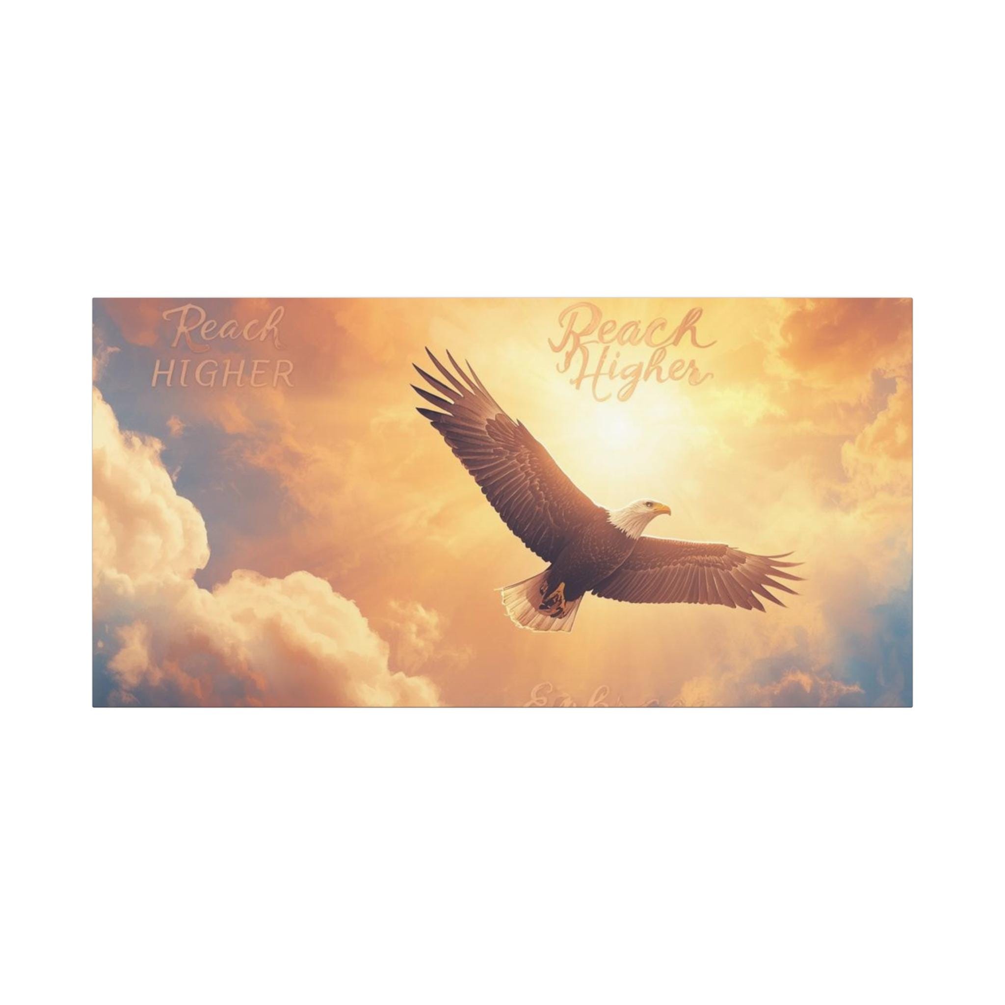 Transform your space with this stunning Matte Canvas, Stretched, 1.25" print featuring a majestic eagle soaring through a vibrant sky. This artwork evokes a sense of freedom and inspiration, making it a perfect addition to any room. Its warm colors and uplifting message, 'Reach Higher', create an uplifting atmosphere that encourages positivity. Ideal for nature lovers and those seeking motivation, this canvas print is a thoughtful gift for holidays such as Christmas, birthdays, or as a housewarming present to bring new energy to a home. Perfect for offices, living rooms, or bedrooms, it will inspire anyone who sees it to embrace their dreams and soar to new heights.