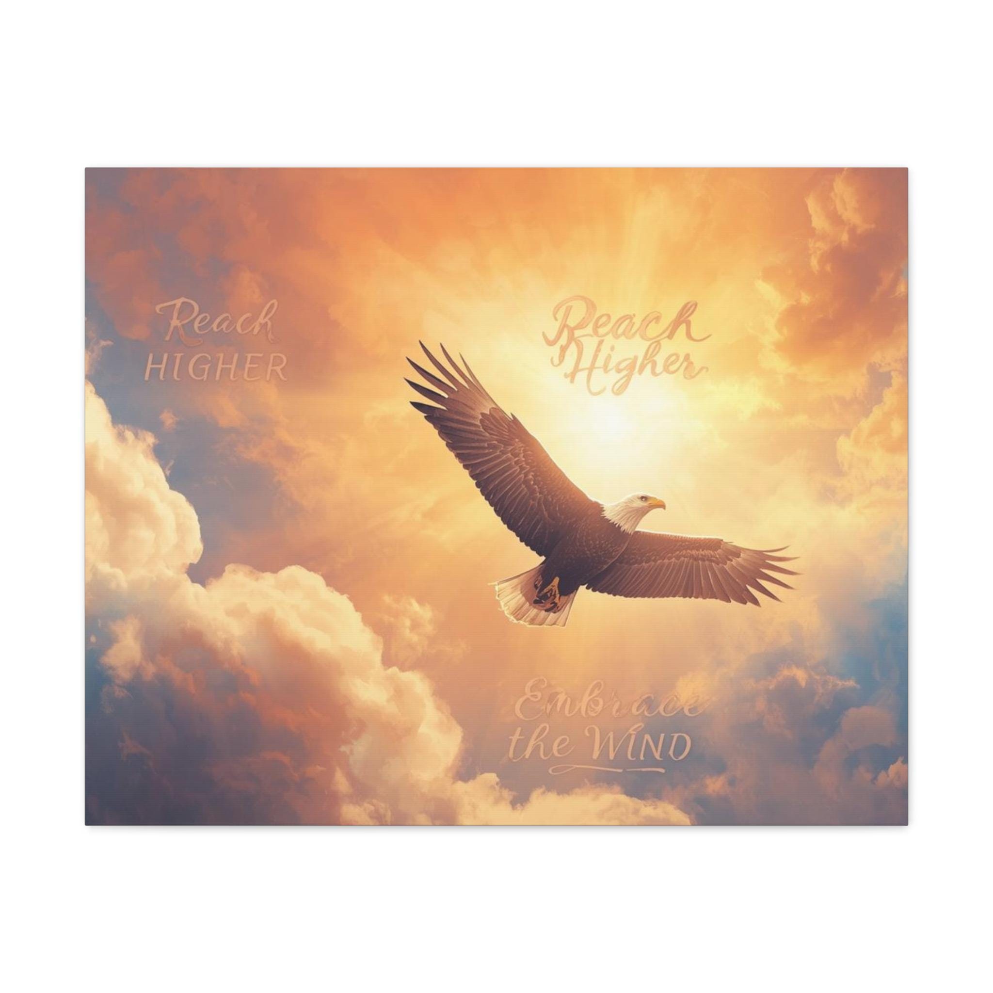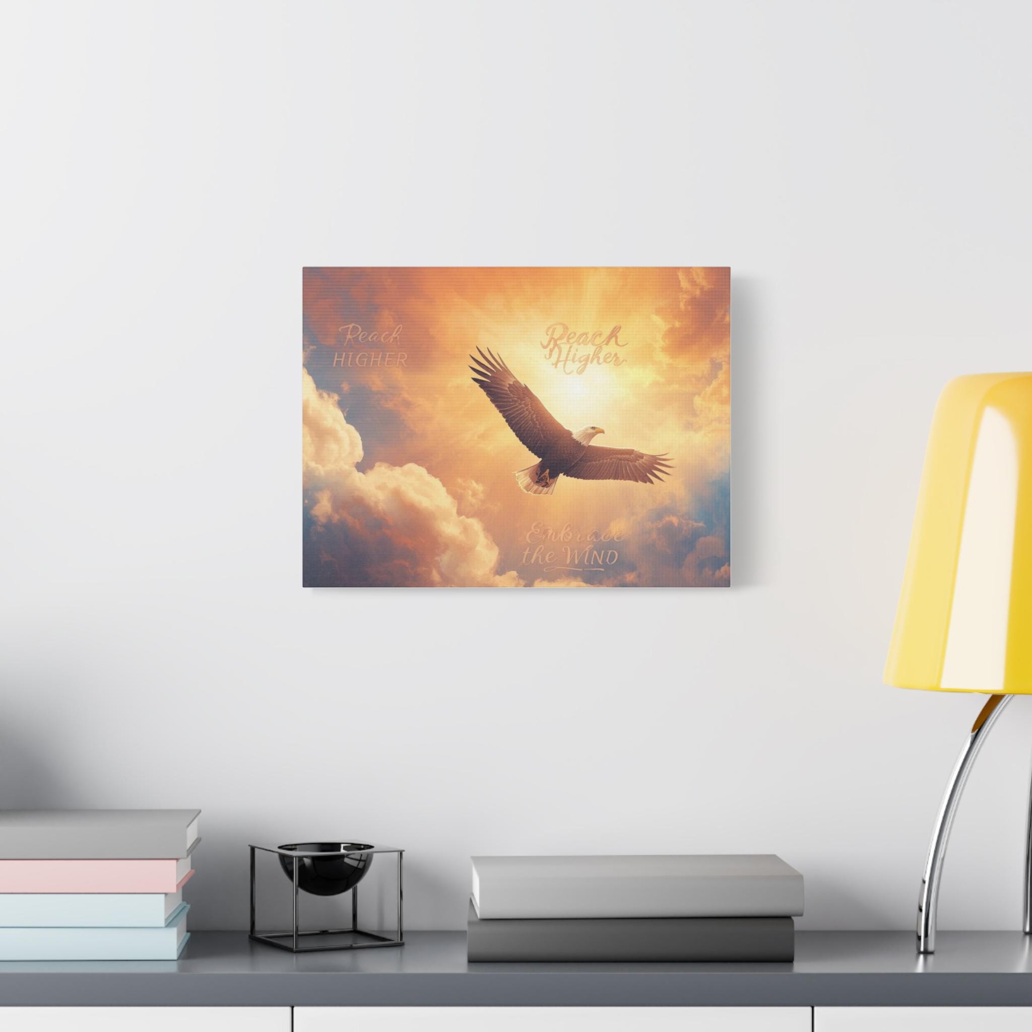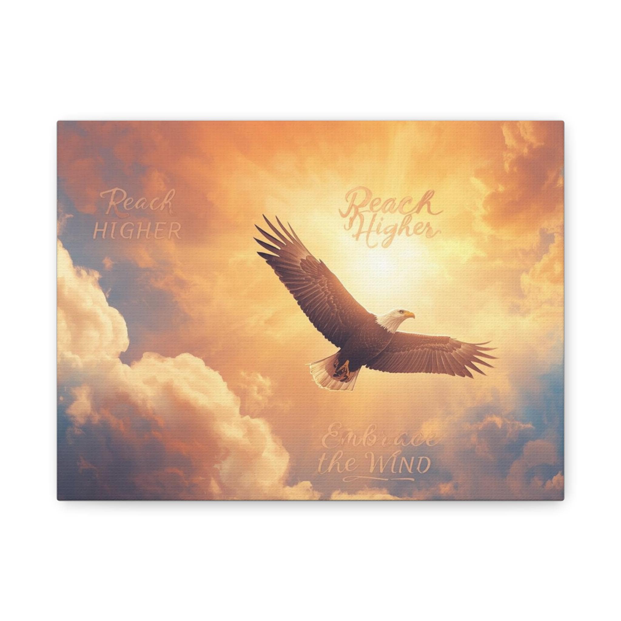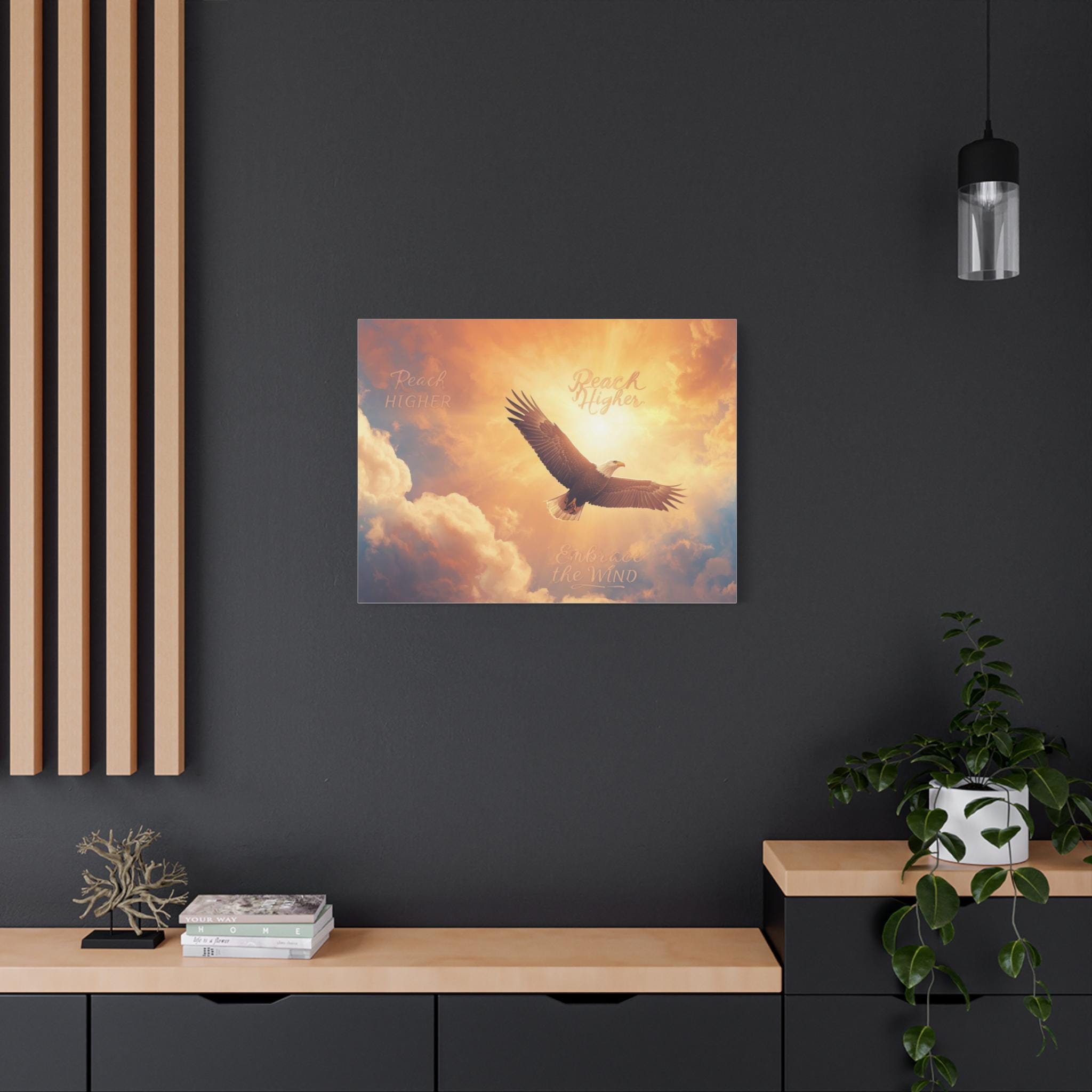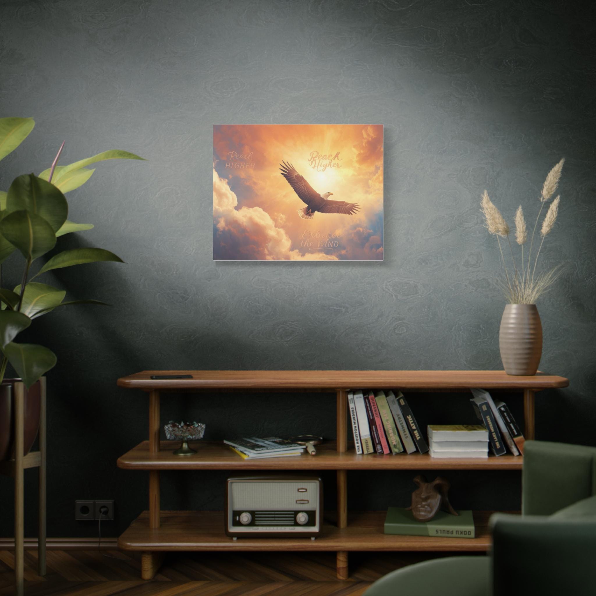 Transform your space with this stunning Matte Canvas, Stretched, 1.25" print featuring a majestic eagle soaring through a vibrant sky. This artwork evokes a sense of freedom and inspiration, making it a perfect addition to any room. Its warm colors and uplifting message, 'Reach Higher', create an uplifting atmosphere that encourages positivity. Ideal for nature lovers and those seeking motivation, this canvas print is a thoughtful gift for holidays such as Christmas, birthdays, or as a housewarming present to bring new energy to a home. Perfect for offices, living rooms, or bedrooms, it will inspire anyone who sees it to embrace their dreams and soar to new heights.