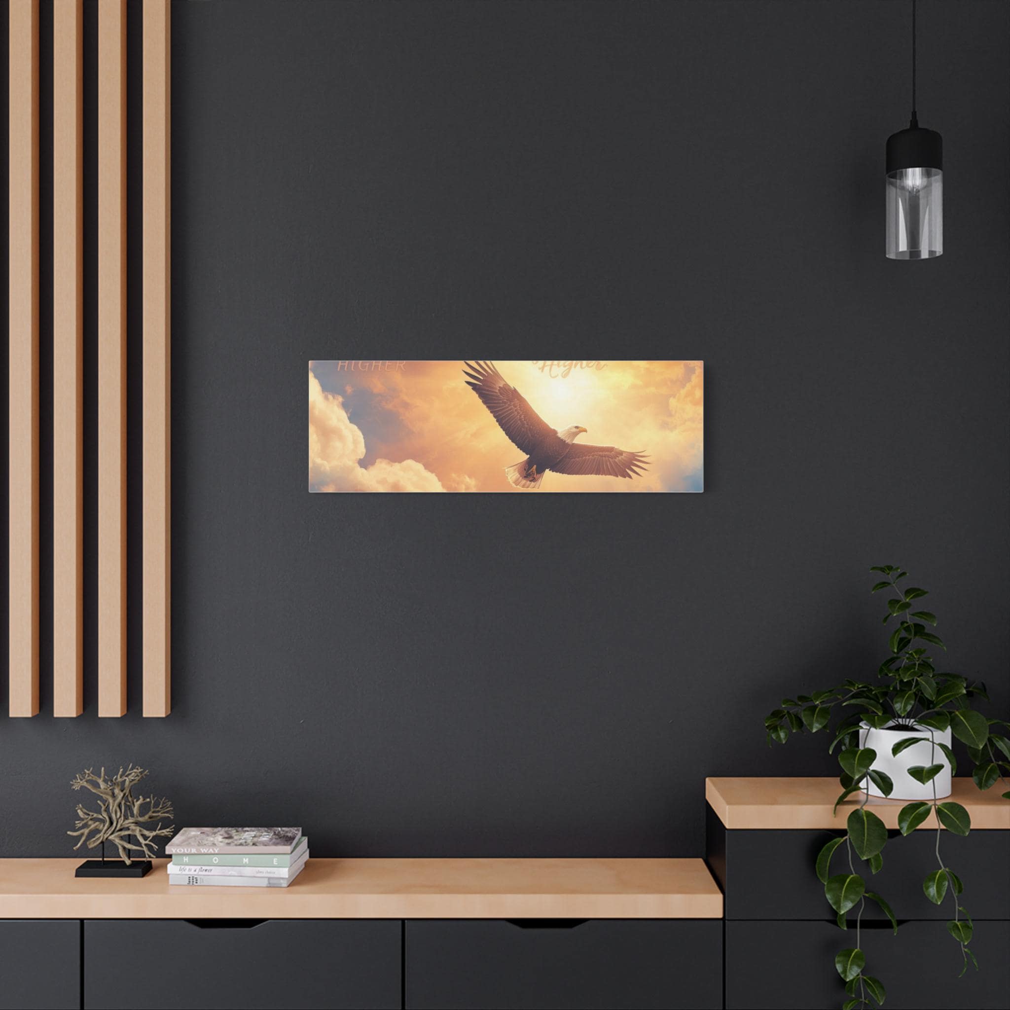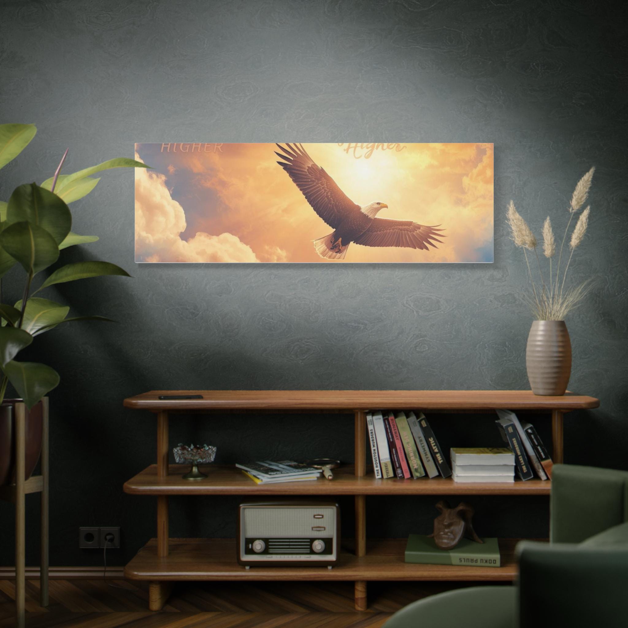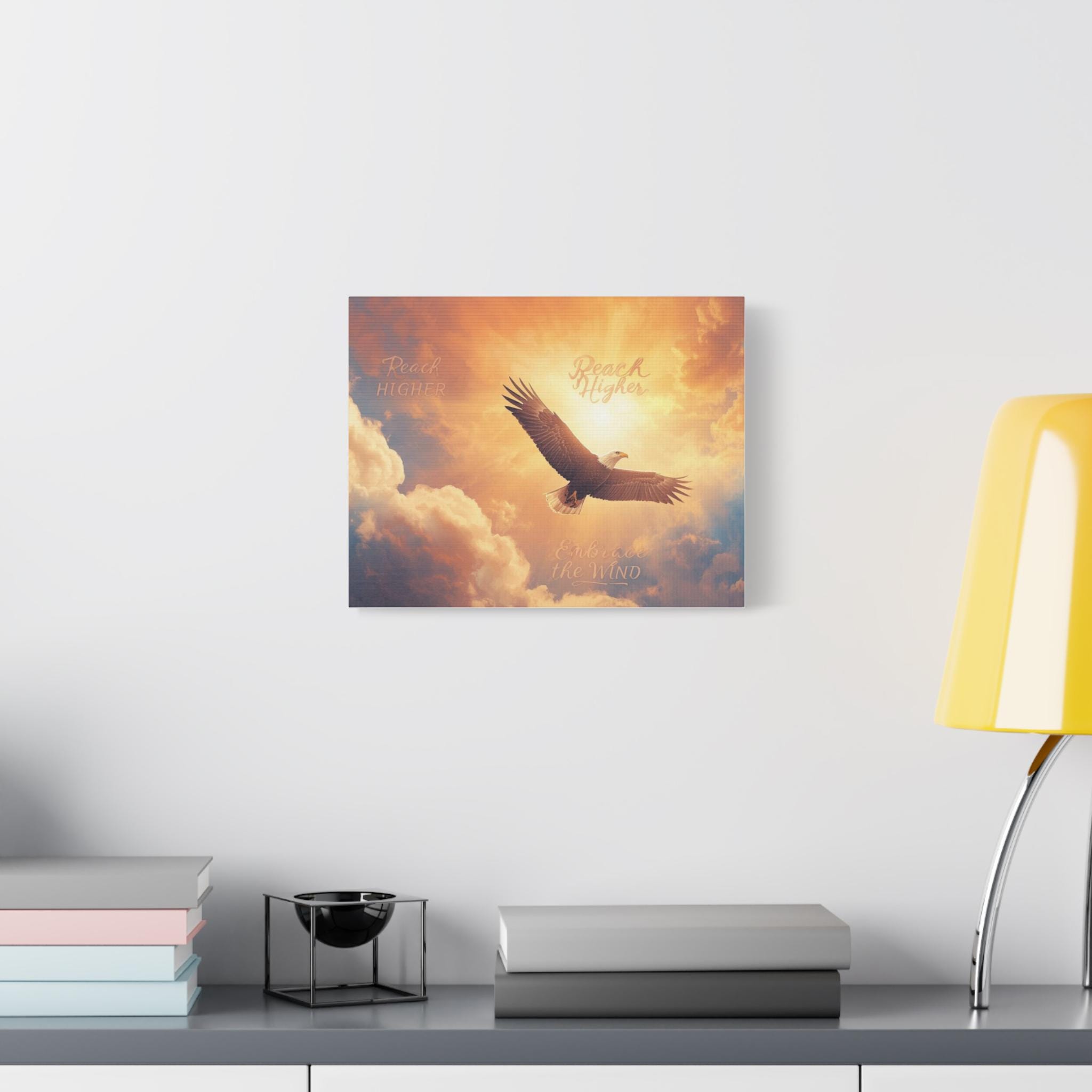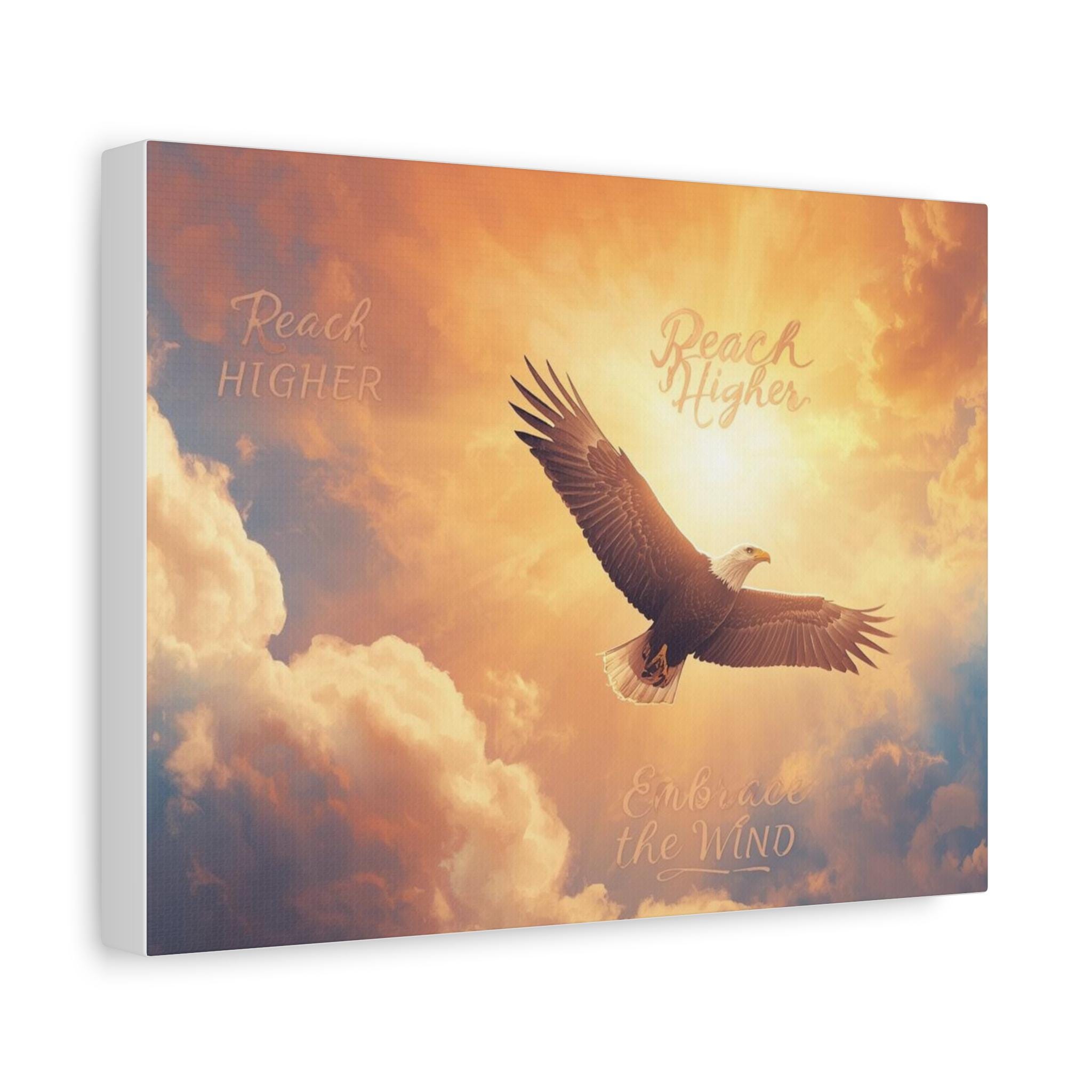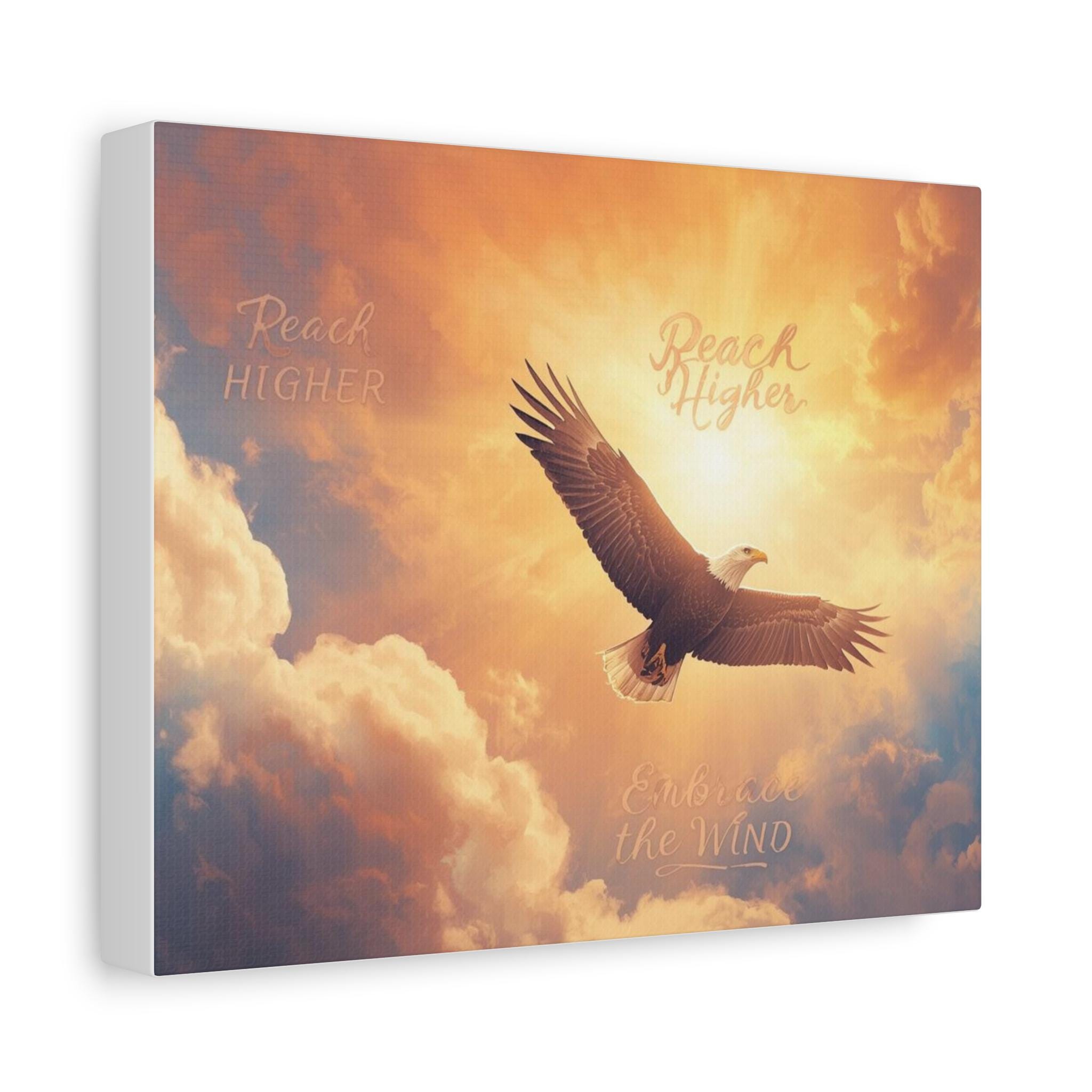 Transform your space with this stunning Matte Canvas, Stretched, 1.25" print featuring a majestic eagle soaring through a vibrant sky. This artwork evokes a sense of freedom and inspiration, making it a perfect addition to any room. Its warm colors and uplifting message, 'Reach Higher', create an uplifting atmosphere that encourages positivity. Ideal for nature lovers and those seeking motivation, this canvas print is a thoughtful gift for holidays such as Christmas, birthdays, or as a housewarming present to bring new energy to a home. Perfect for offices, living rooms, or bedrooms, it will inspire anyone who sees it to embrace their dreams and soar to new heights.