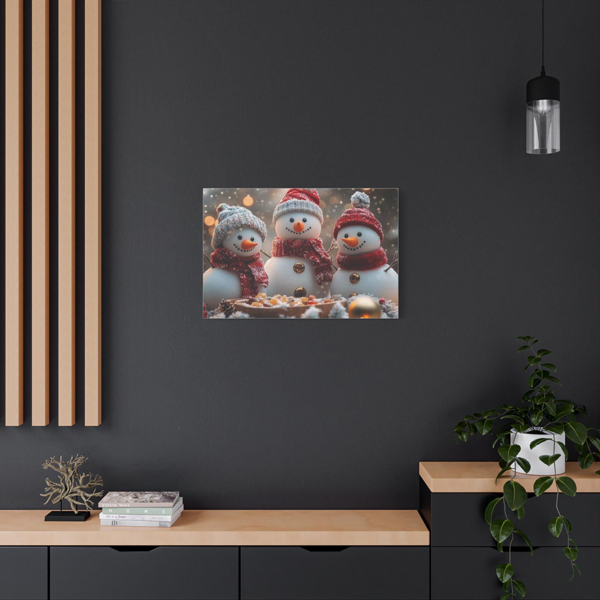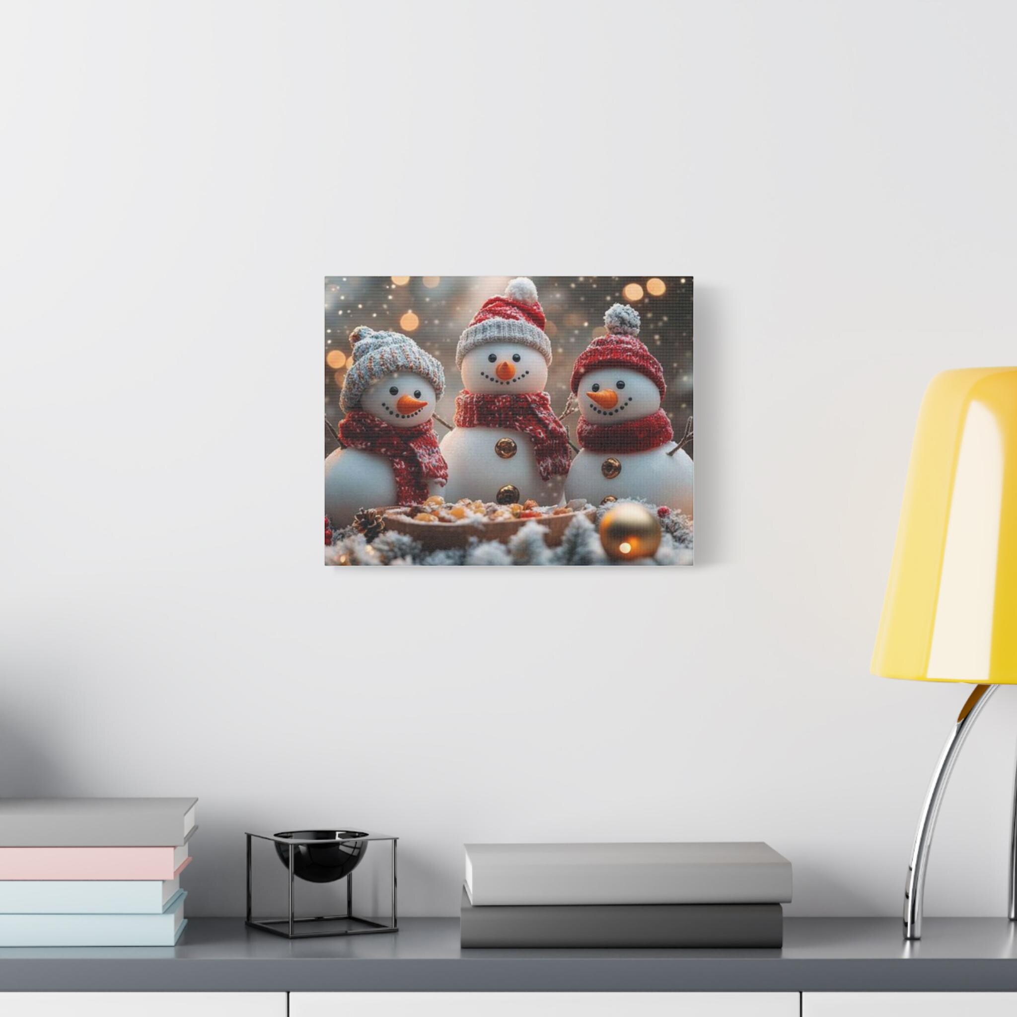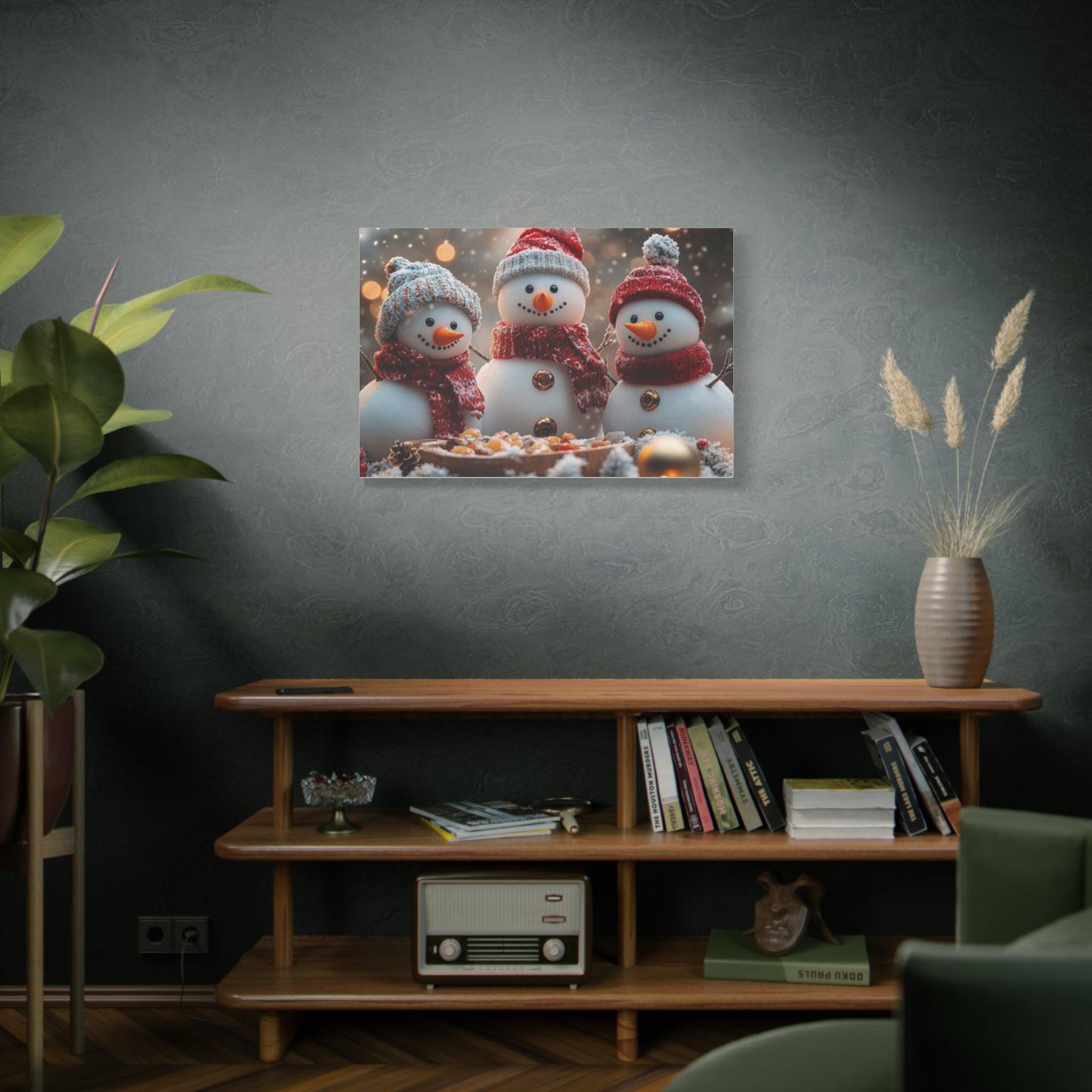 Introducing our stunning Stretched Canvas, perfect for infusing your space with joy and a touch of whimsy. This artwork features delightful snowmen, radiating warmth and holiday cheer, ideal for creating a cozy atmosphere during winter celebrations. Imagine it adorning your living room or entryway, capturing the essence of the festive season.