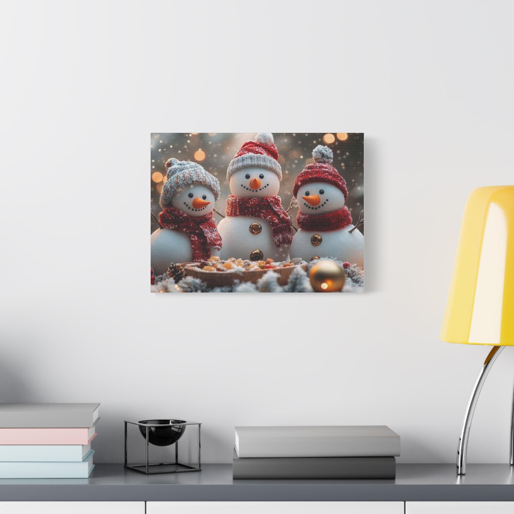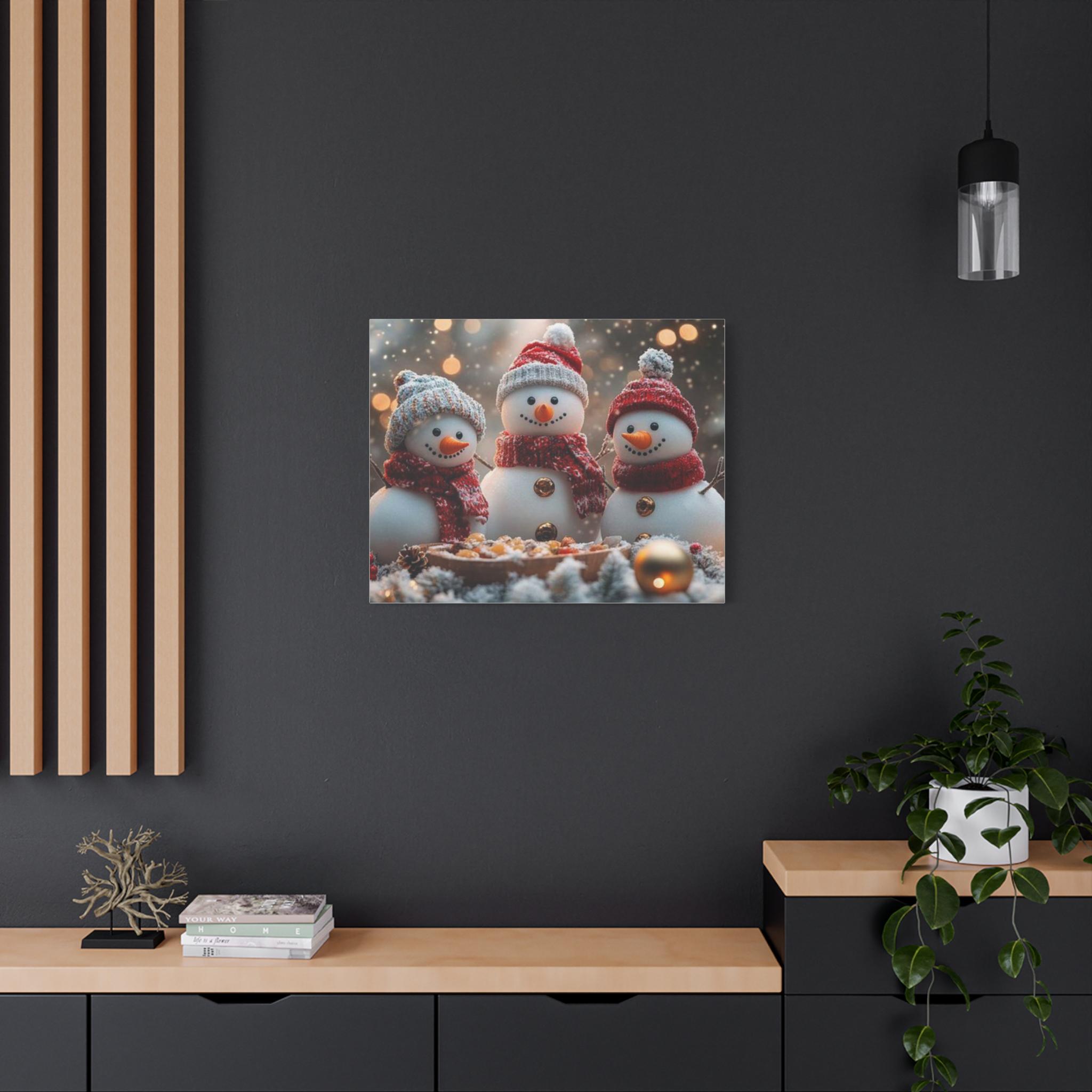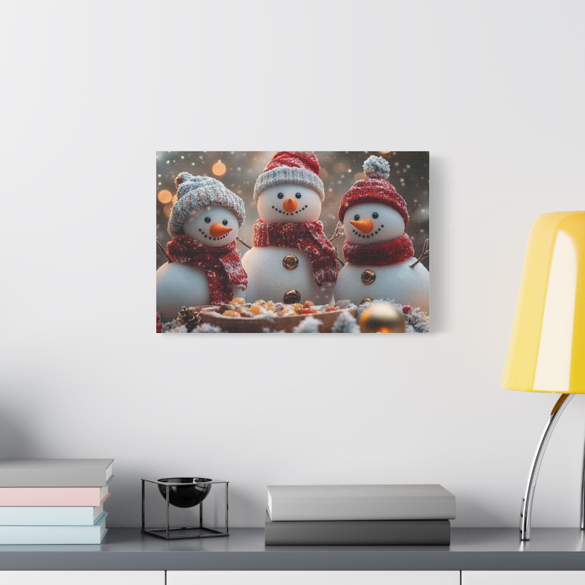 Introducing our stunning Stretched Canvas, perfect for infusing your space with joy and a touch of whimsy. This artwork features delightful snowmen, radiating warmth and holiday cheer, ideal for creating a cozy atmosphere during winter celebrations. Imagine it adorning your living room or entryway, capturing the essence of the festive season.