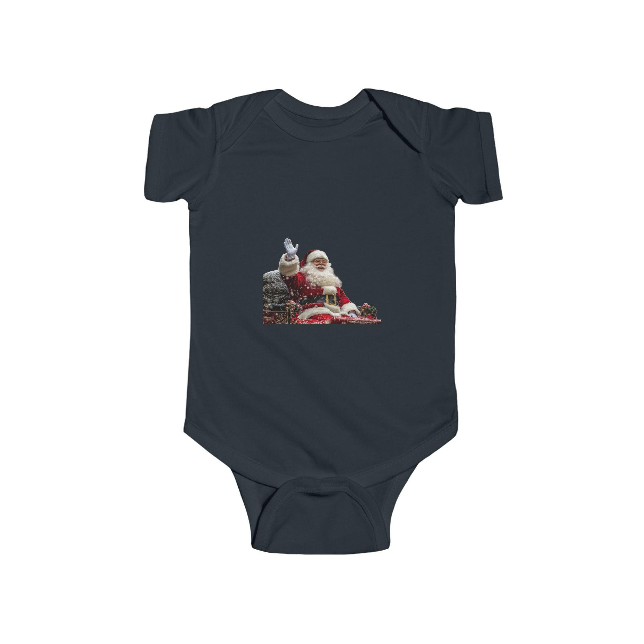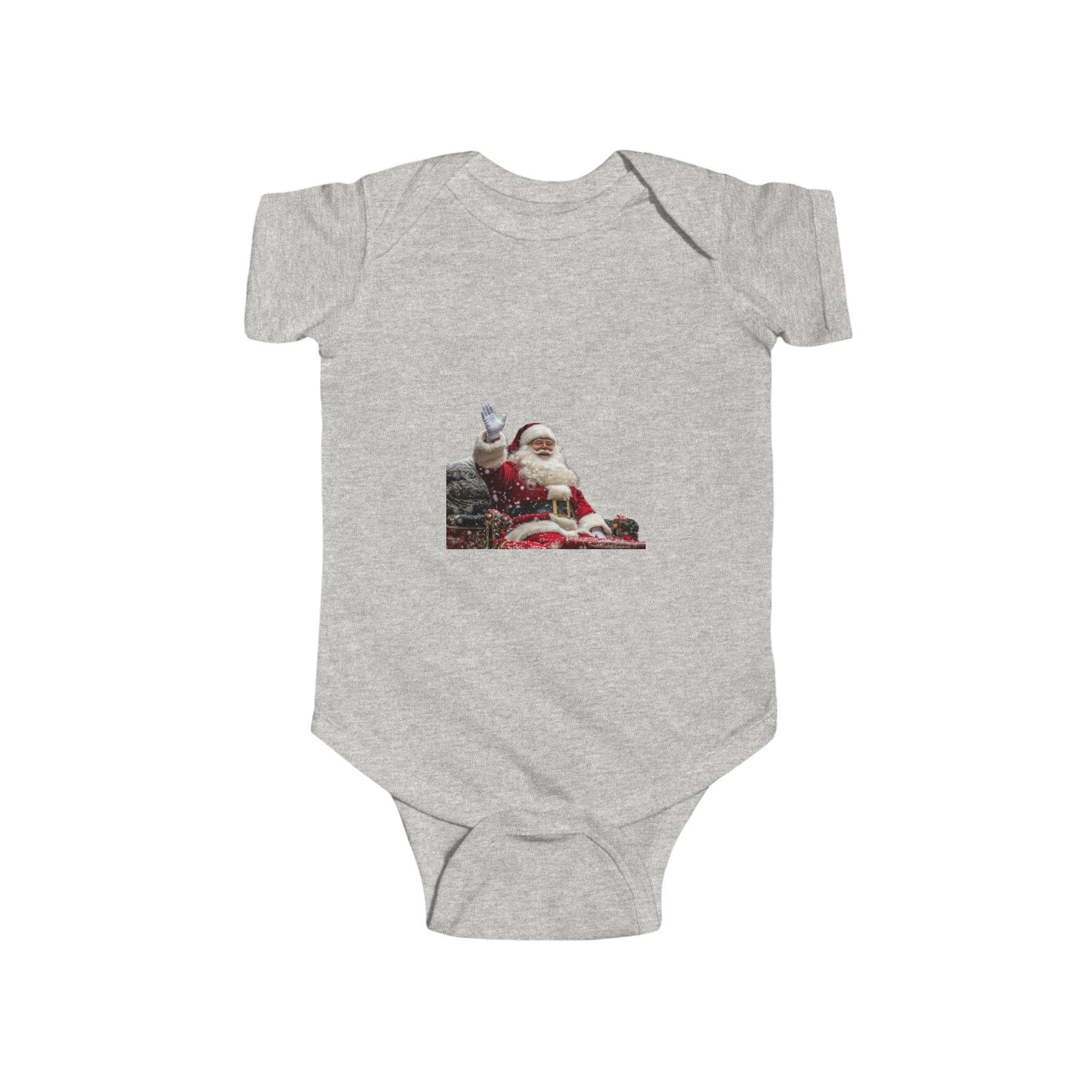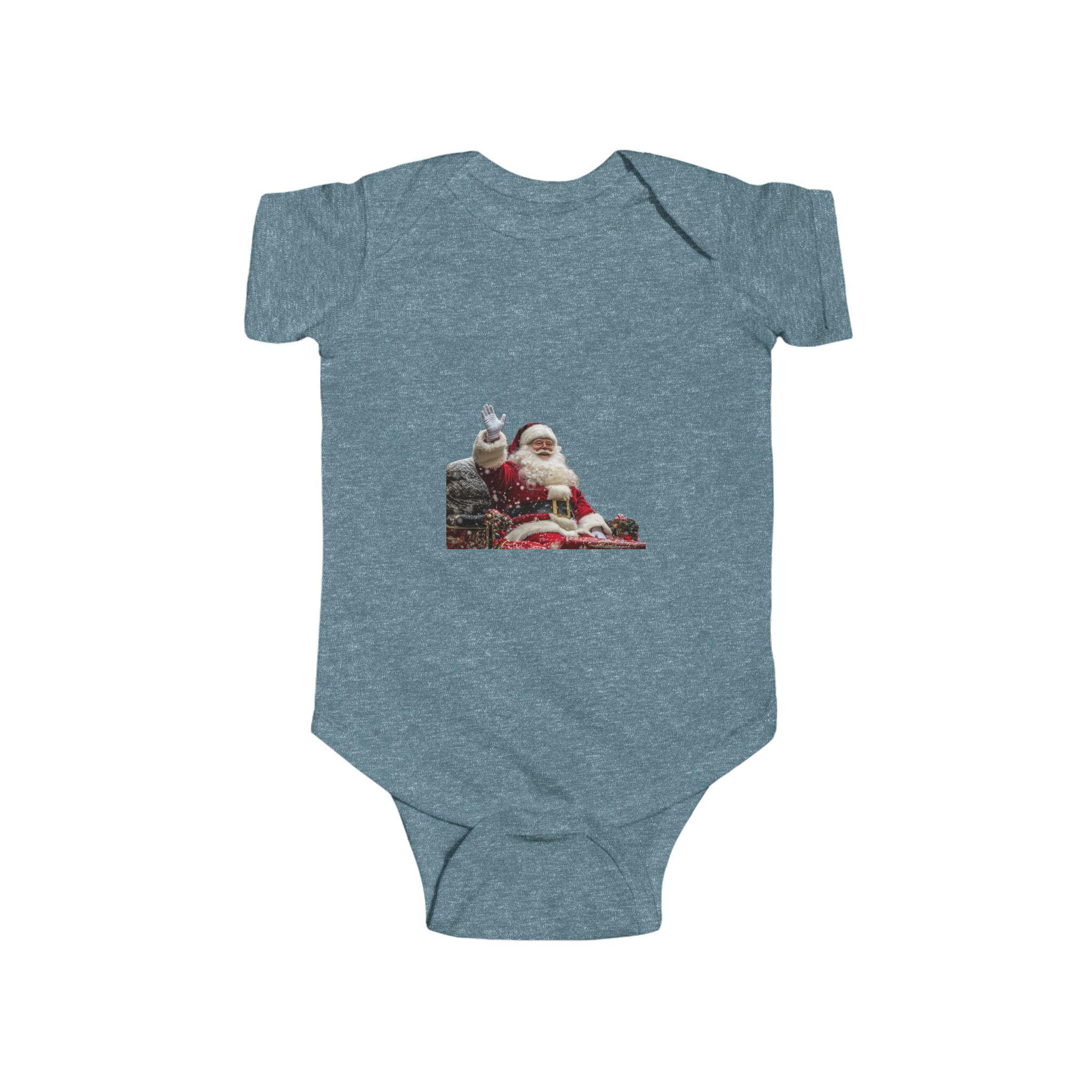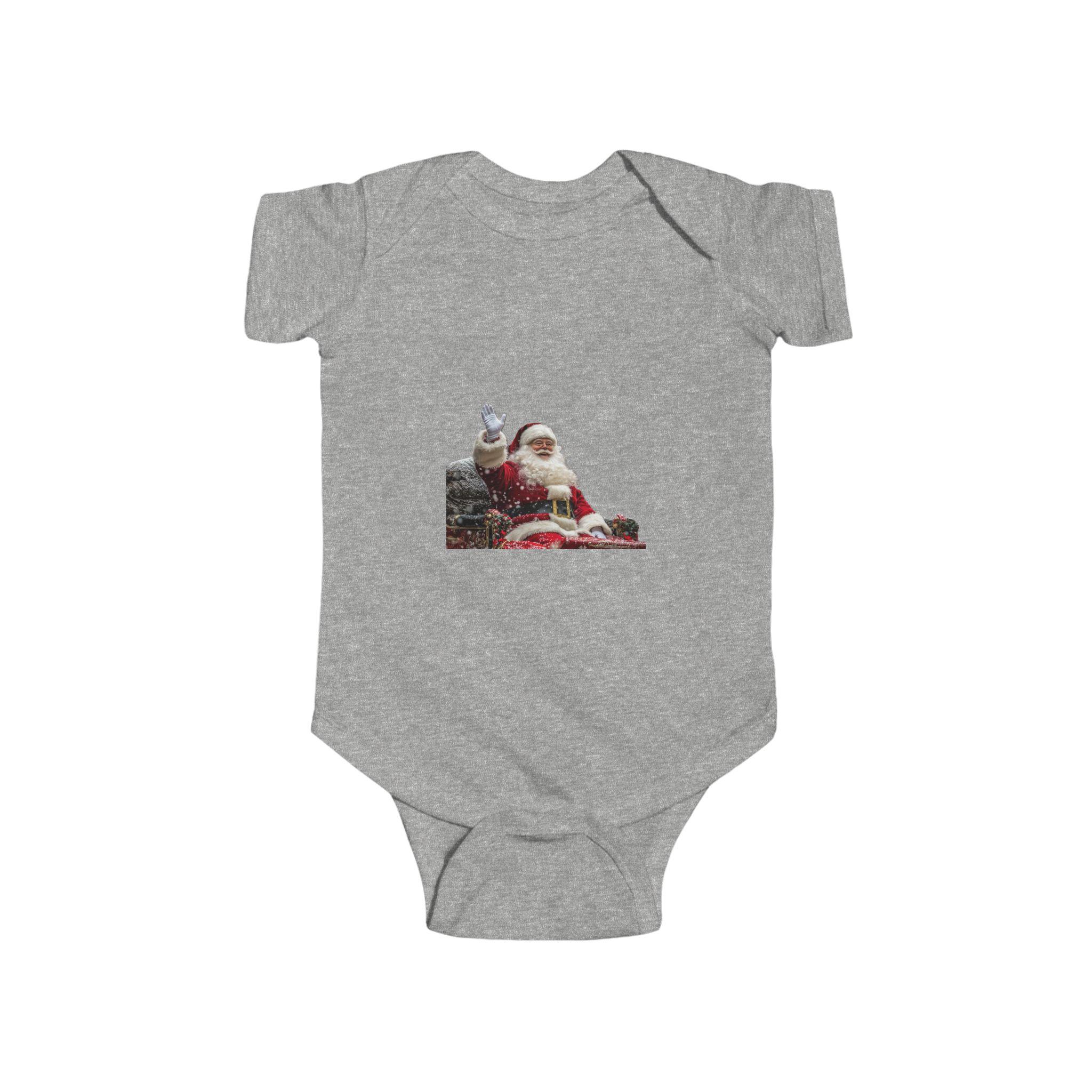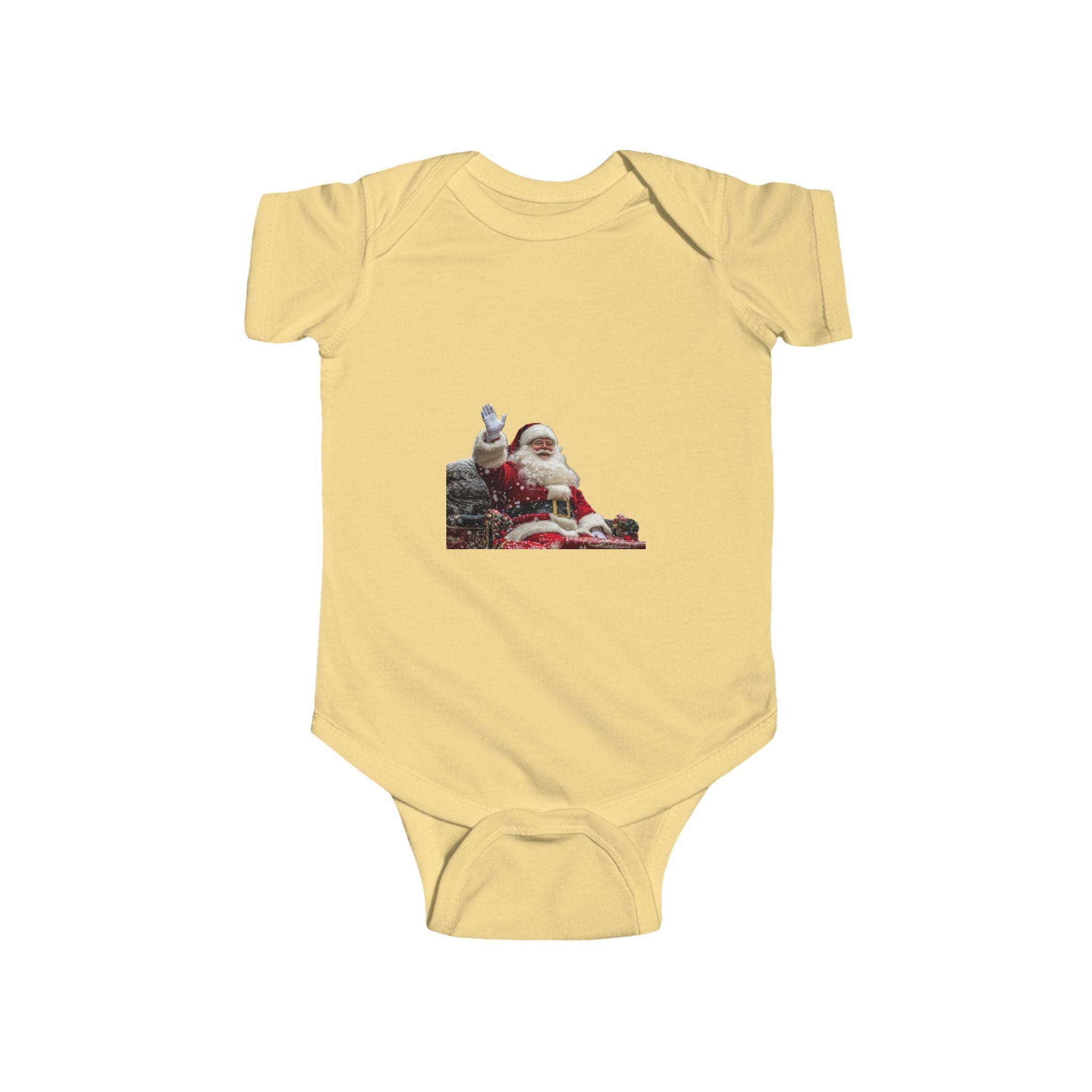 Get your little one ready for the holiday season with this adorable Santa Claus Sitting with Presents Bodysuit. Perfect for Christmas celebrations, this onesie is made from soft and smooth fabric, ensuring comfort for your infant. The ribbed knit binding adds an extra level of softness and flexibility, while the plastic snaps at the cross closure make dressing and changing easy. This bodysuit is ideal for babies and toddlers, making it a great gift for new parents during the festive season.