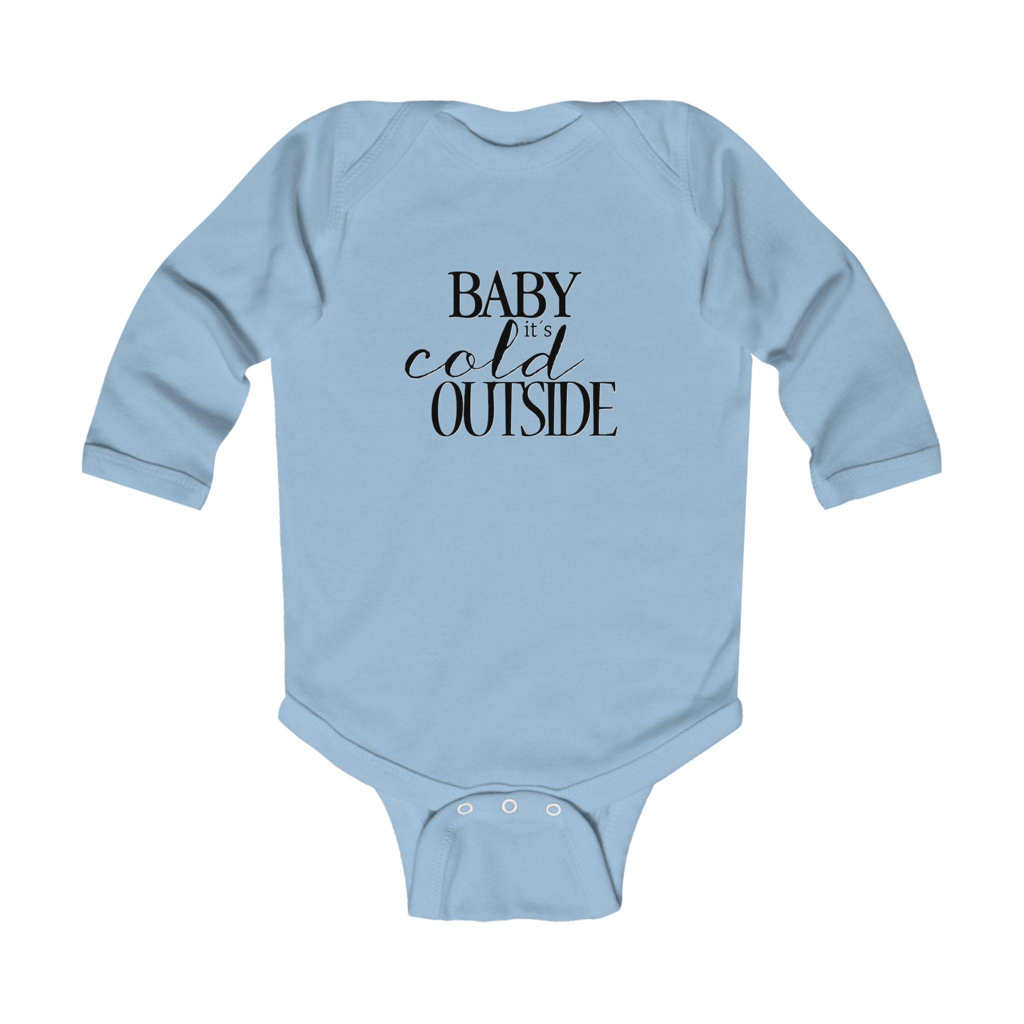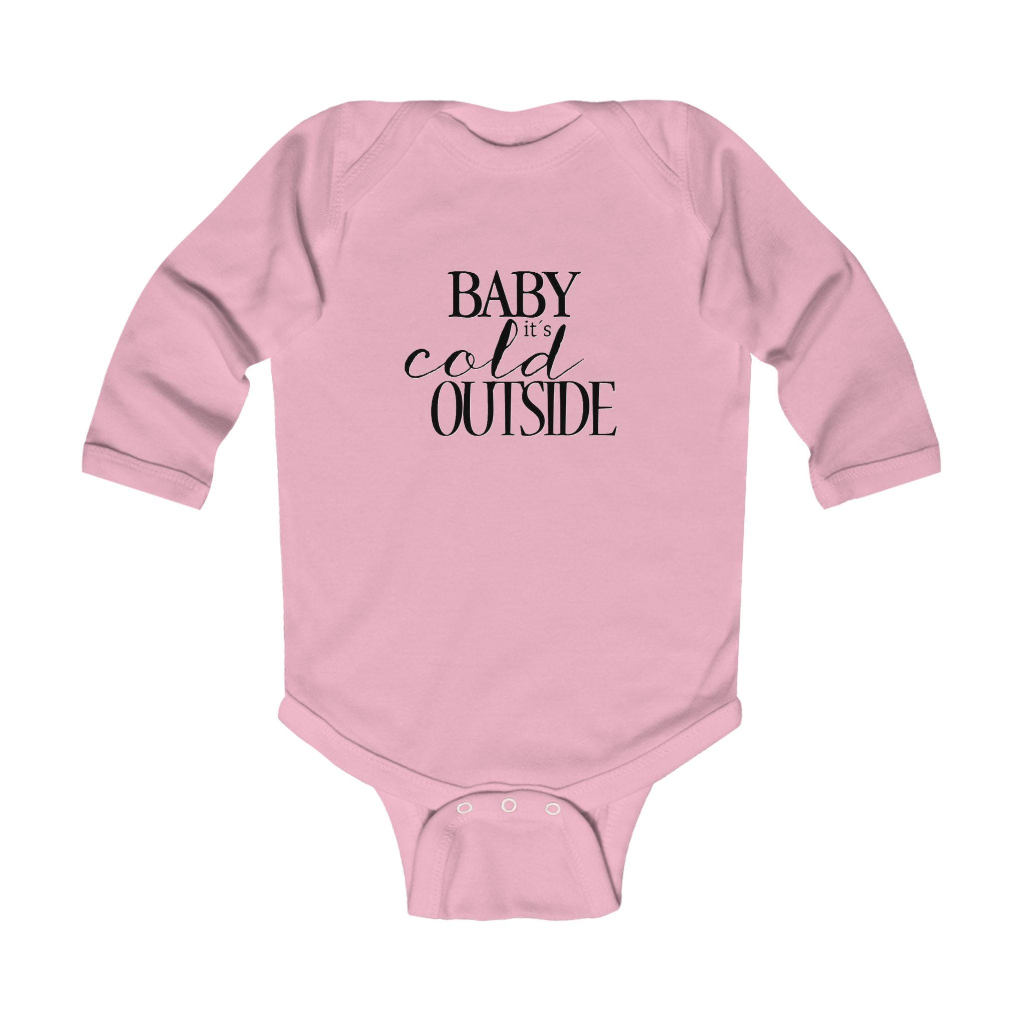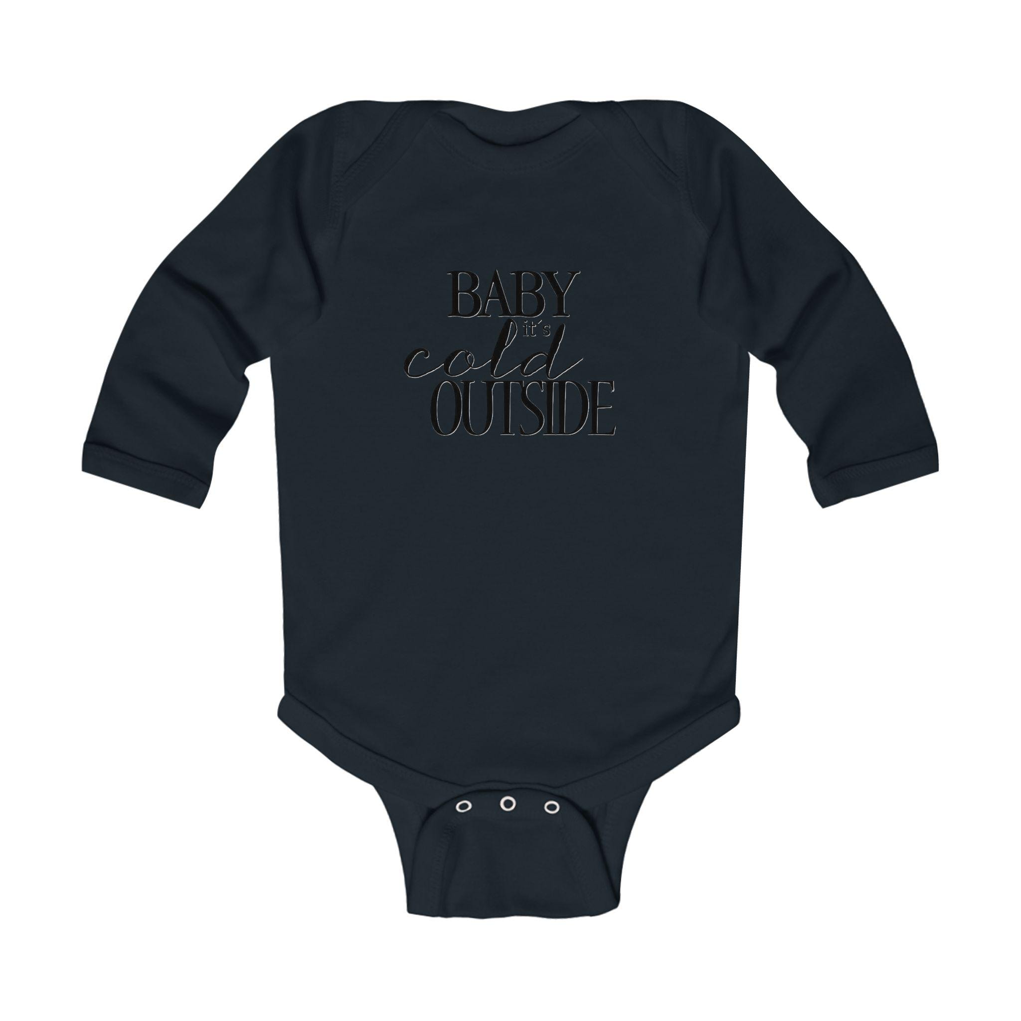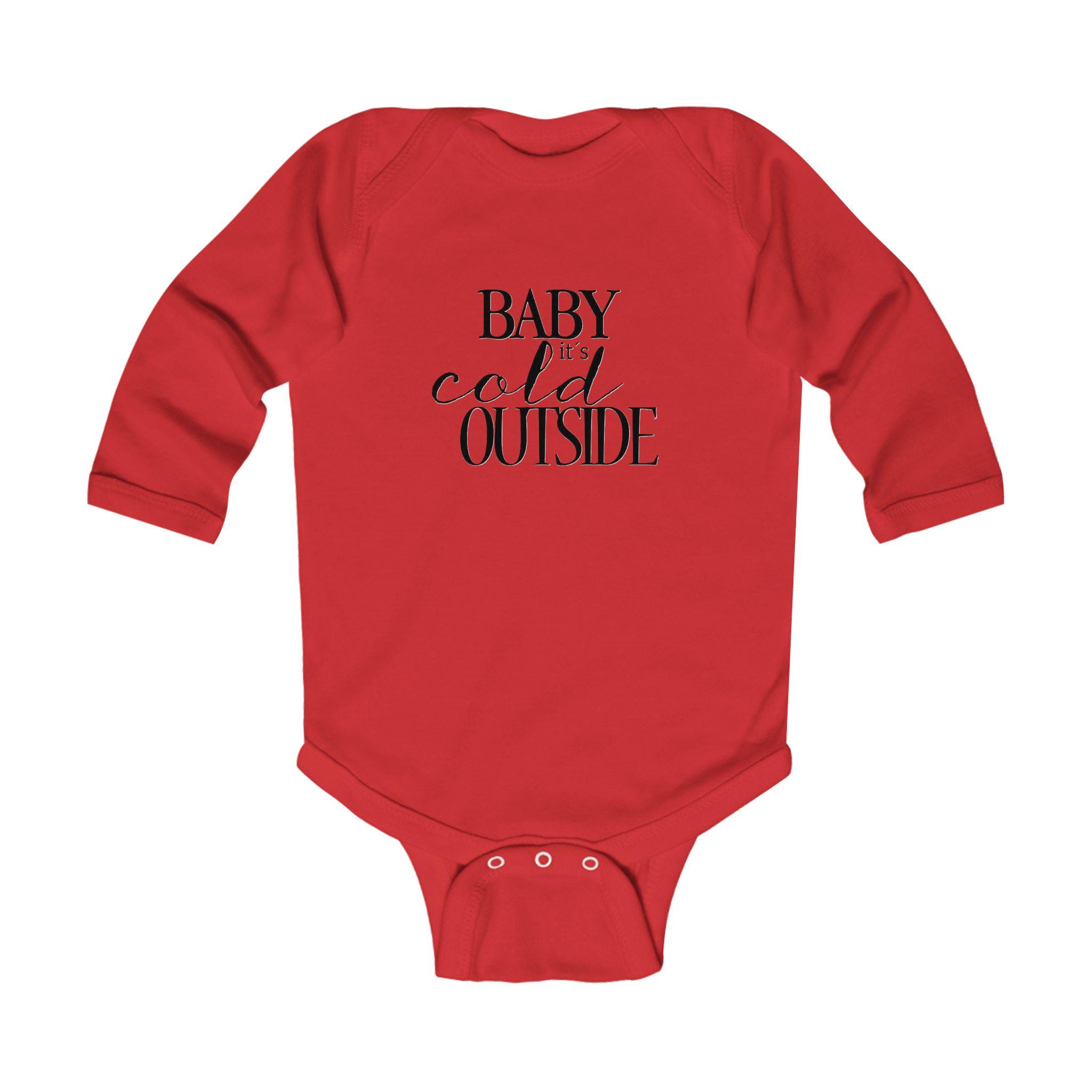 Stay cozy and festive with the Baby It's Cold Outside infant bodysuit. This holiday winter script onesie is perfect for keeping your little one warm during the colder months and adding a touch of seasonal cheer to their wardrobe. Ideal for parents looking to dress their baby in cute and comfortable holiday-themed outfits.