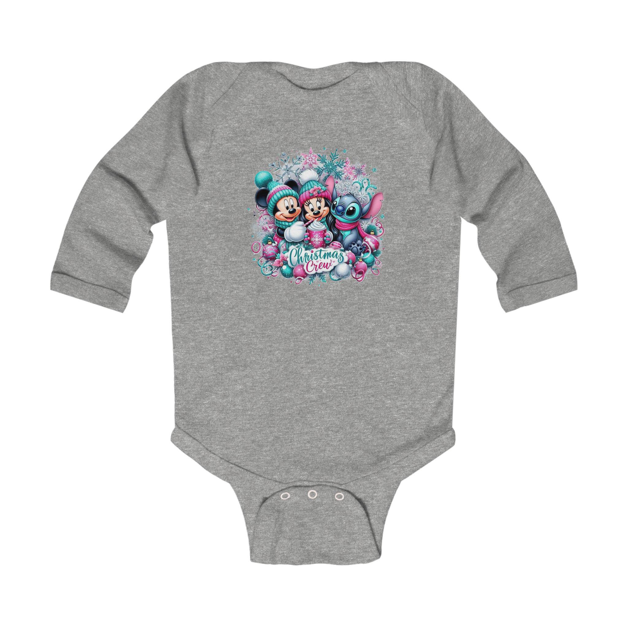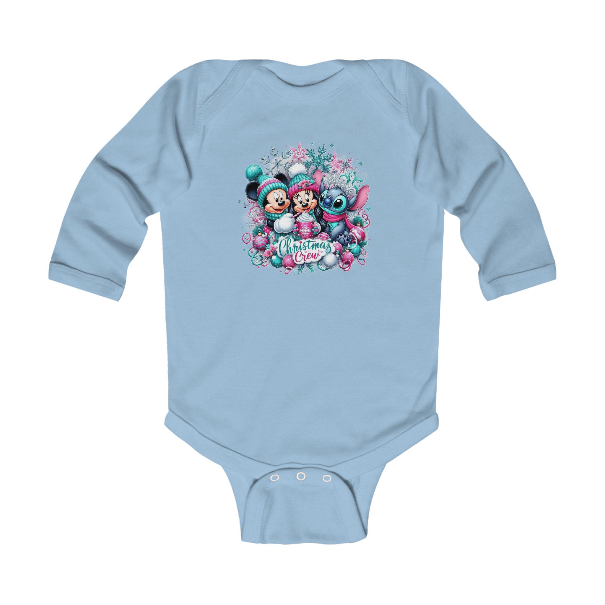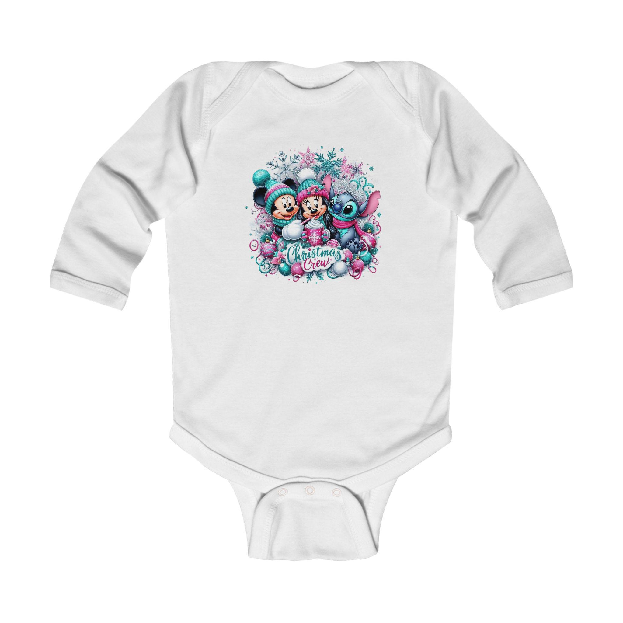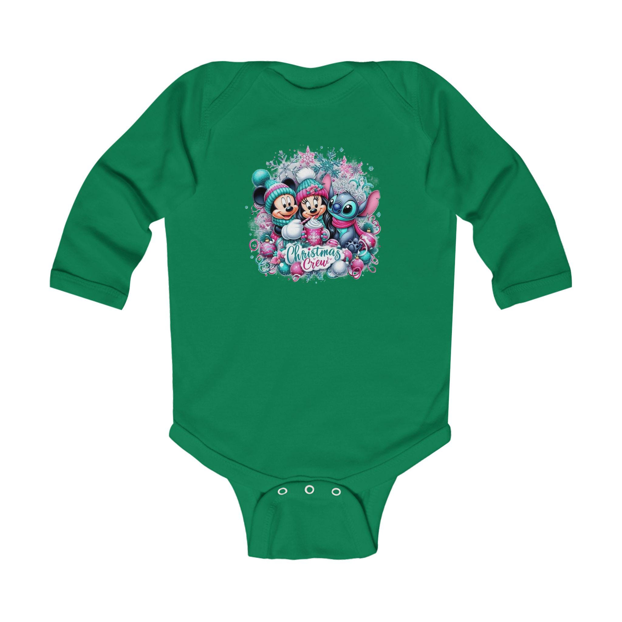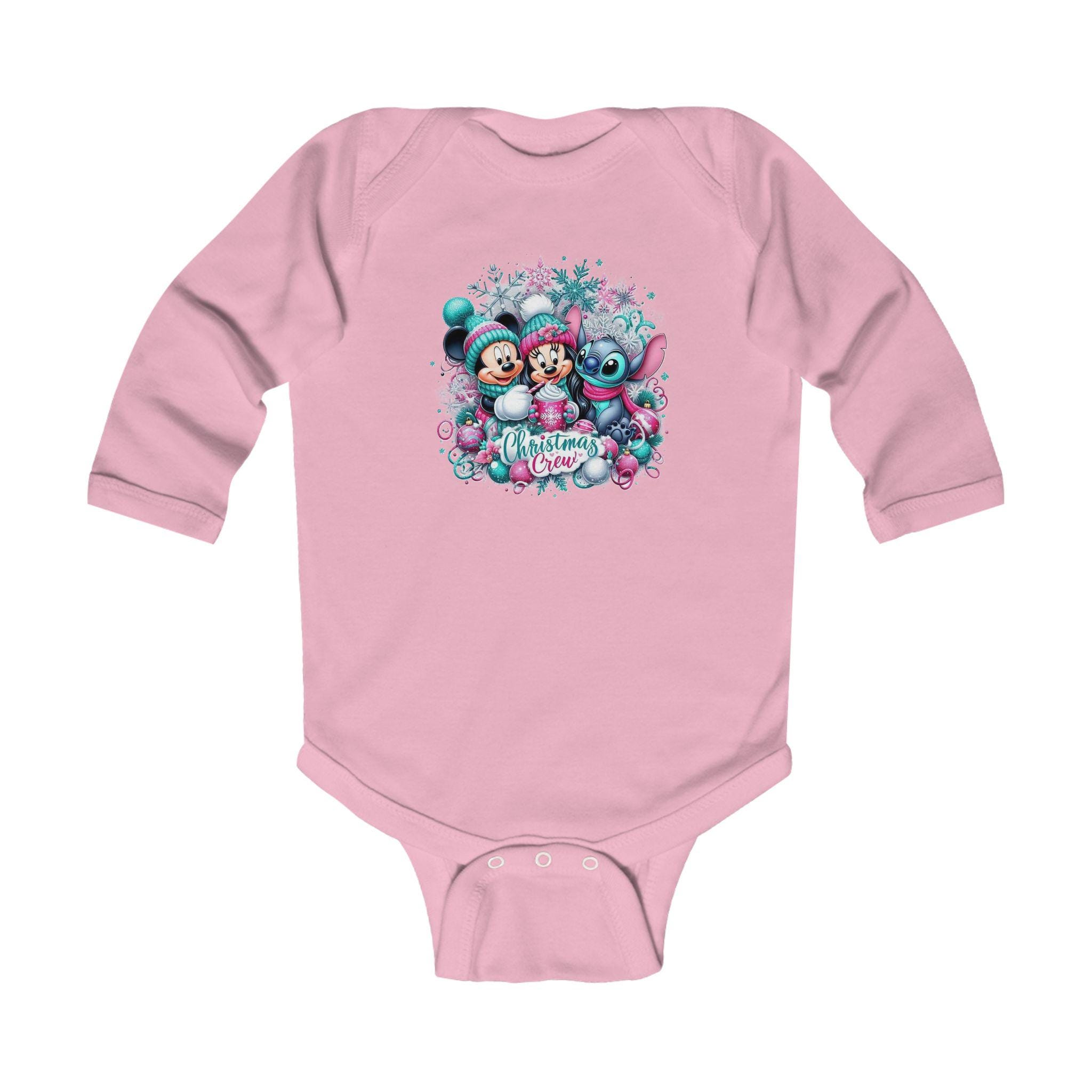 Soft, long-sleeve comfort designed for the littlest snugglers. This infant bodysuit wraps baby in lightweight, breathable cotton with gentle ribbed binding at the neck and cuffs so layering and movement stay easy. The cross-closure with three matching snaps makes diaper changes quick and fuss-free, while the tear-away label keeps sensitive skin irritation-free. Its classic fit and light fabric lets baby crawl, stretch, and nestle into naps with effortless comfort. The cheerful, colorful print on the chest adds a playful, cozy touch that feels like a warm hug on chilly mornings or during family celebrations.