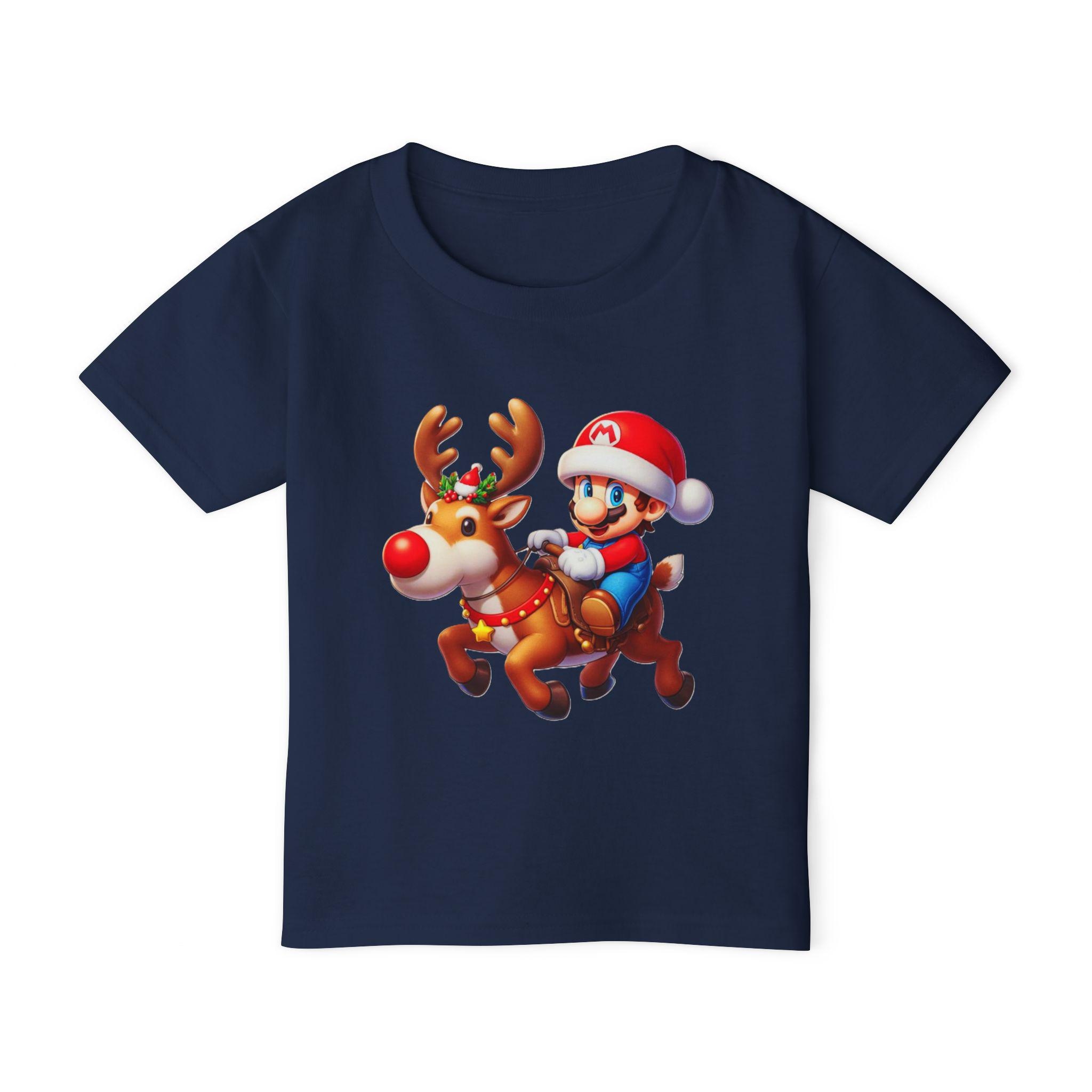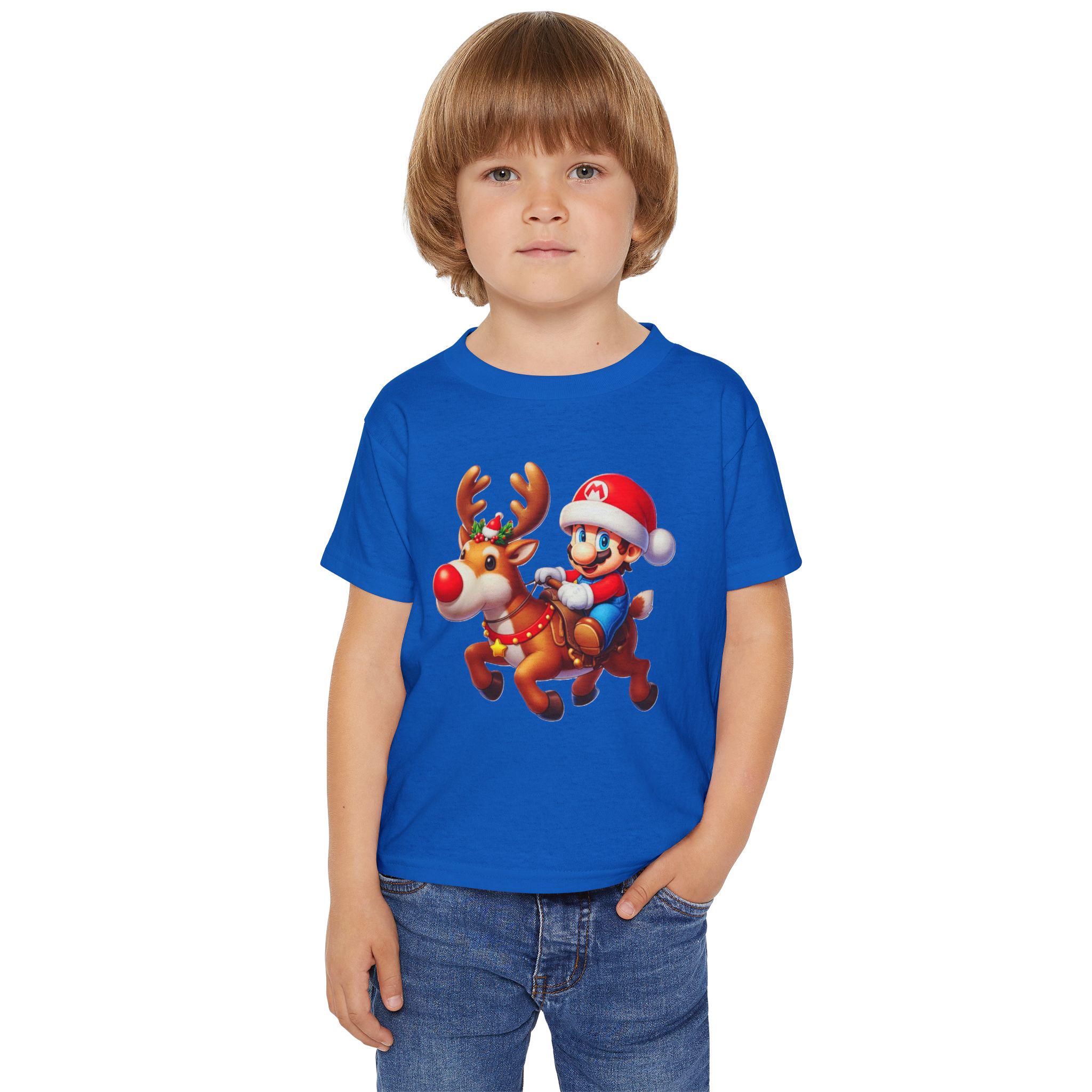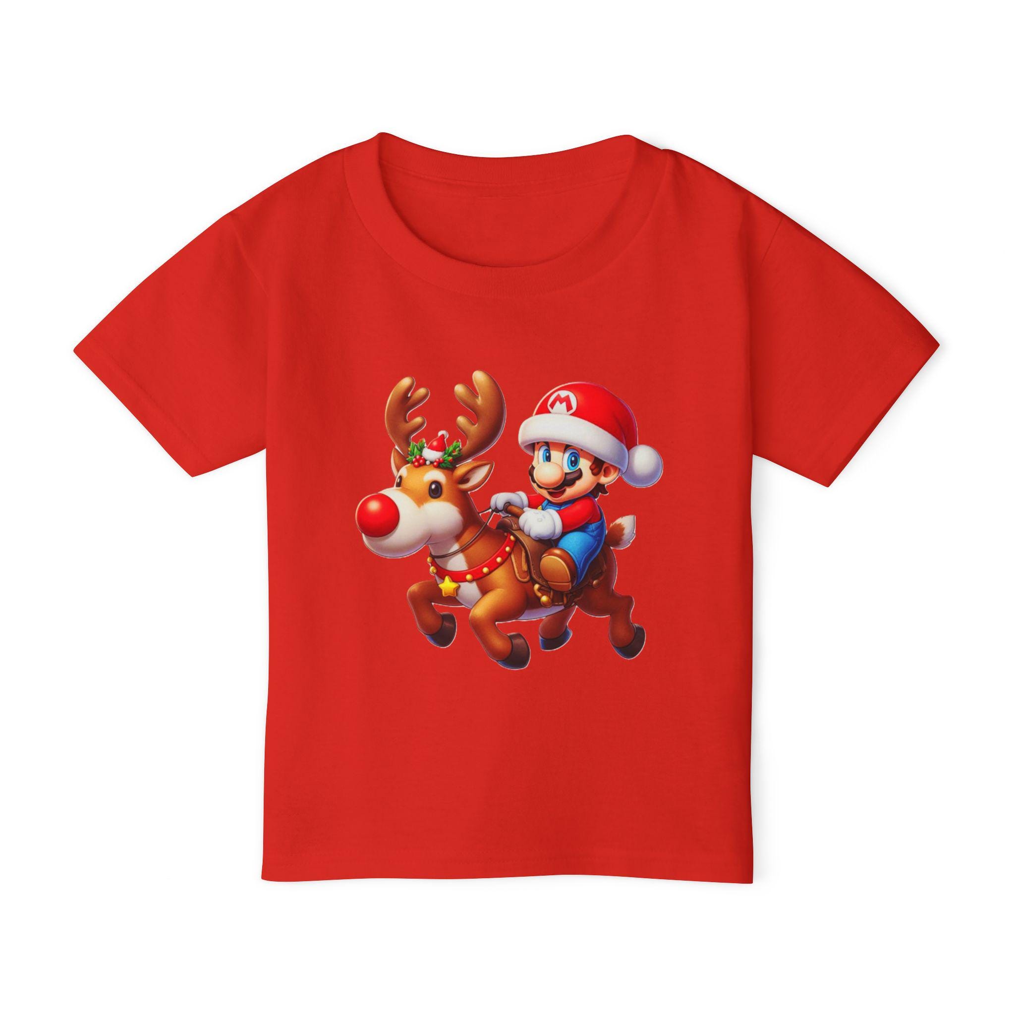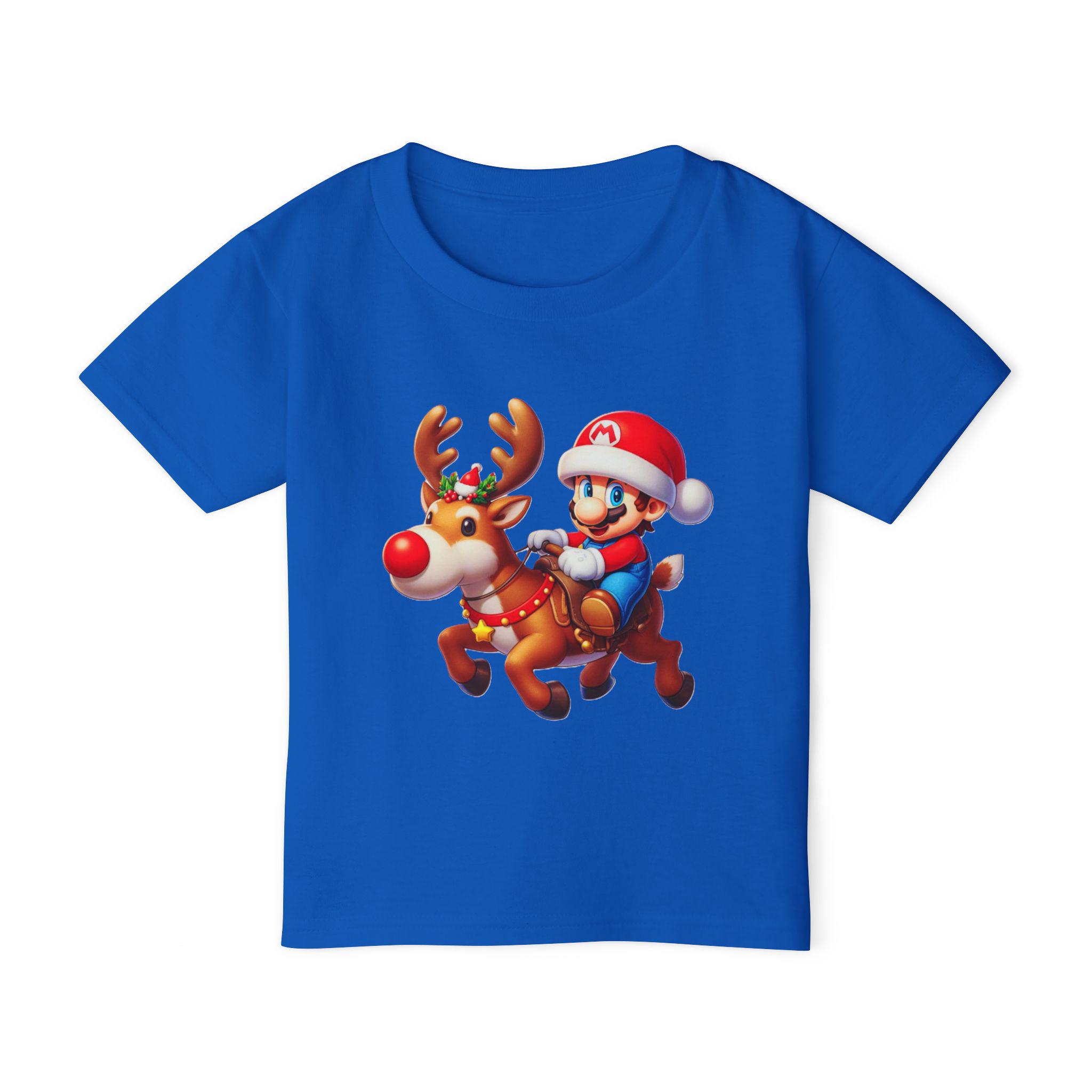 Get your little one in the festive spirit with this Santa Hat Video Game Plumber Riding Reindeer Toddler T-shirt. Perfect for Christmas celebrations, this tee will bring joy to any kid's holiday wardrobe. Ideal for young video game enthusiasts and fans of holiday fun.