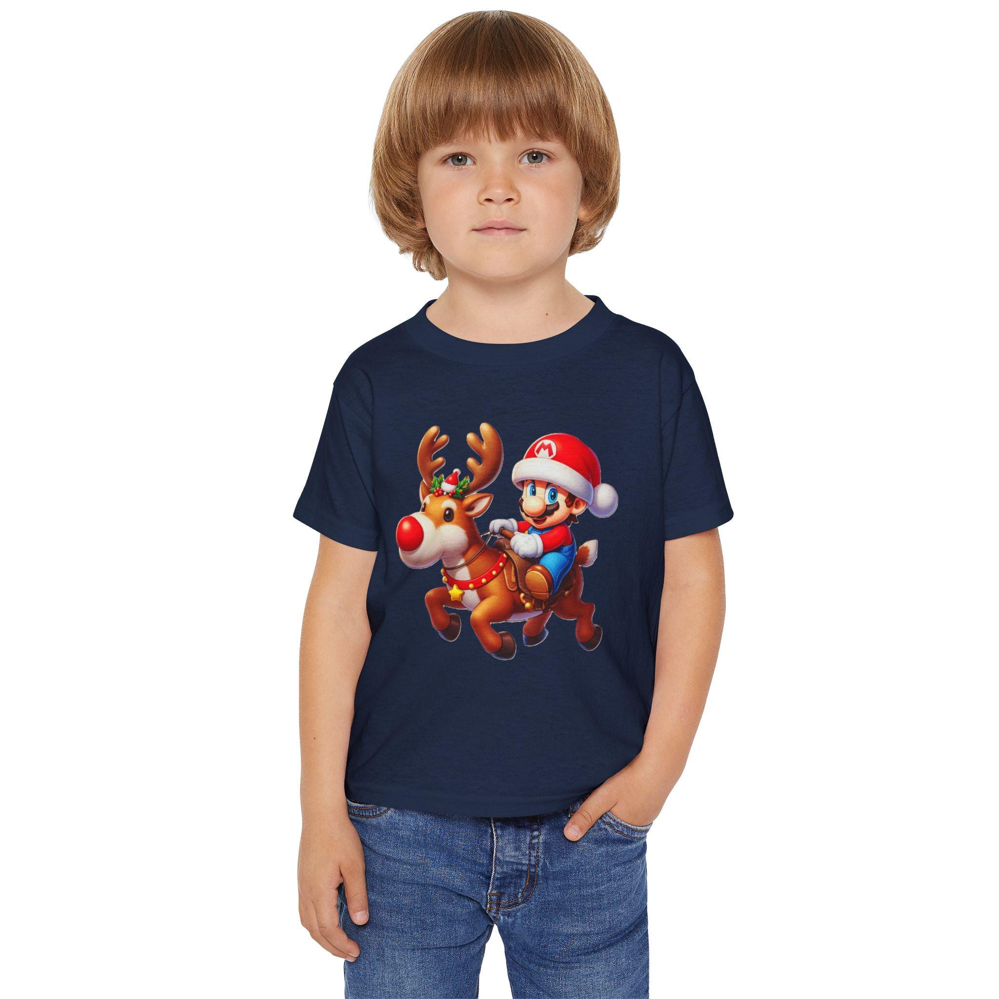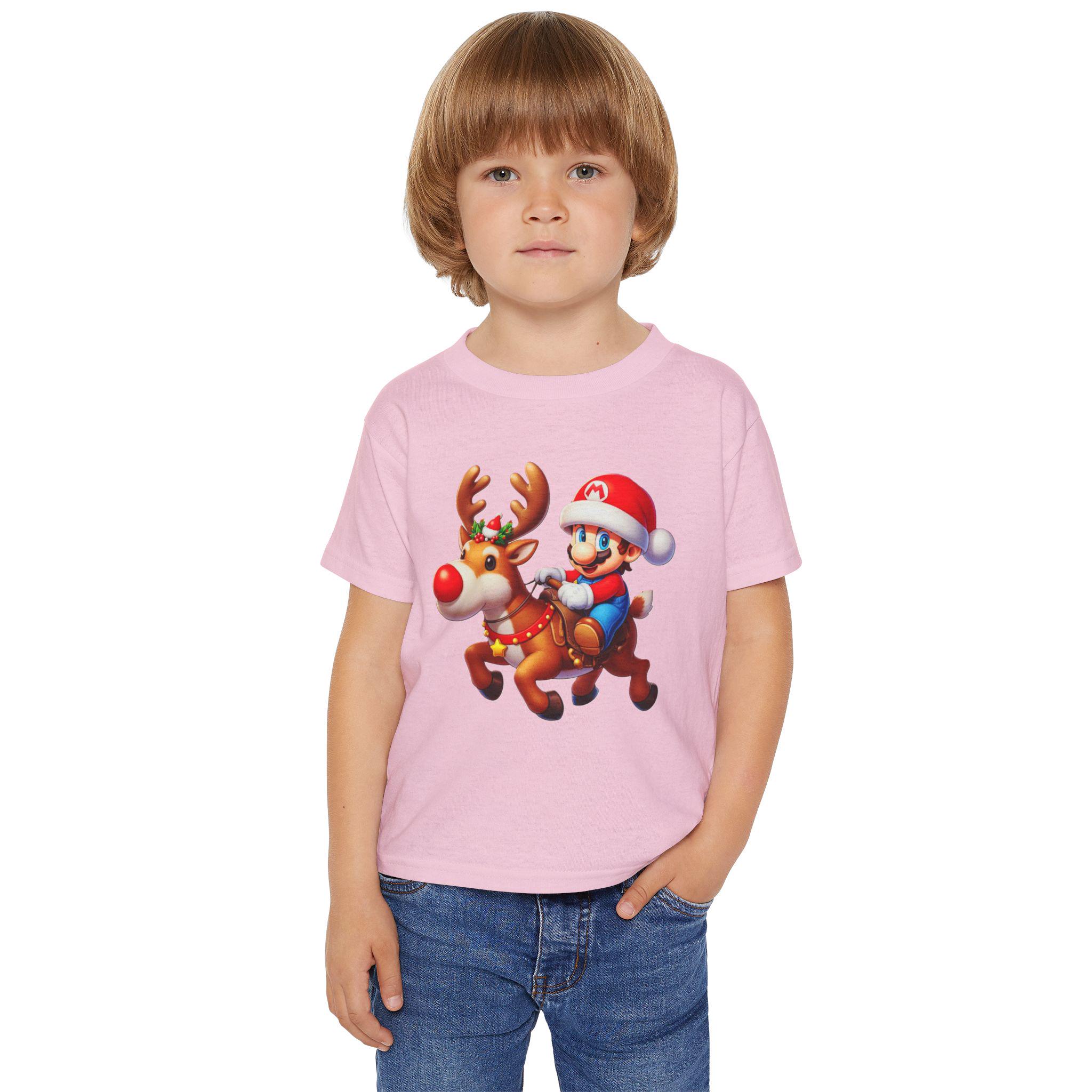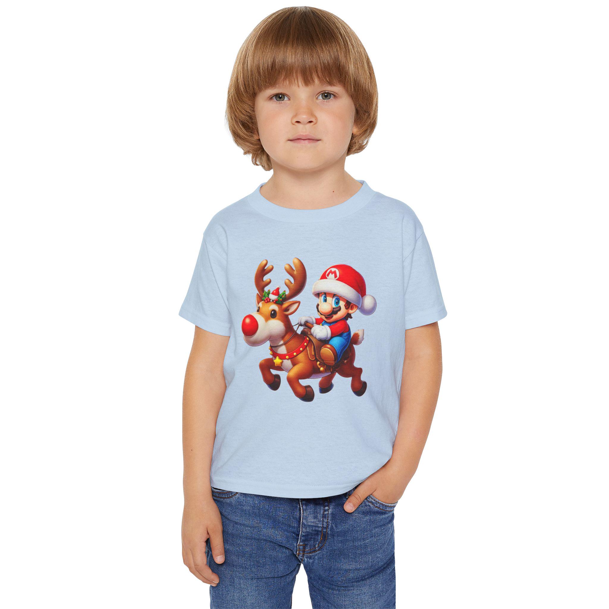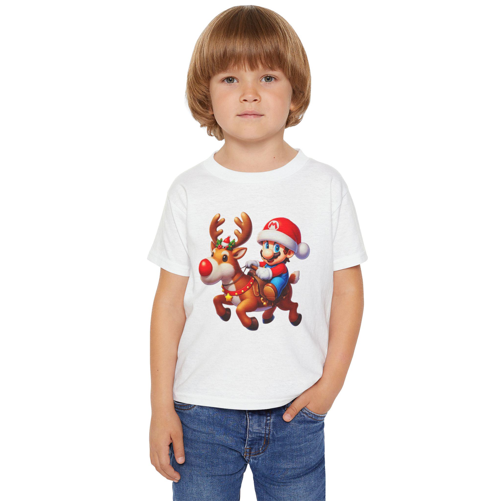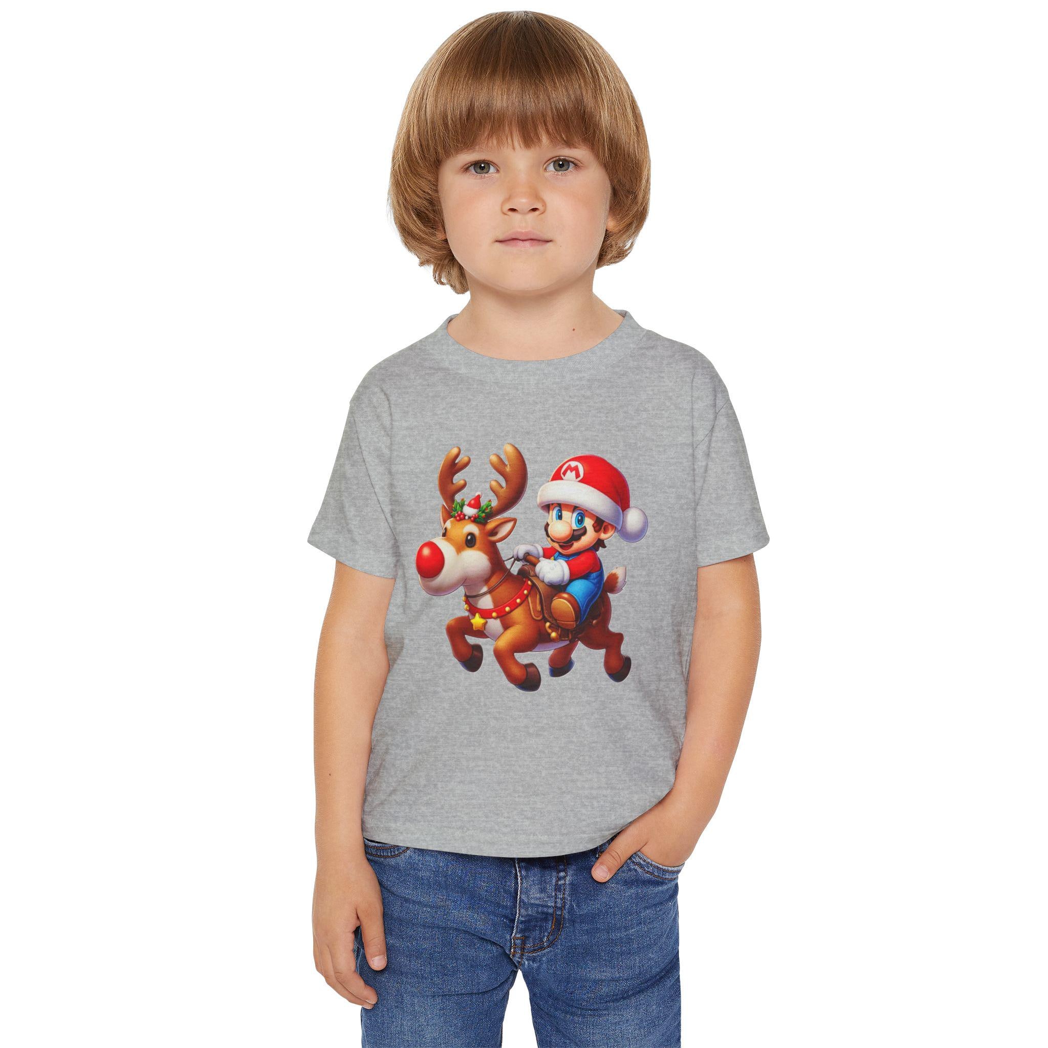 Get your little one in the festive spirit with this Santa Hat Video Game Plumber Riding Reindeer Toddler T-shirt. Perfect for Christmas celebrations, this tee will bring joy to any kid's holiday wardrobe. Ideal for young video game enthusiasts and fans of holiday fun.