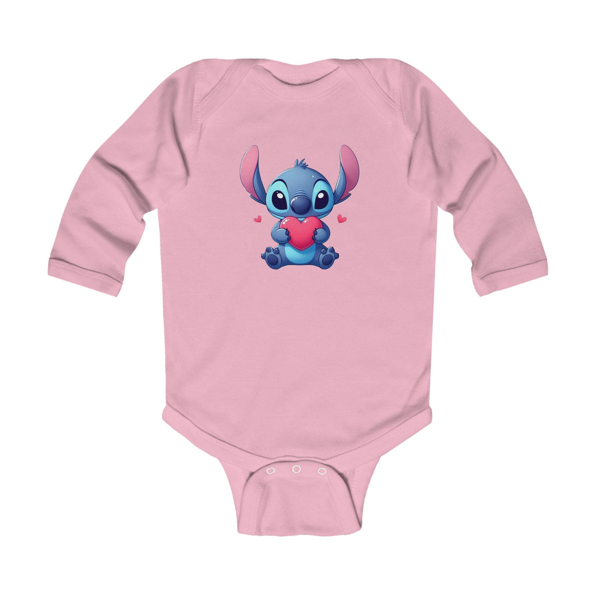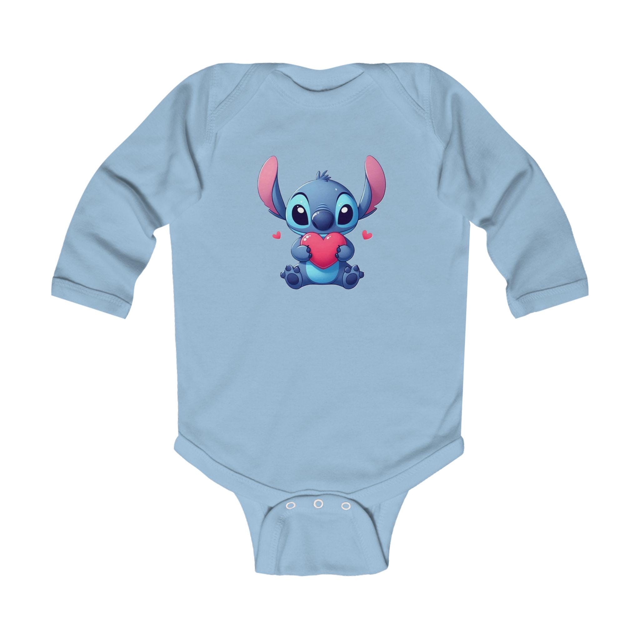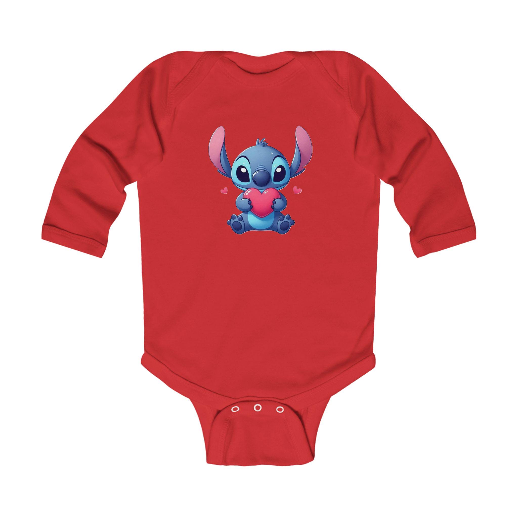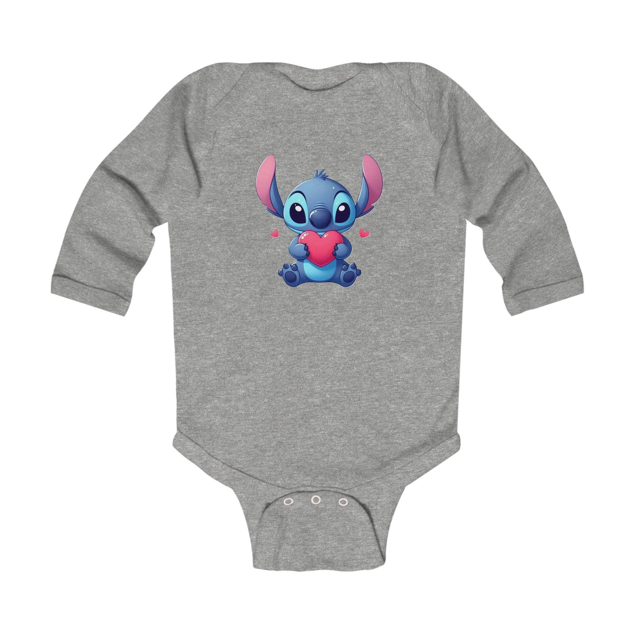 This Stitch Cute Holding Heart Bodysuit is perfect for your little one, adding a touch of sweetness to their wardrobe. Made with soft ribbed knit binding and featuring 3 snaps for easy diaper changes, this bodysuit is both comfortable and functional. The light fabric and classic fit make it ideal for everyday wear, and the tear-away label ensures no irritation on baby's sensitive skin. This bodysuit is a great choice for parents looking for a cozy and adorable outfit for their infant.
