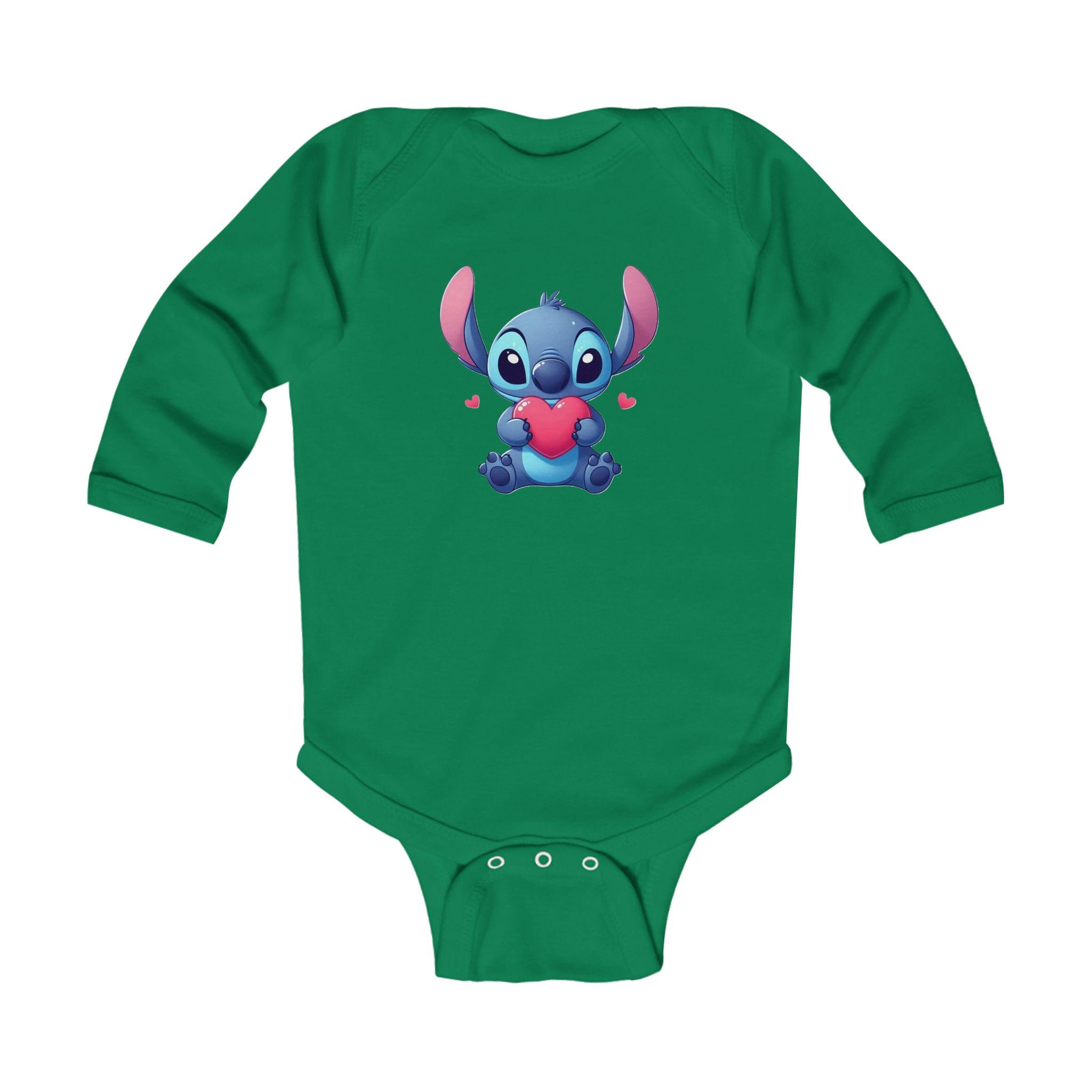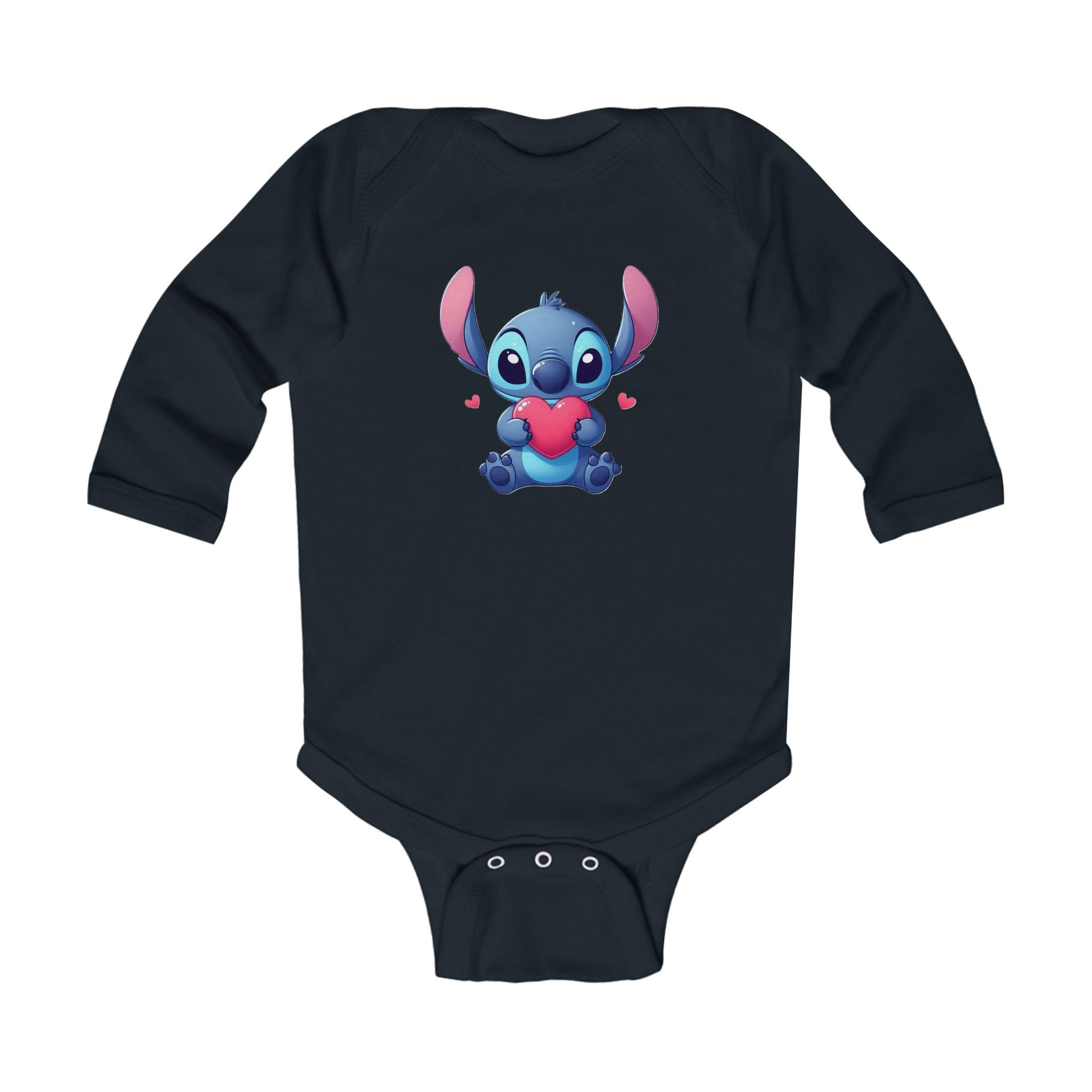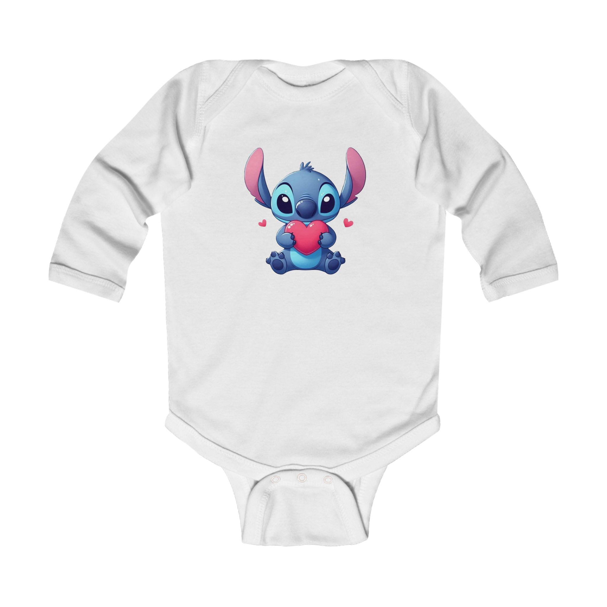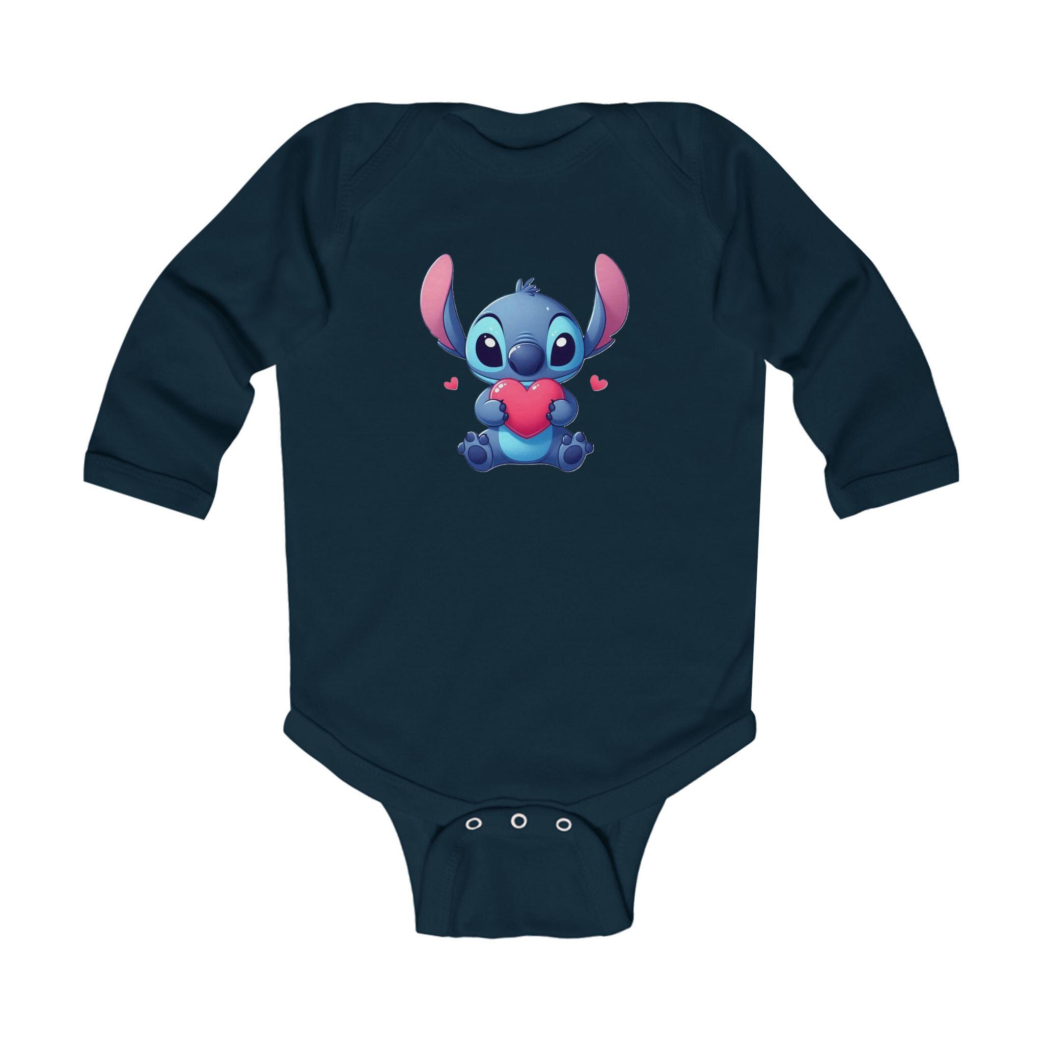 This Stitch Cute Holding Heart Bodysuit is perfect for your little one, adding a touch of sweetness to their wardrobe. Made with soft ribbed knit binding and featuring 3 snaps for easy diaper changes, this bodysuit is both comfortable and functional. The light fabric and classic fit make it ideal for everyday wear, and the tear-away label ensures no irritation on baby's sensitive skin. This bodysuit is a great choice for parents looking for a cozy and adorable outfit for their infant.