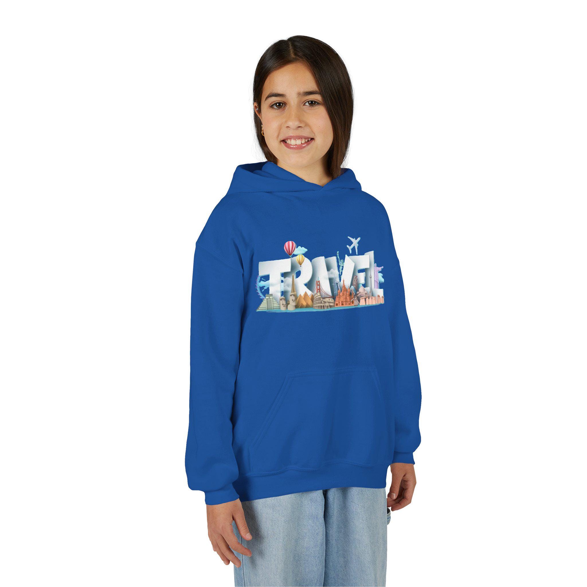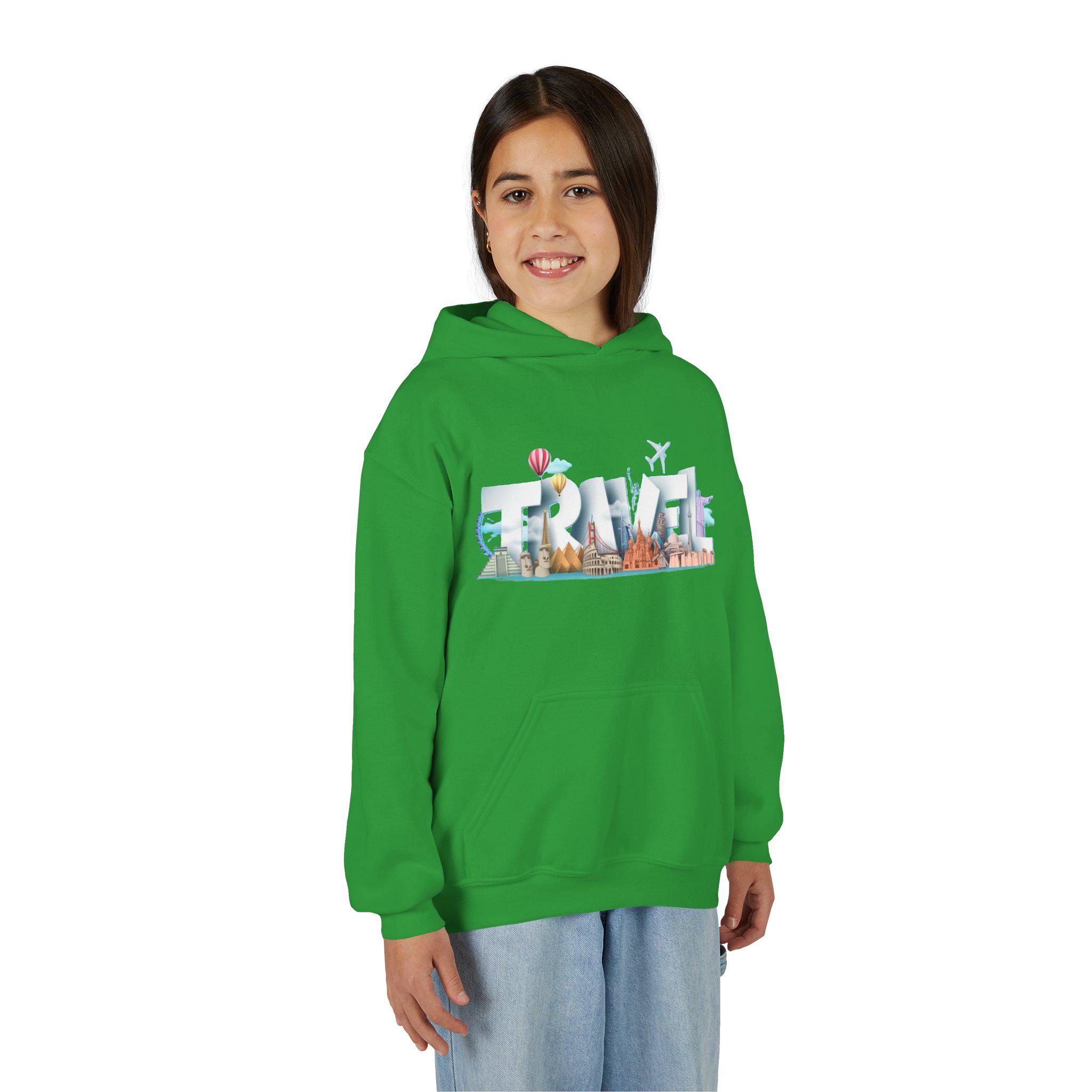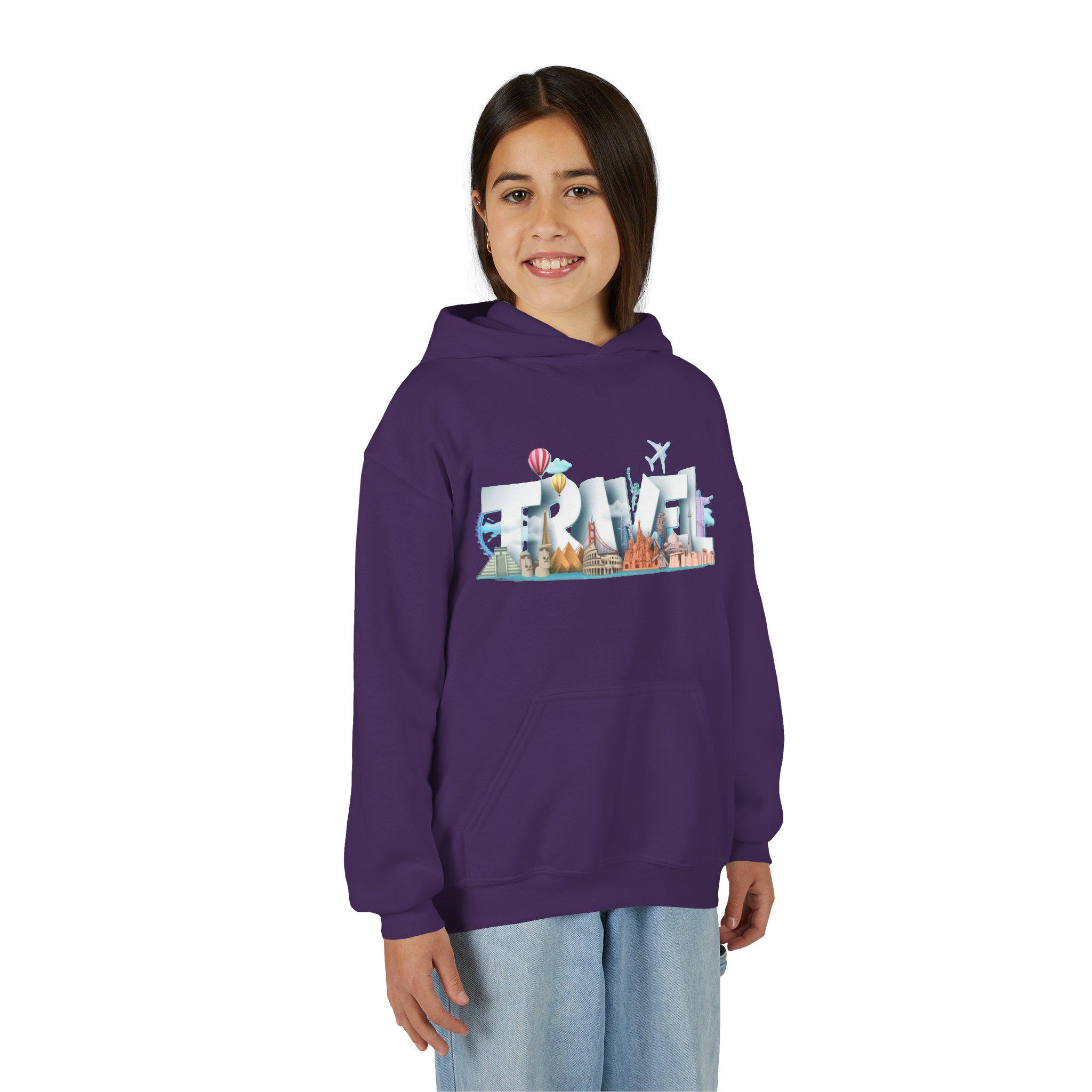 Soft, cozy, and quietly adventurous — this youth hoodie brings a little world of travel to everyday wear. A crisp white fleece canvas frames a dreamy, miniature skyline across the chest: tiny hot air balloons, distant mountains and city silhouettes that invite curiosity and daydreams. The roomy kangaroo pocket keeps small hands warm and gives kids a place to tuck snacks or treasures. Medium-weight fabric and a regular fit make it comfy for school mornings, weekend explorations, or layered evenings around a campfire. Durable stitching, stable necktape, and printed wrist details hold up to play while the option for embroidered chest accents adds a personalized touch.
