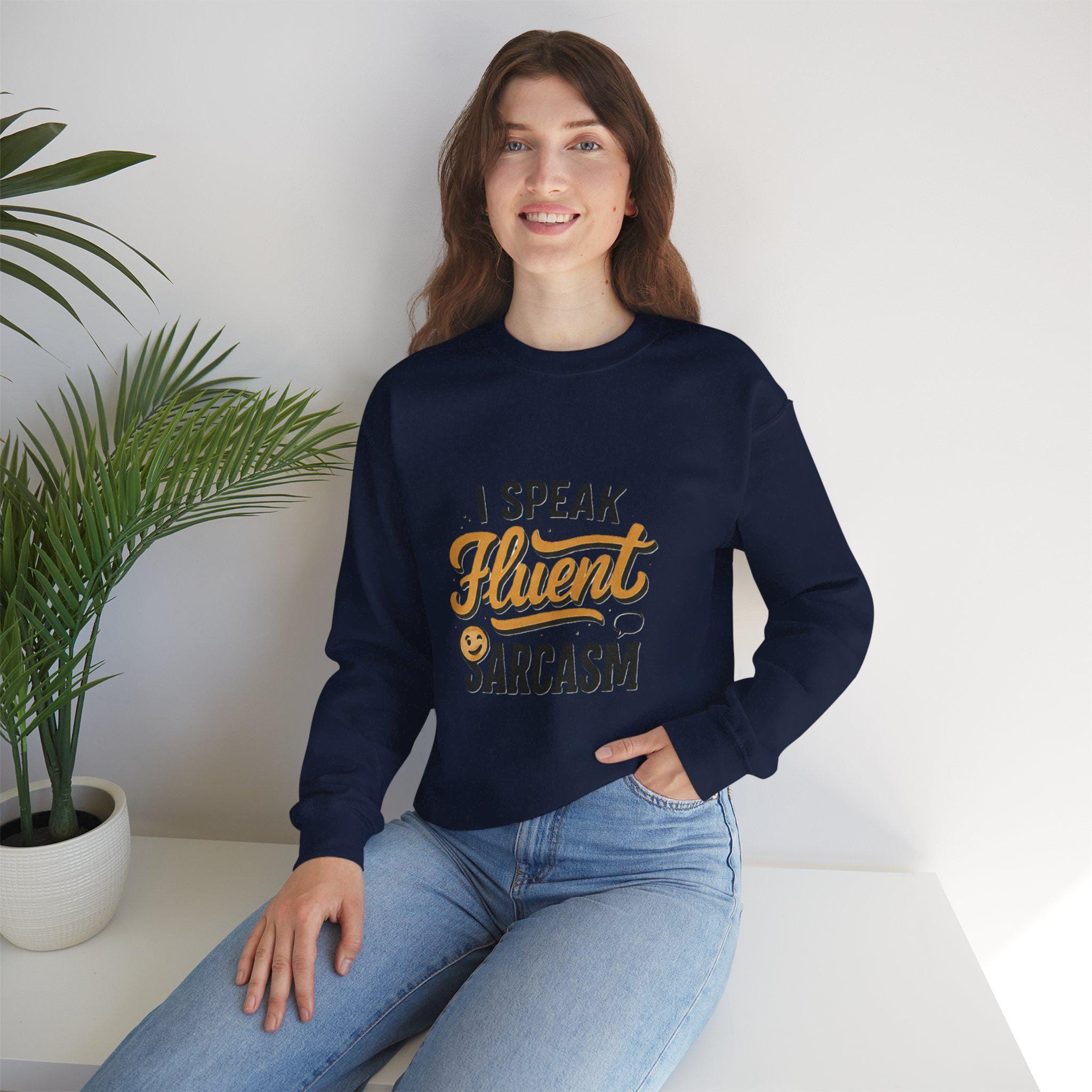 This cozy crewneck brings a wink and a warm hug in equal measure. Soft, slightly structured fleece holds the playful “I Speak Fluent Sarcasm” artwork with crisp detail, while the classic cut sits comfortably over jeans or loungewear. Wear it on slow mornings, at chill get-togethers, or when you need a low-effort way to announce your sense of humor. The embroidered-ready layout and clean neck finish keep the sweatshirt looking thoughtful — not sloppy — whether you're running errands or lounging at home. It's for people who speak in dry one-liners and appreciate clothing that's as comfortable as their sarcasm is sharp.