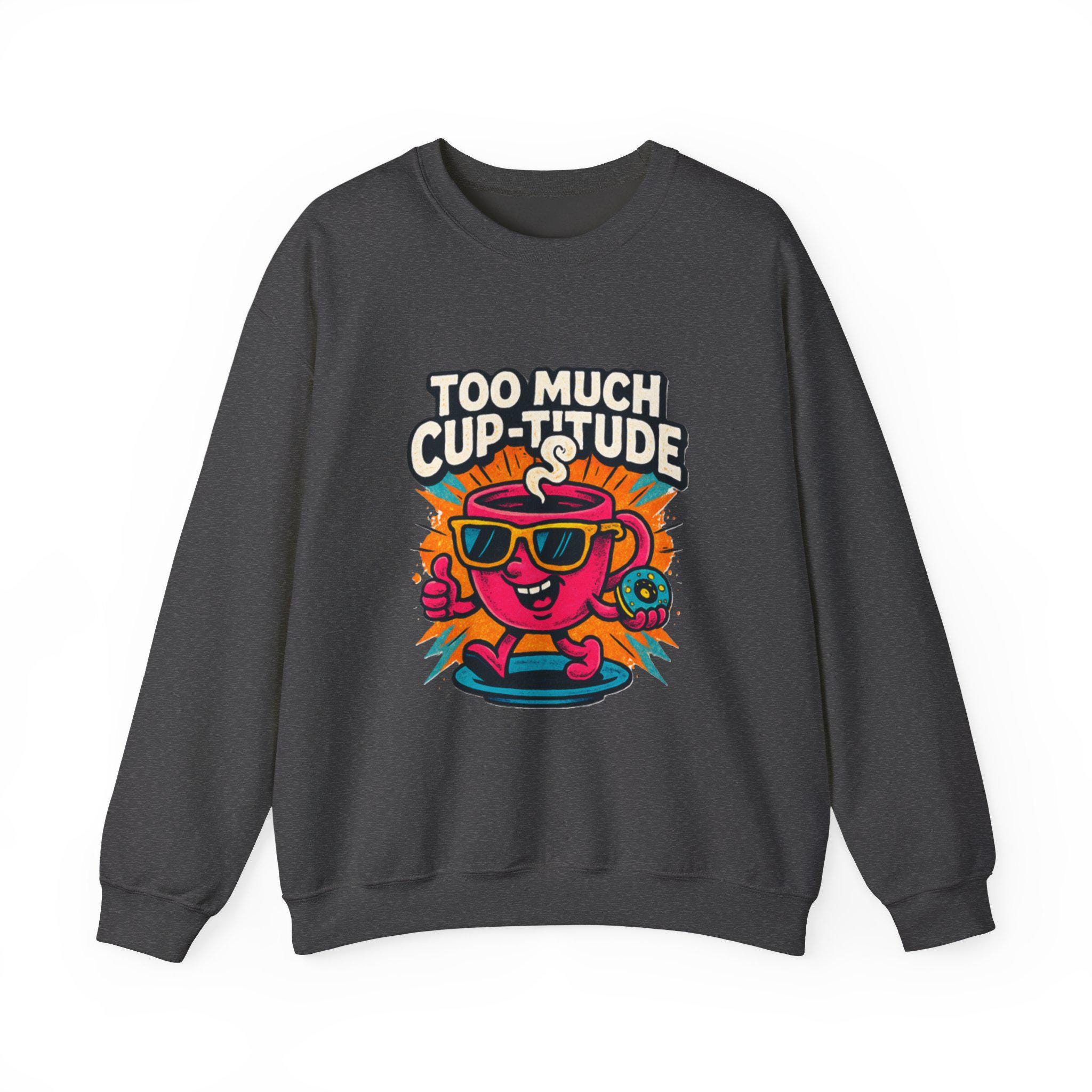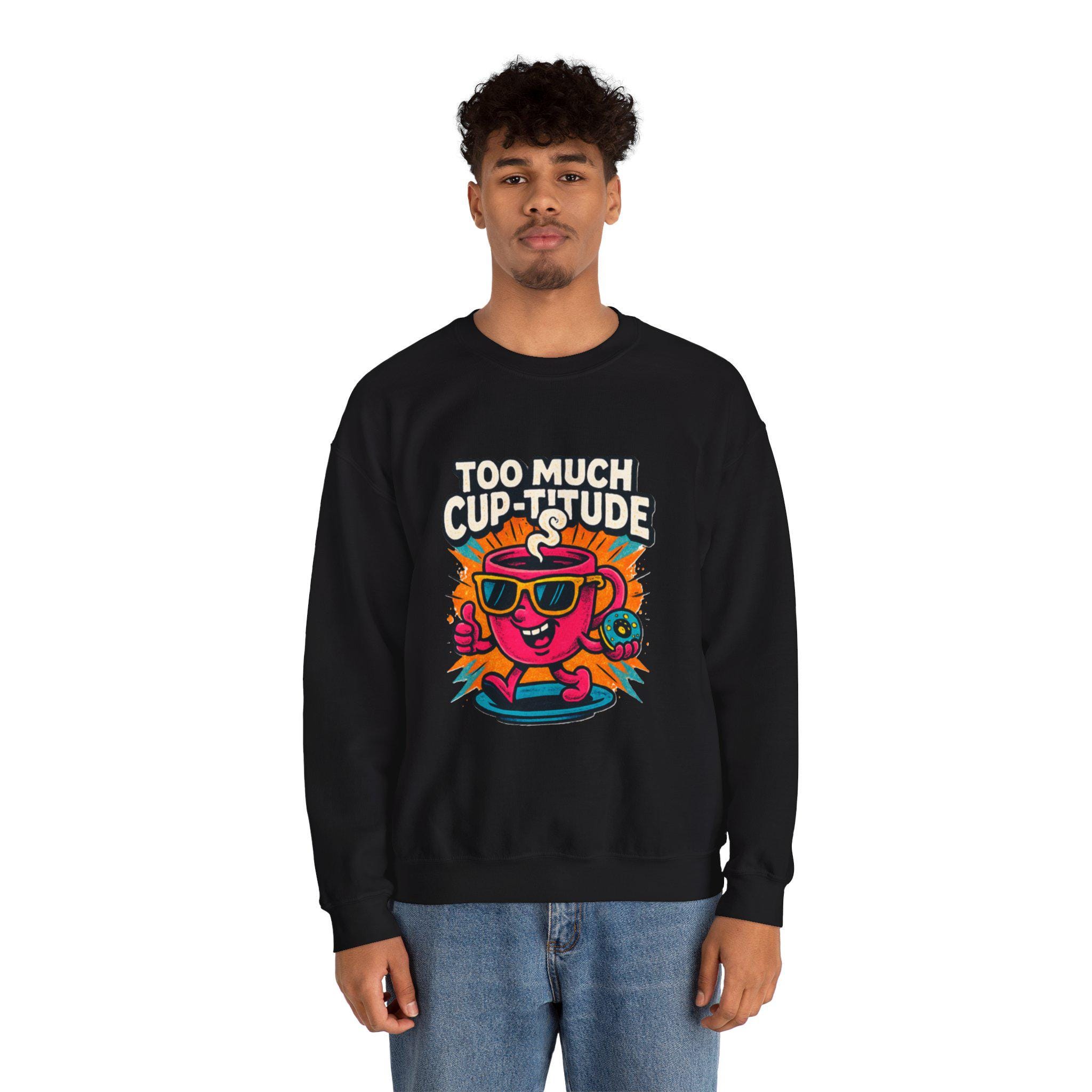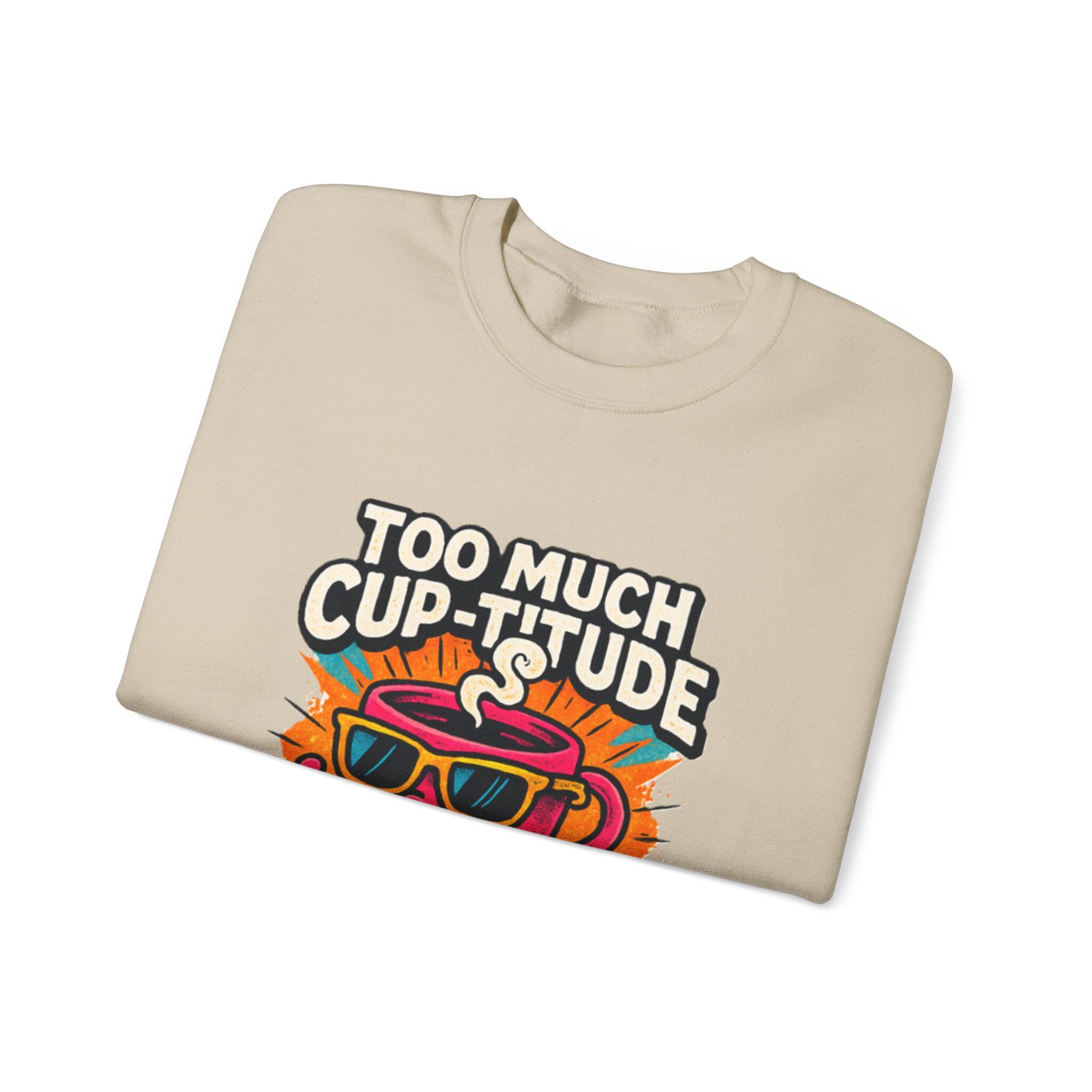 This cozy crewneck brings playful energy to everyday wear. The medium‑heavy cotton‑poly blend feels soft against the skin while holding its shape through wash after wash. A vibrant, retro cartoon print — a sunlit coffee cup wearing shades with the cheeky line “TOO MUCH CUP-TITUDE” — sits centered on the chest, adding bold color and personality to a clean white canvas. Built with tubular knit (no side seams) for a smooth silhouette and reinforced with double-needle stitching at stress points, the sweatshirt moves with you and lasts. Embroidered or printed label options and OEKO‑TEX certified dyes keep it comfortable and responsibly made. Wear it for slow mornings, road trips, or when you want to bring a little extra attitude to your coffee run.