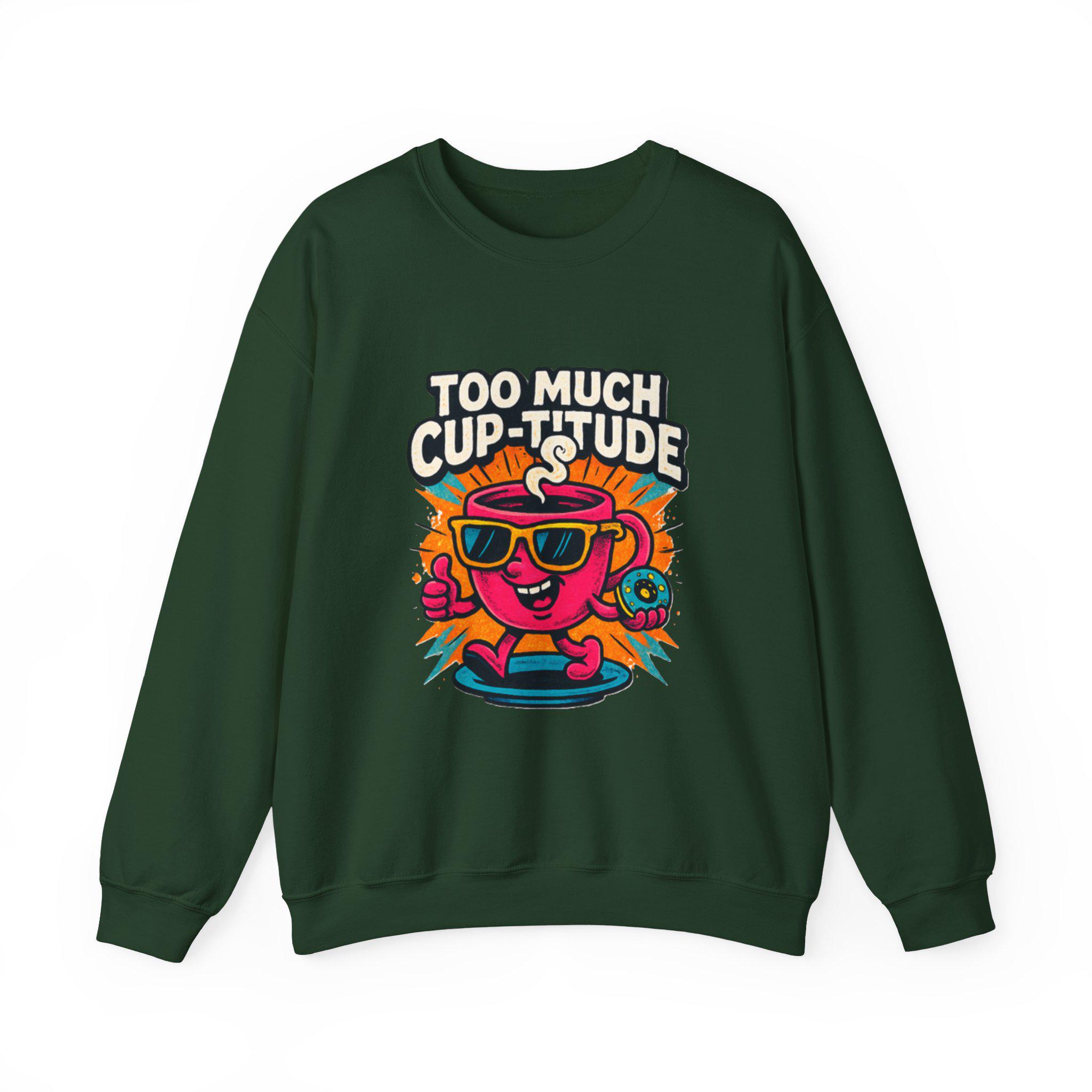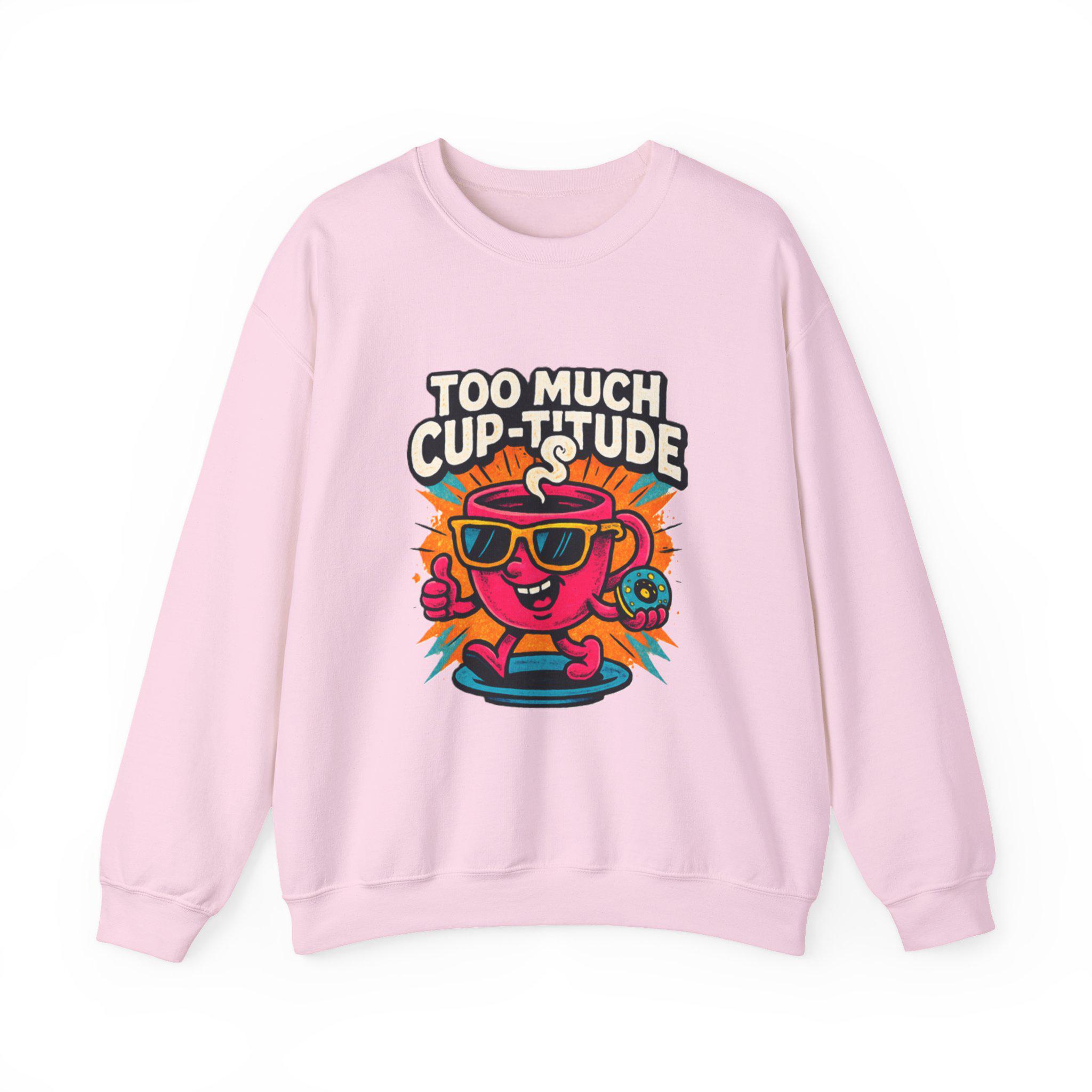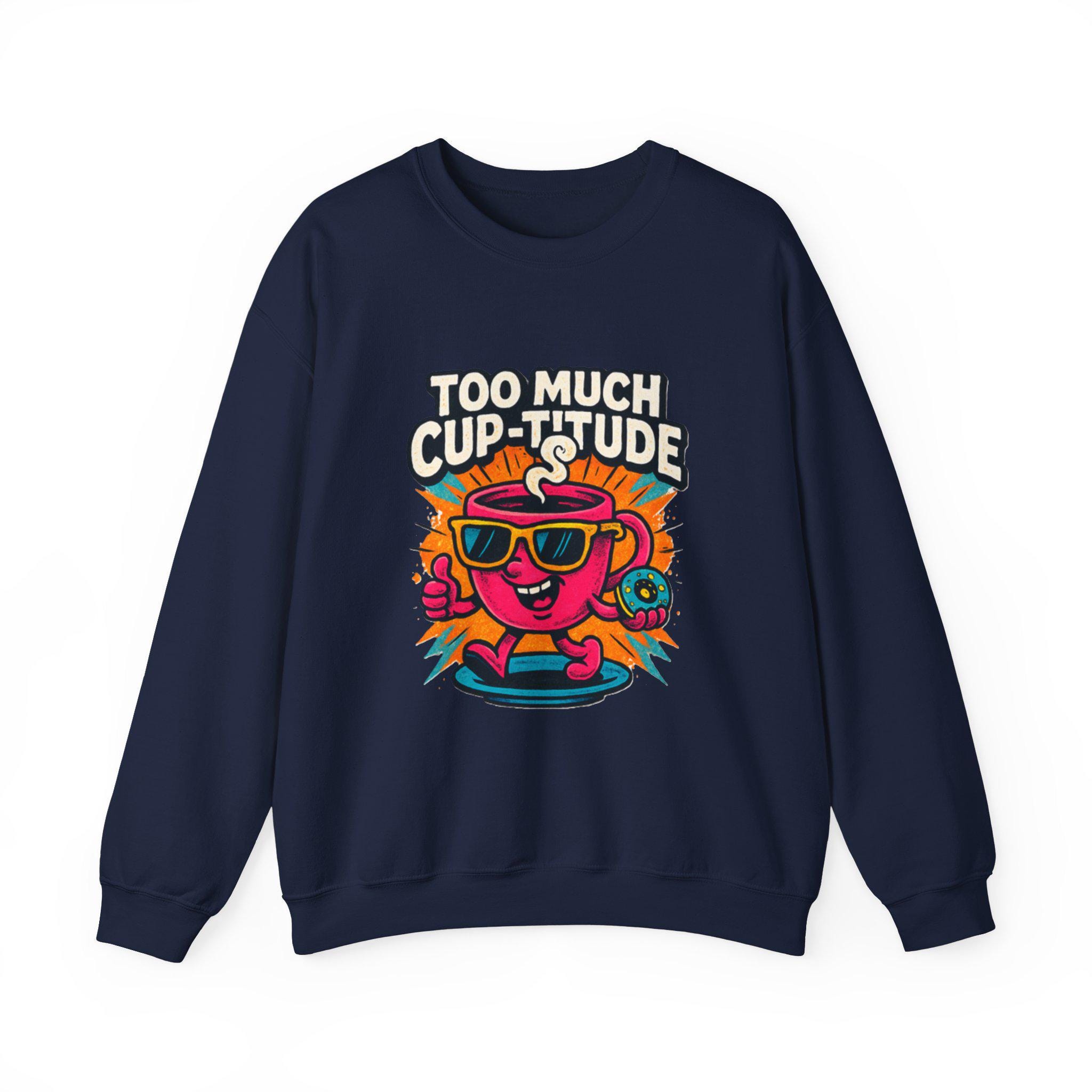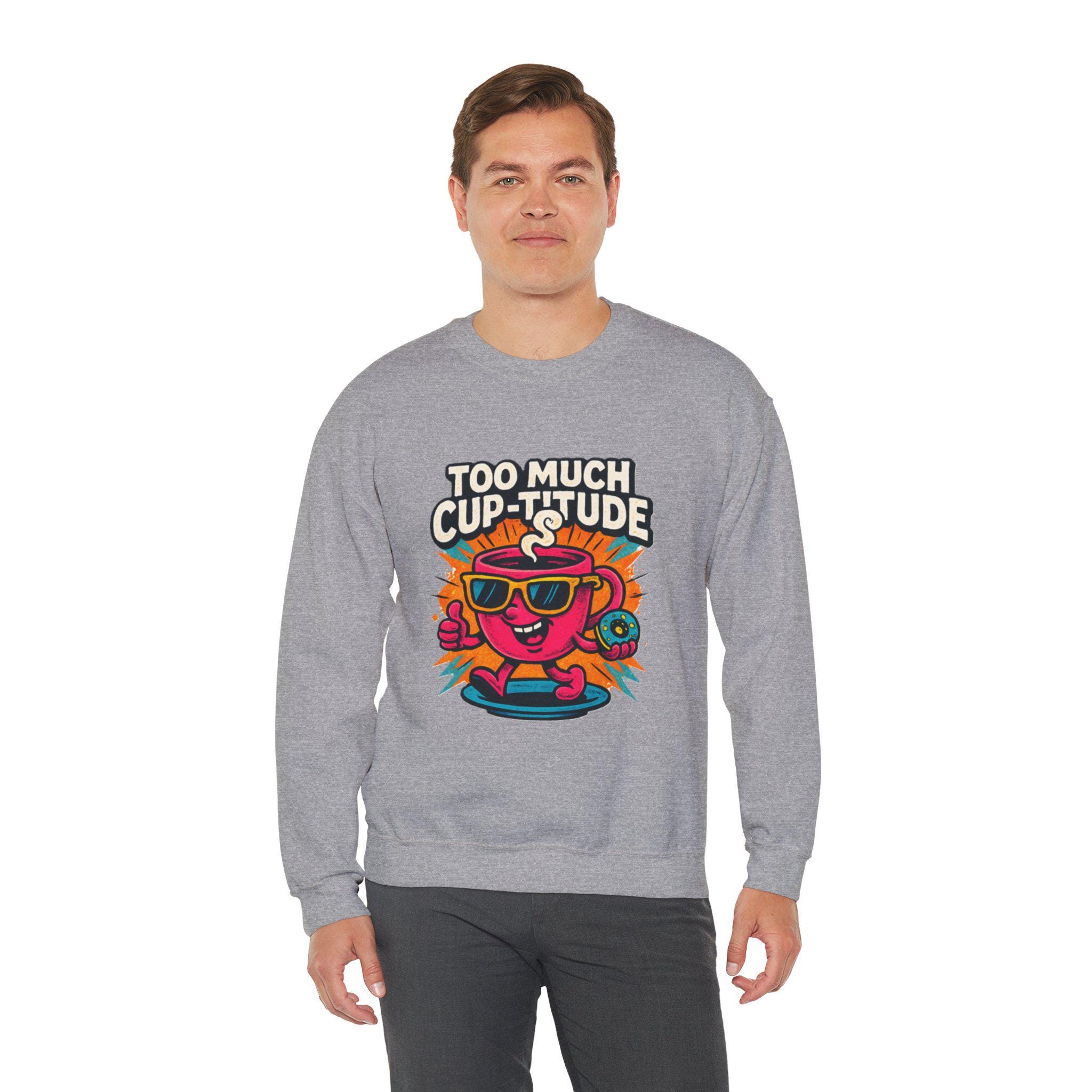 This cozy crewneck brings playful energy to everyday wear. The medium‑heavy cotton‑poly blend feels soft against the skin while holding its shape through wash after wash. A vibrant, retro cartoon print — a sunlit coffee cup wearing shades with the cheeky line “TOO MUCH CUP-TITUDE” — sits centered on the chest, adding bold color and personality to a clean white canvas. Built with tubular knit (no side seams) for a smooth silhouette and reinforced with double-needle stitching at stress points, the sweatshirt moves with you and lasts. Embroidered or printed label options and OEKO‑TEX certified dyes keep it comfortable and responsibly made. Wear it for slow mornings, road trips, or when you want to bring a little extra attitude to your coffee run.