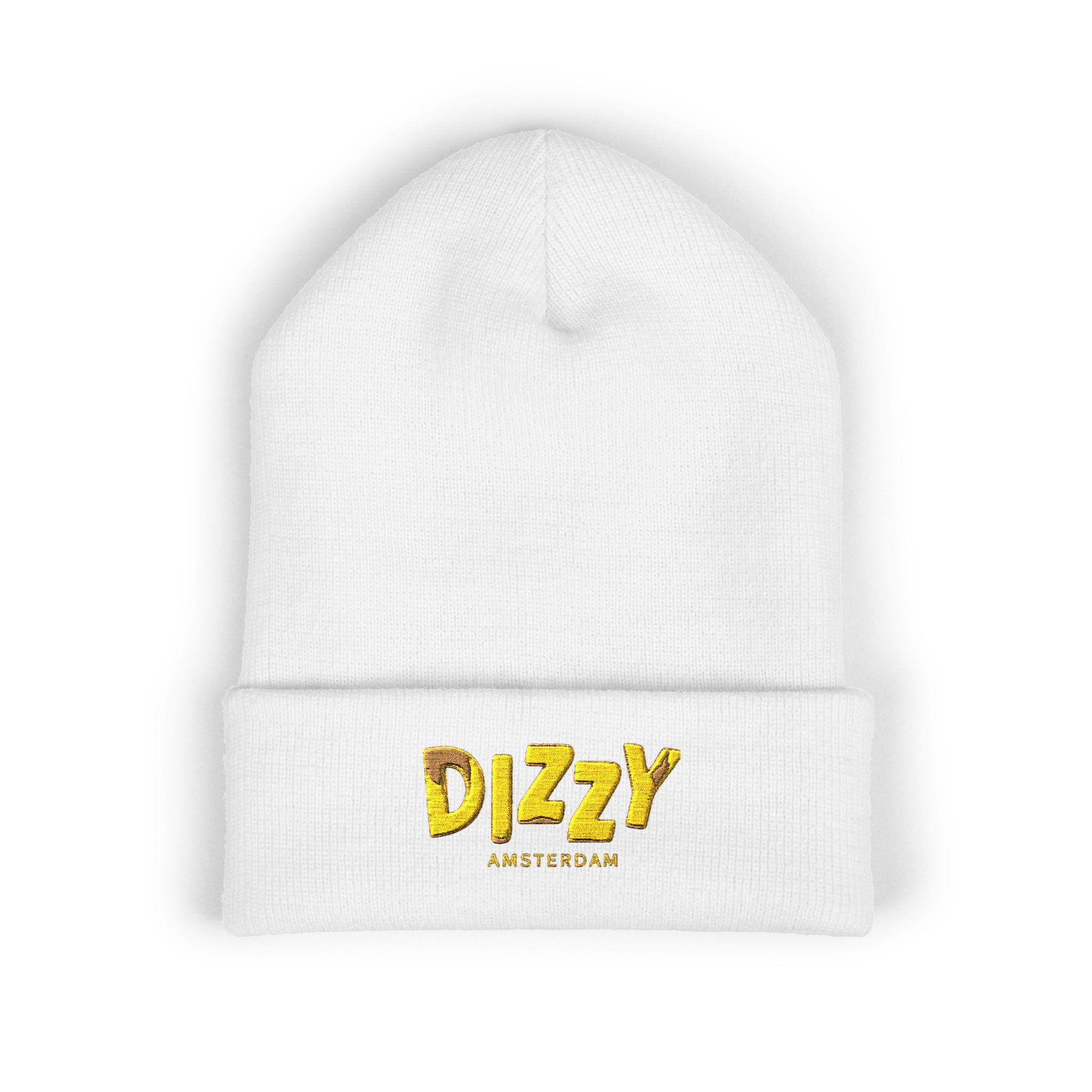 This cuffed beanie brings a laid-back, streetwise vibe to chilly days. The 12" folded cuff creates a classic silhouette that frames a playful embroidered wordmark — bold yellow stitching adds warmth and personality against the clean white knit. Lightweight but insulating, the turbo acrylic fabric soft against the skin and resists common irritants, so you can wear it all day without fuss. Wear it pulled low over your ears on a blustery commute, or cuffed higher for a casual, city-skater look. The embroidered detail reads like a small, confident statement — subtle enough for everyday wear, distinct enough to catch a second glance.