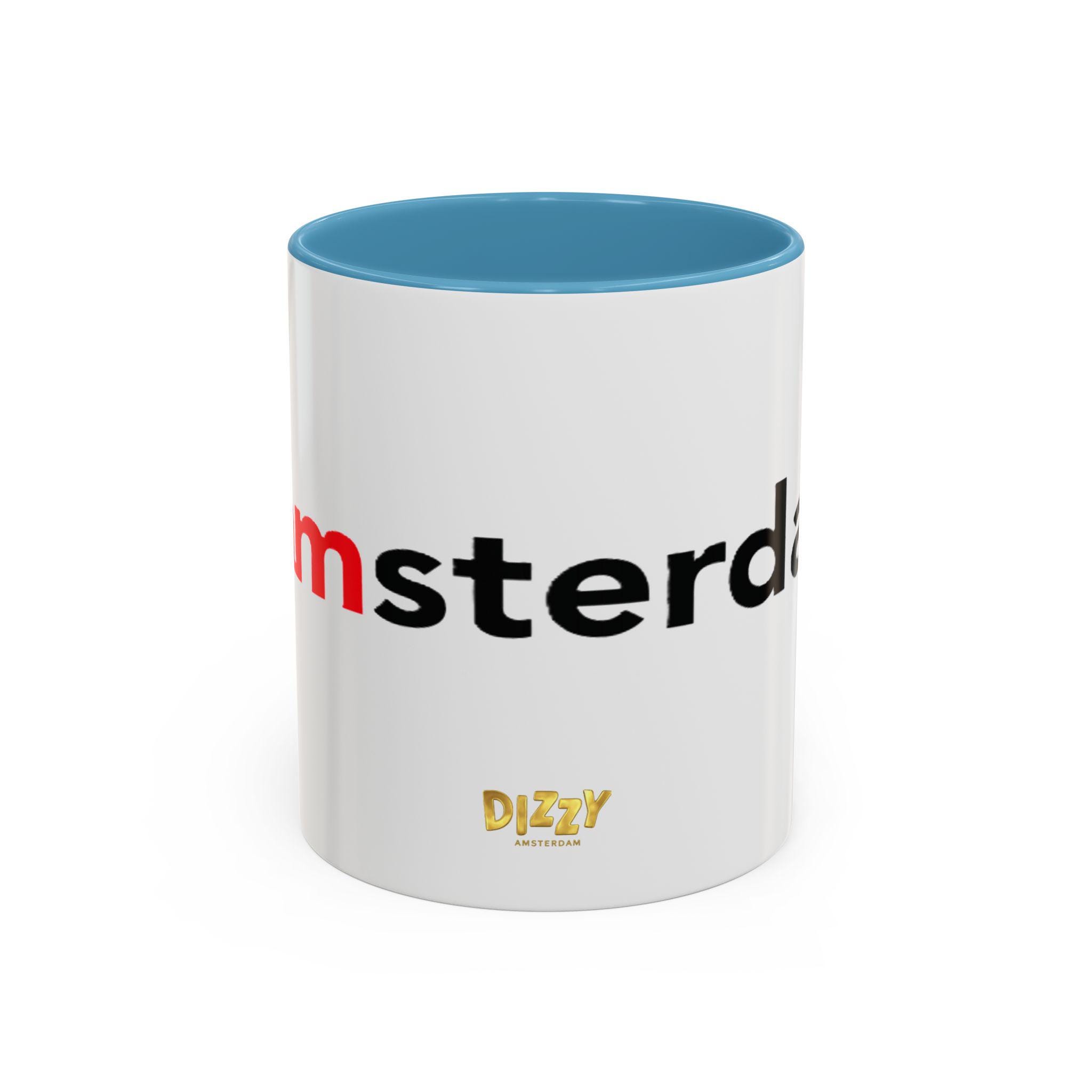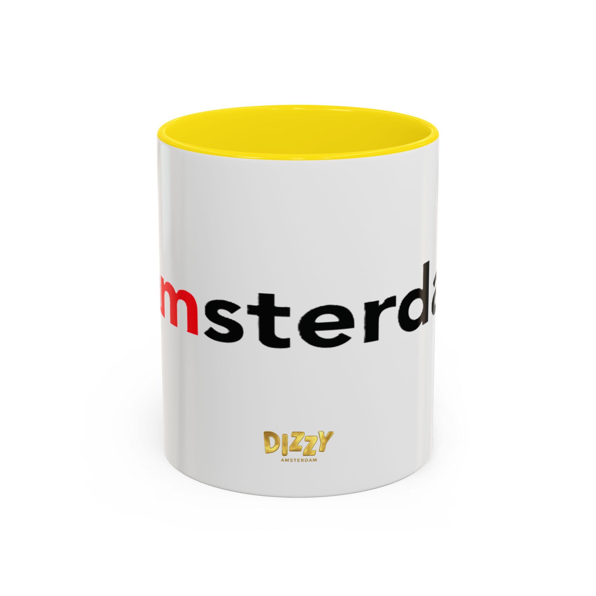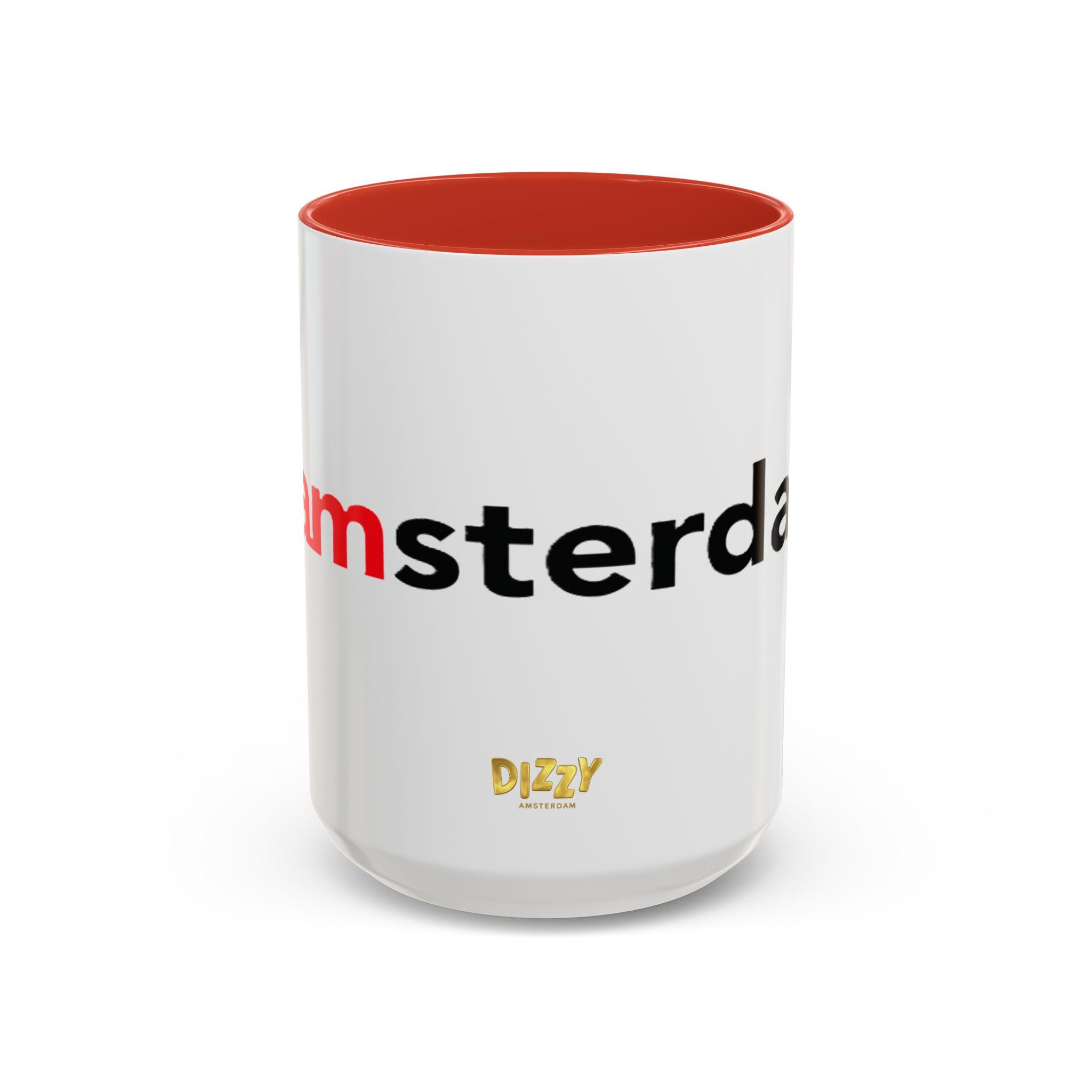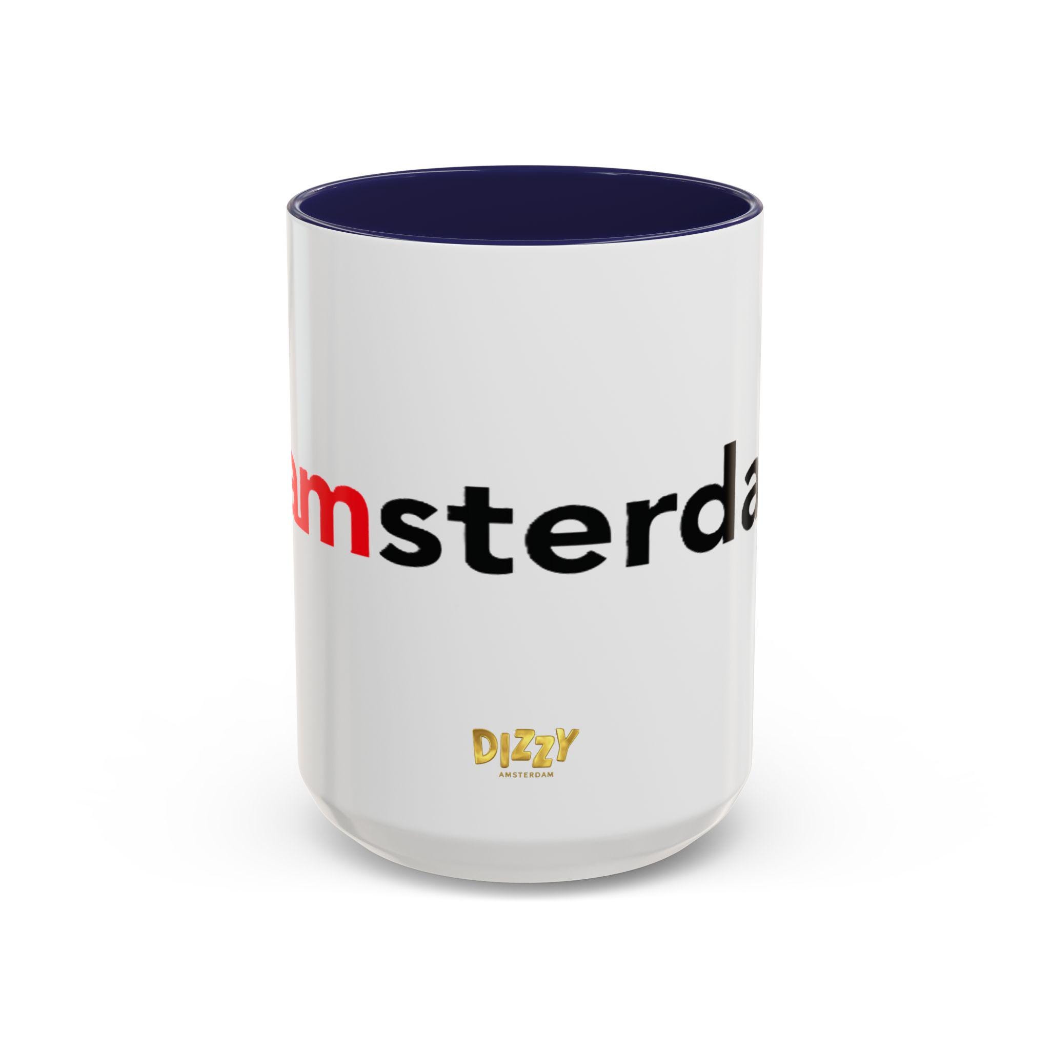 This Typography Accent Mug in DizzyAmsterdam Style is perfect for coffee or tea lovers who appreciate unique designs. The vibrant colors and eye-catching color contrast give off a trendy and modern vibe, making it a great addition to your morning routine. It is relevant for those who enjoy Amsterdam-inspired themes and want to add a pop of color to their kitchen. Ideal for holidays or occasions celebrating travel and exploration.