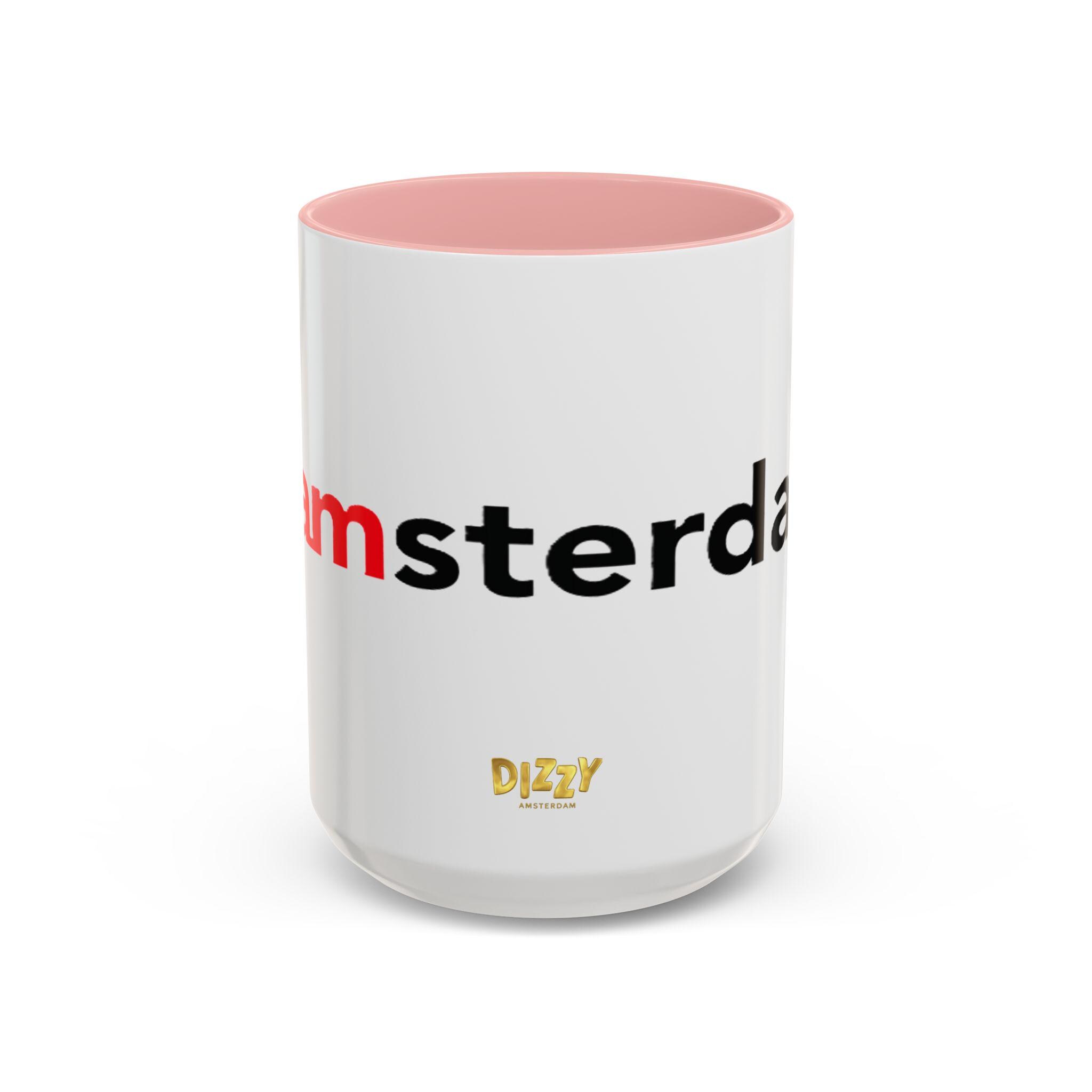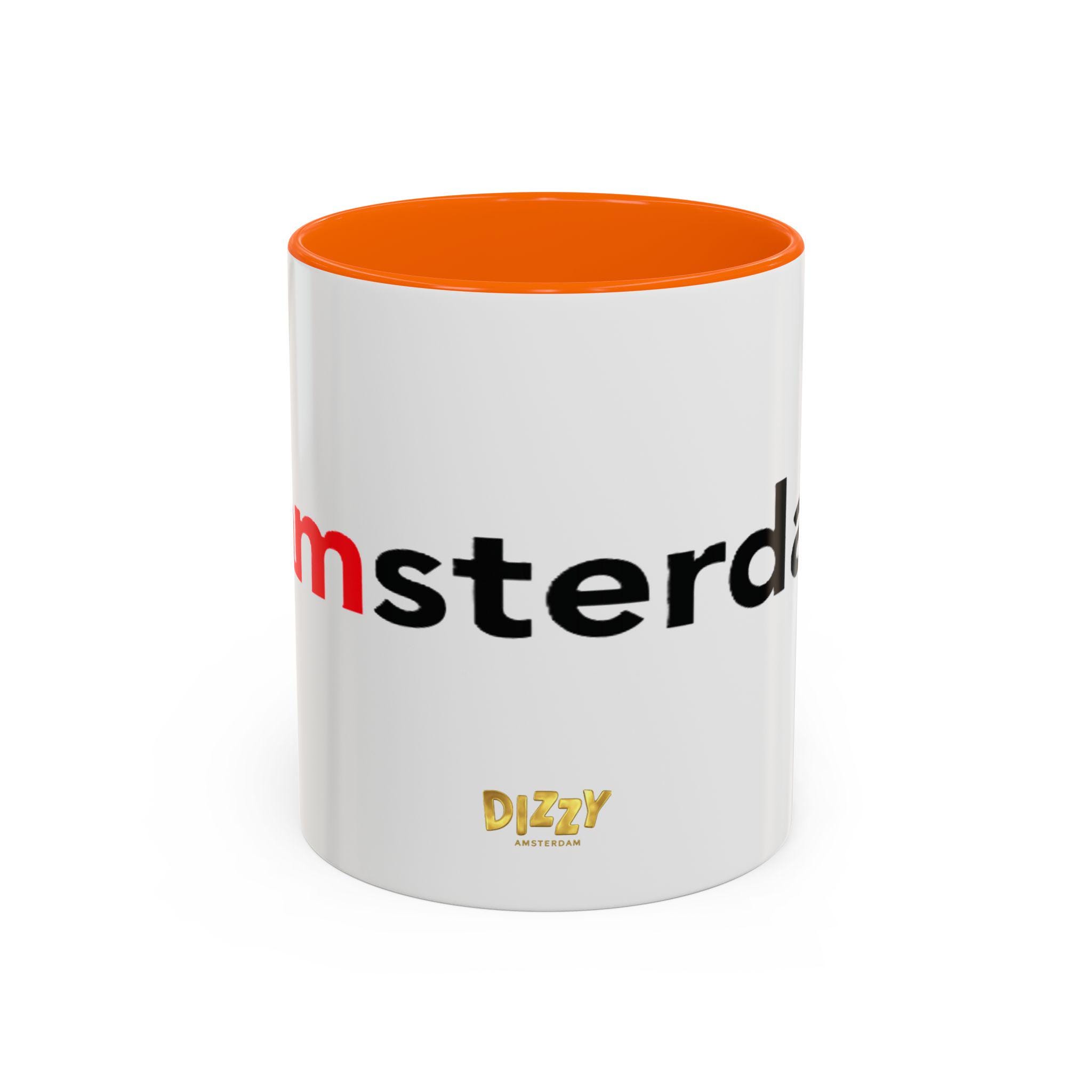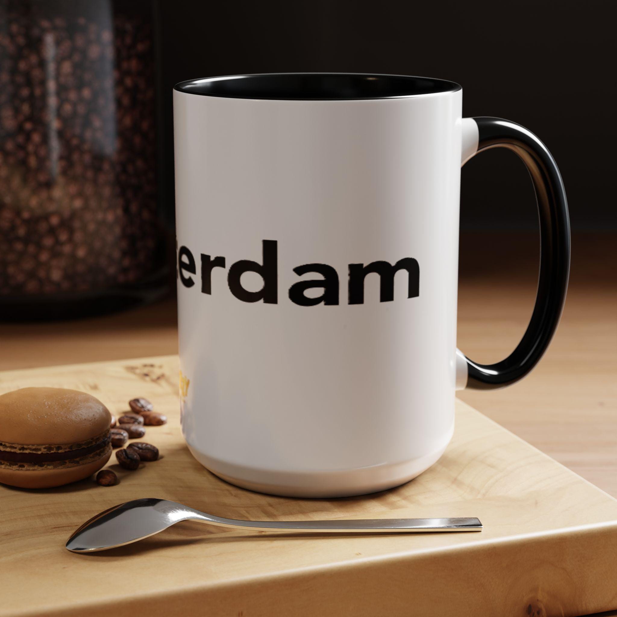 This Typography Accent Mug in DizzyAmsterdam Style is perfect for coffee or tea lovers who appreciate unique designs. The vibrant colors and eye-catching color contrast give off a trendy and modern vibe, making it a great addition to your morning routine. It is relevant for those who enjoy Amsterdam-inspired themes and want to add a pop of color to their kitchen. Ideal for holidays or occasions celebrating travel and exploration.