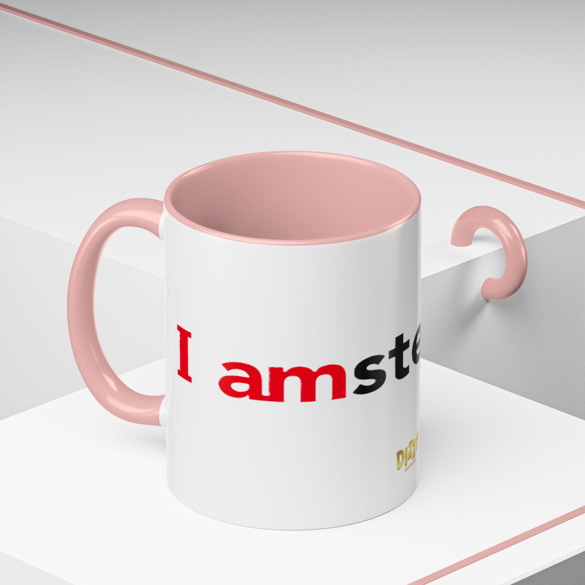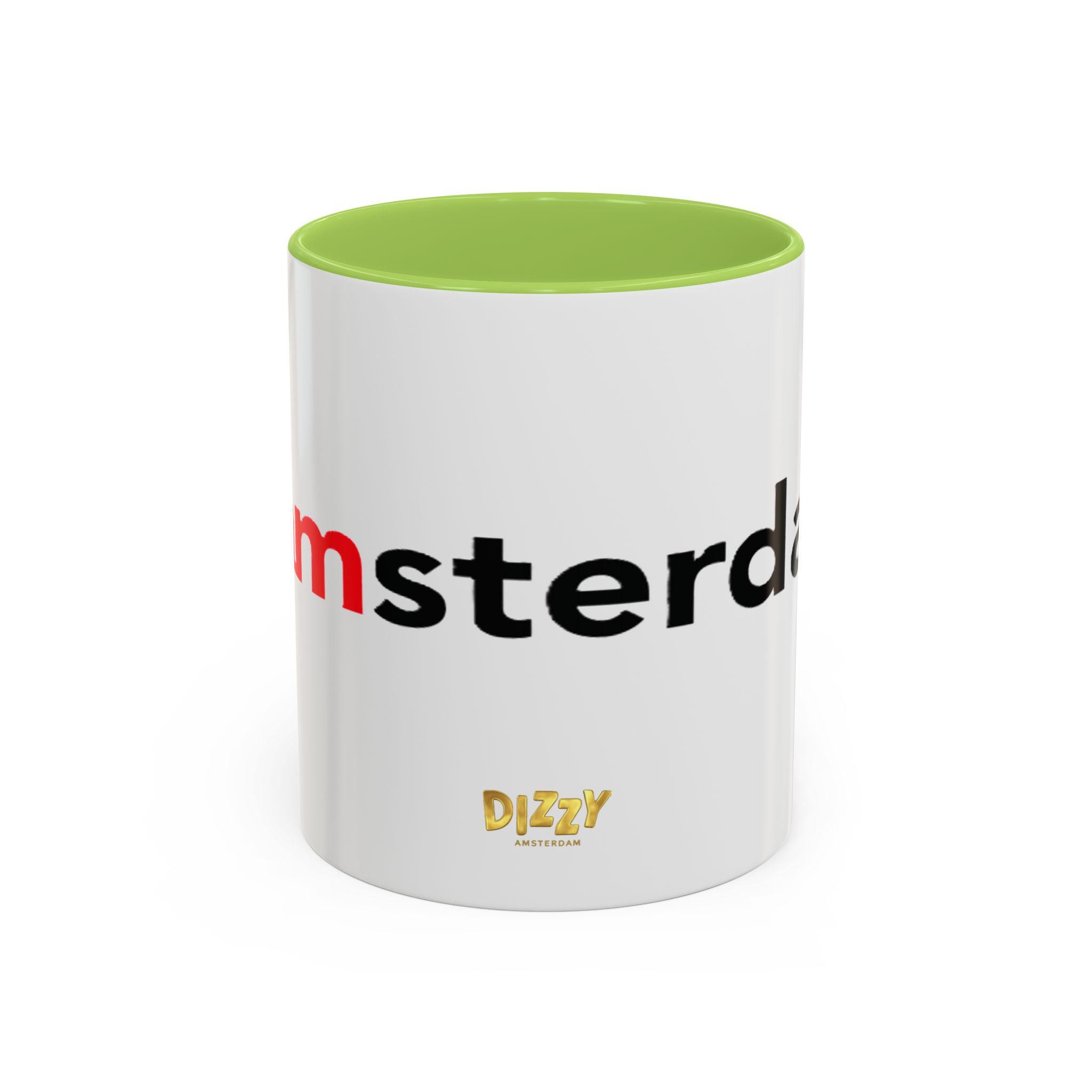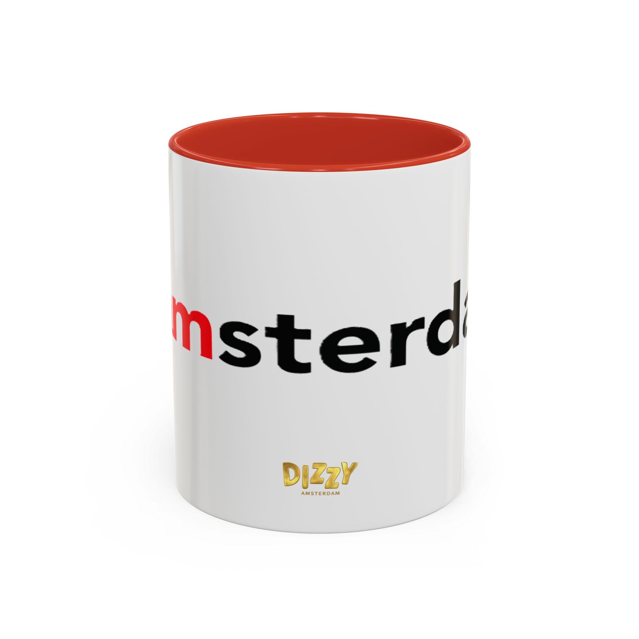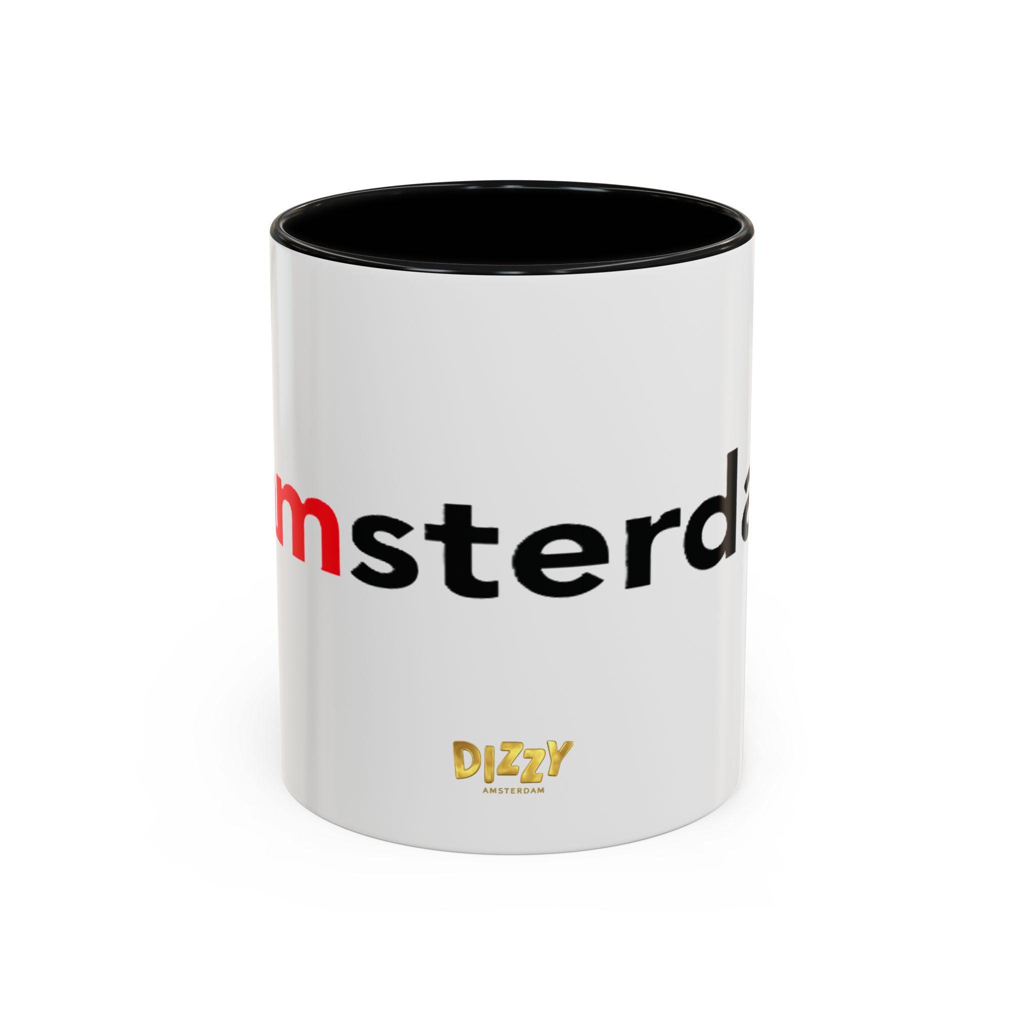 This Typography Accent Mug in DizzyAmsterdam Style is perfect for coffee or tea lovers who appreciate unique designs. The vibrant colors and eye-catching color contrast give off a trendy and modern vibe, making it a great addition to your morning routine. It is relevant for those who enjoy Amsterdam-inspired themes and want to add a pop of color to their kitchen. Ideal for holidays or occasions celebrating travel and exploration.