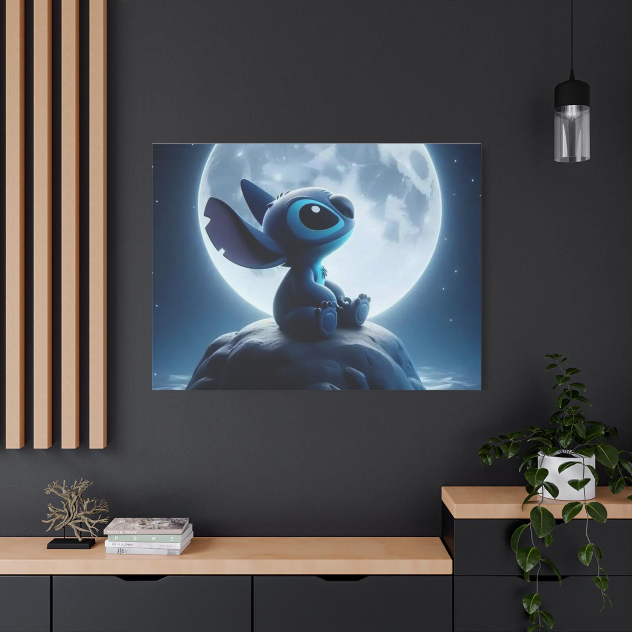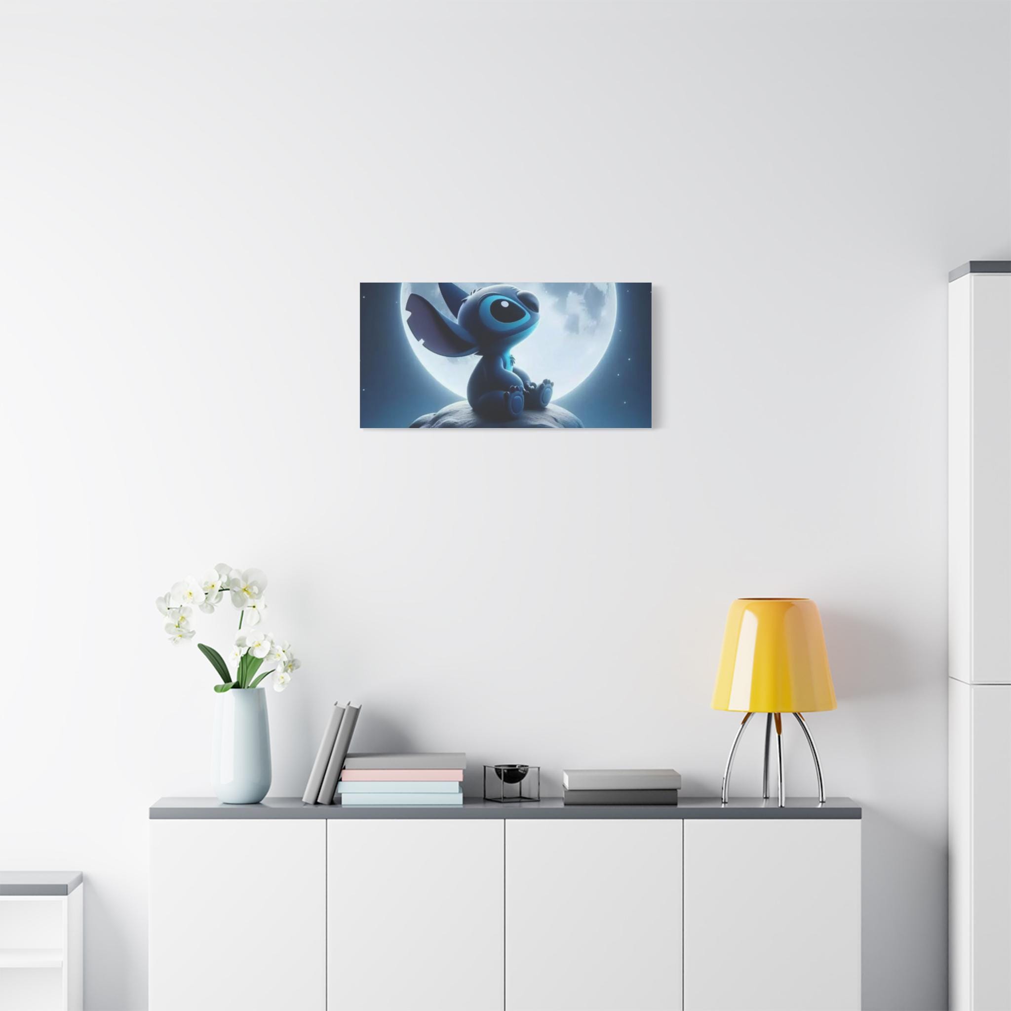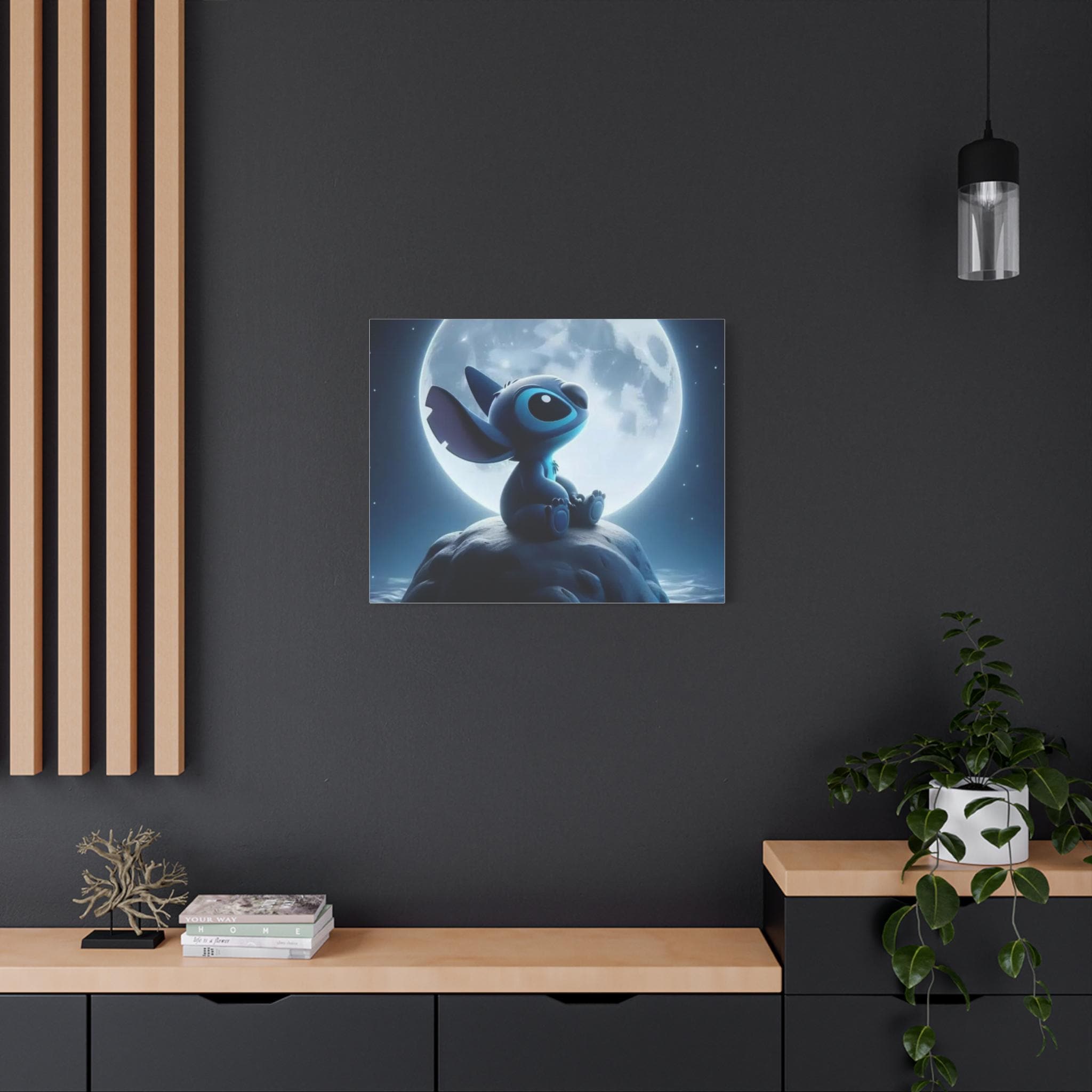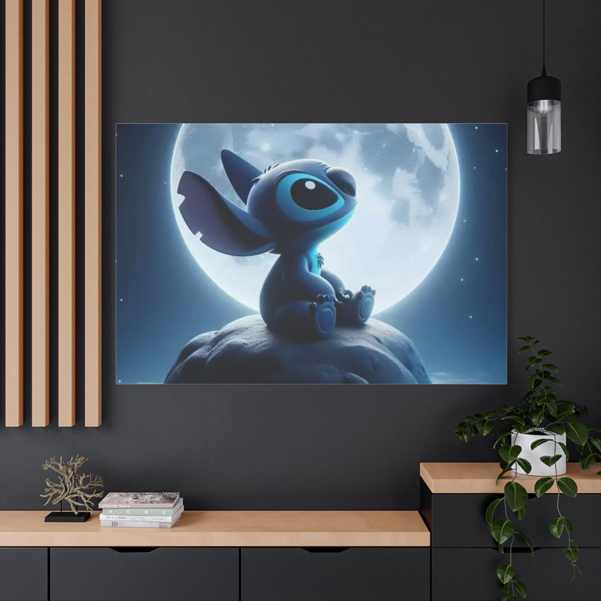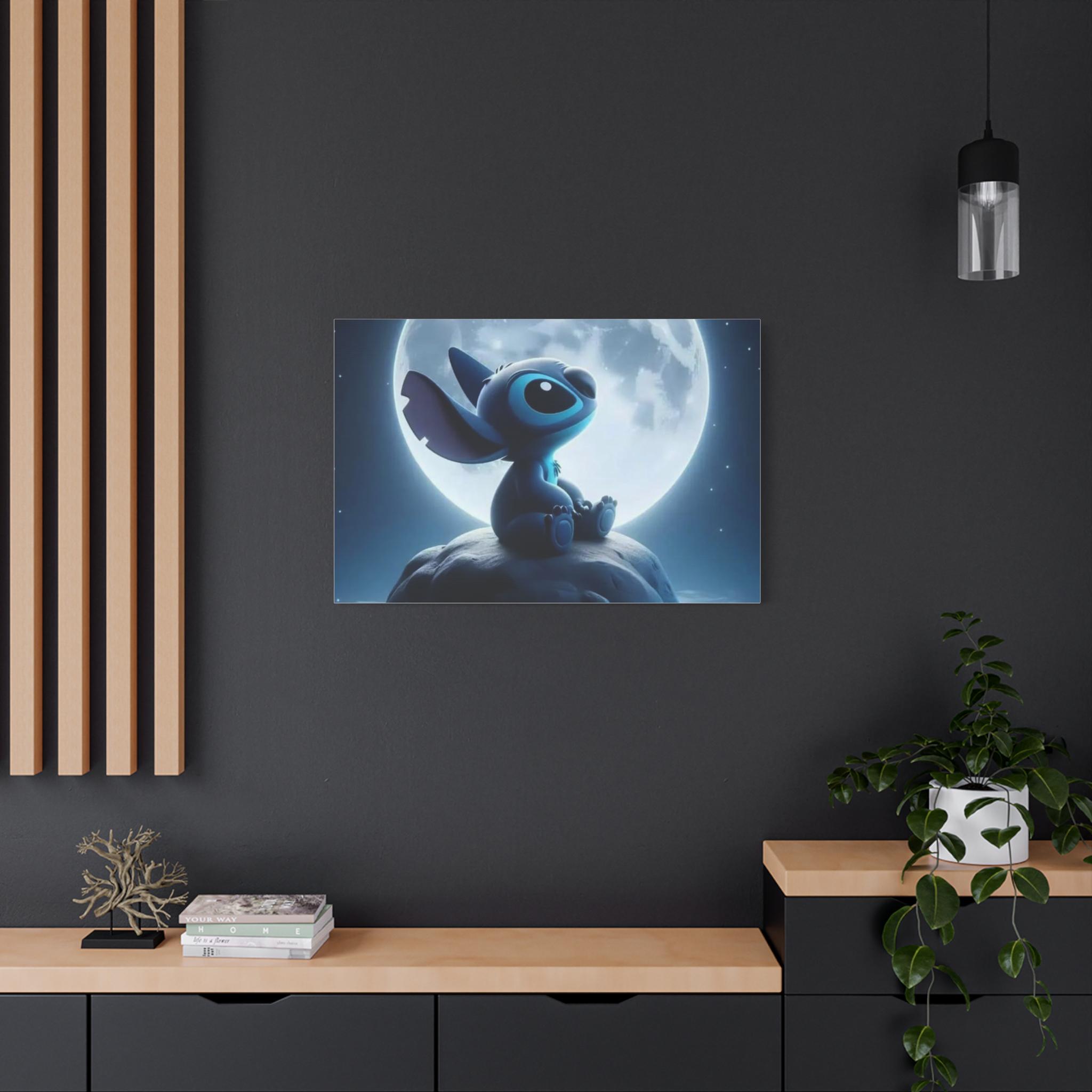 Imagine a quiet night, the hush of a moonlit sky, and a tiny companion looking up in wonder. This canvas captures that stillness and invites it into your space—an object that calms, delights, and sparks gentle imagination.
