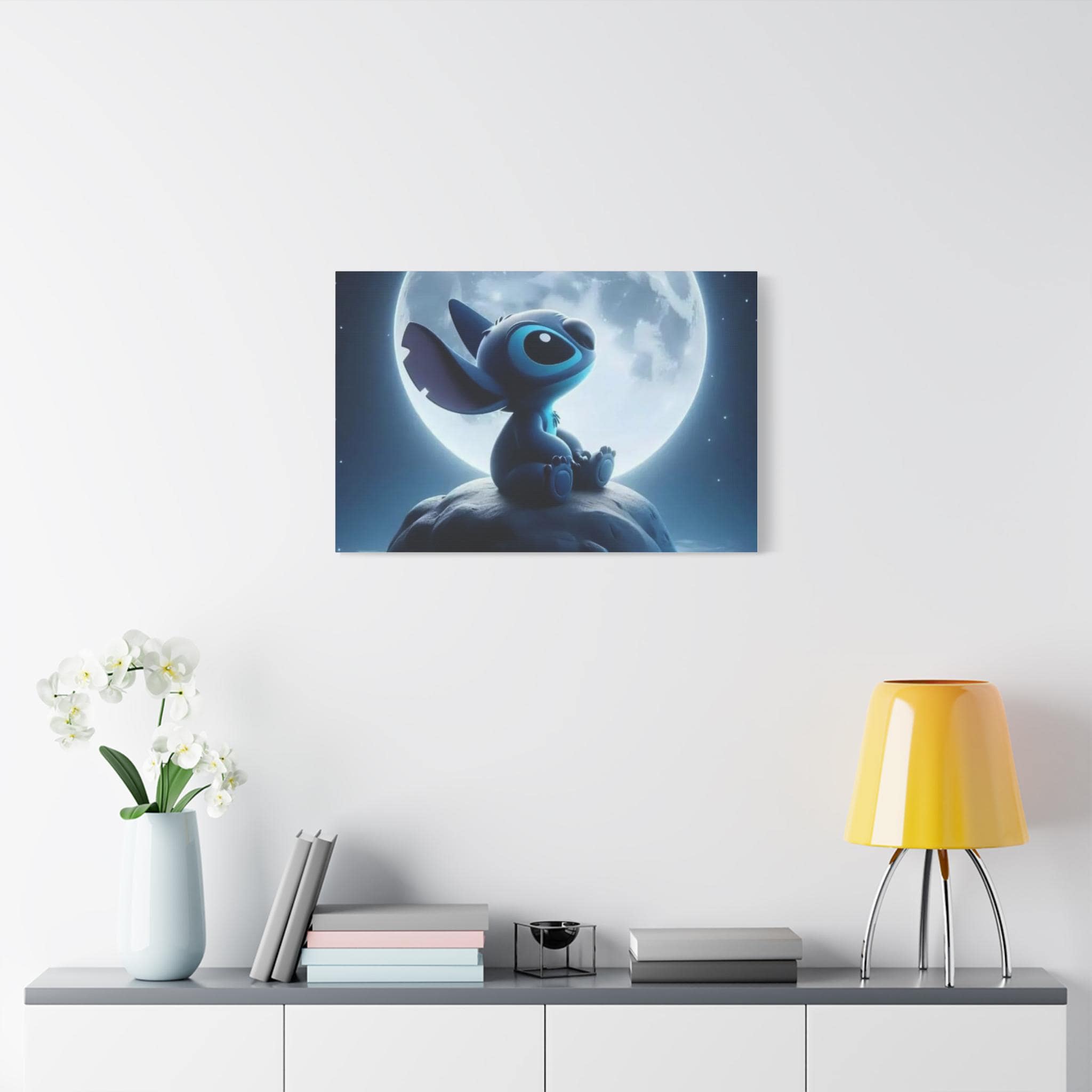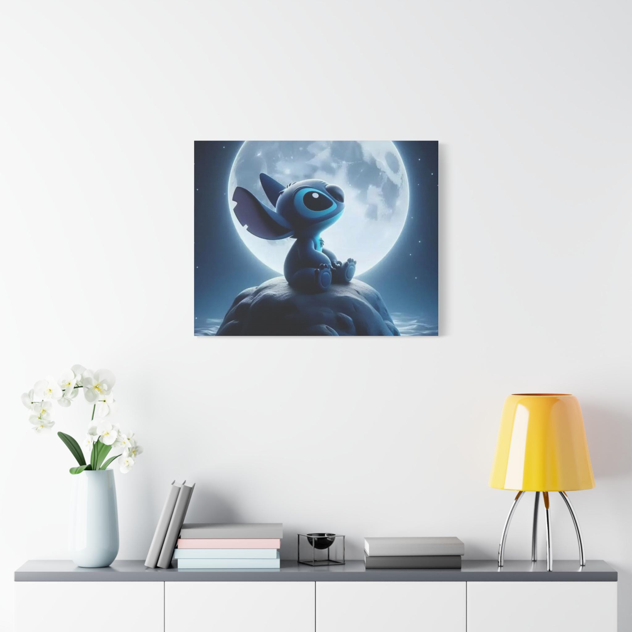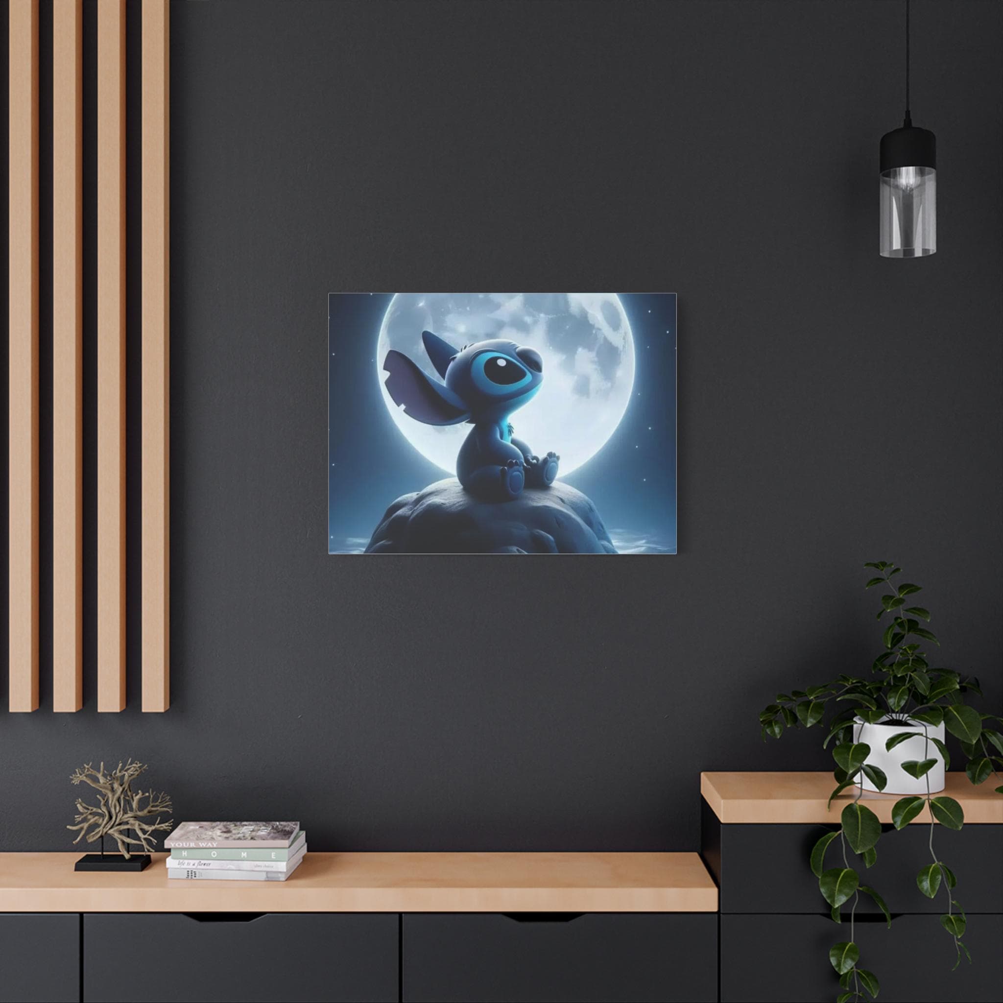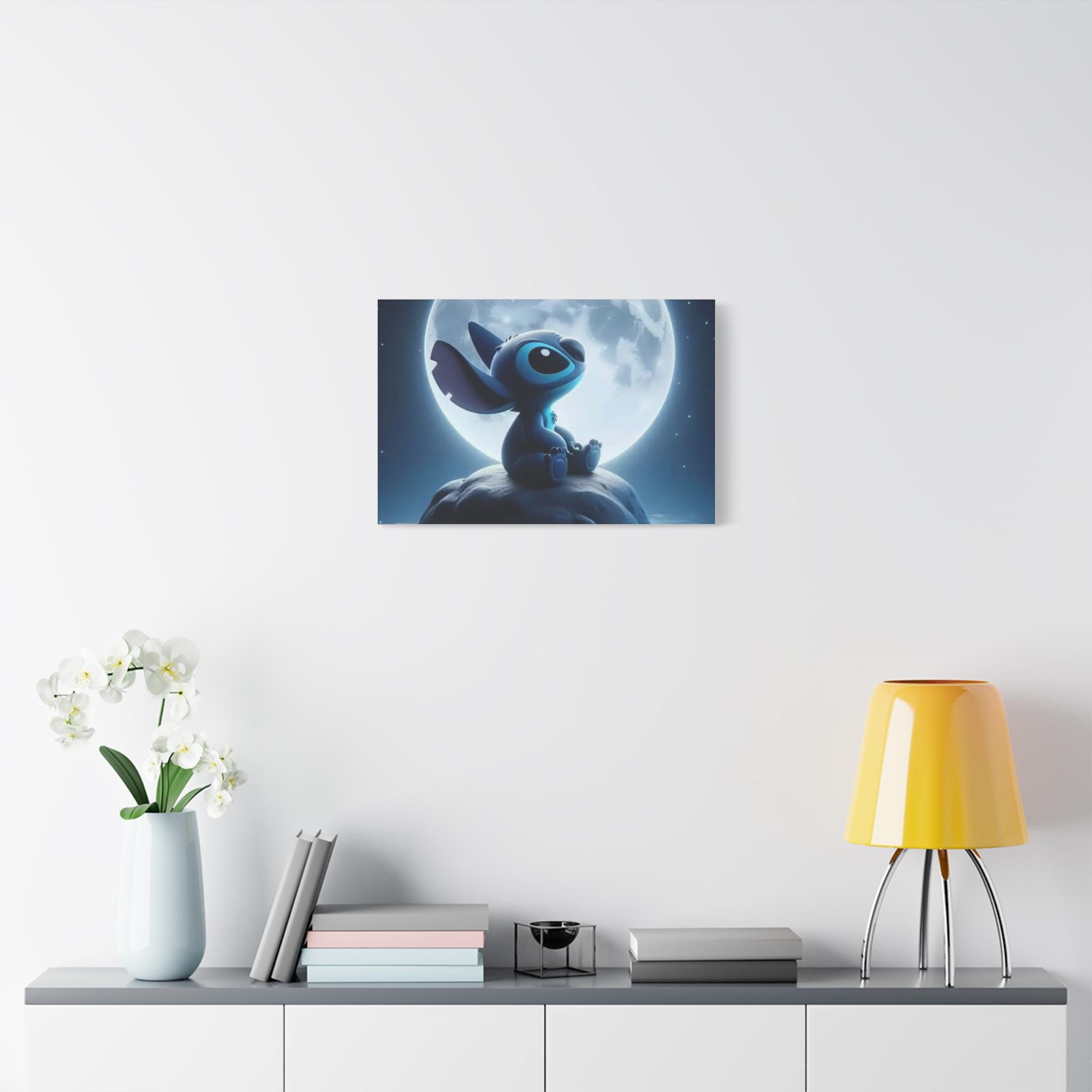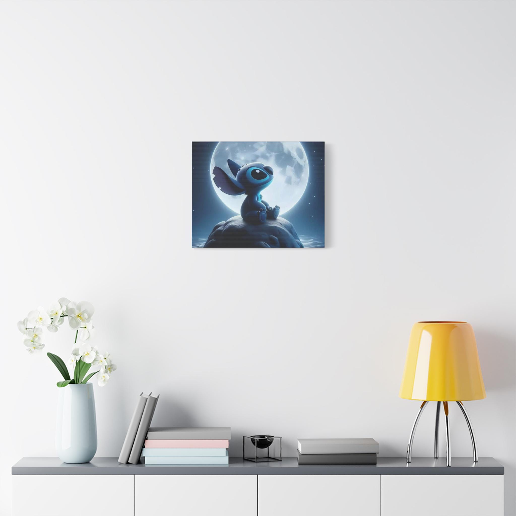 Imagine a quiet night, the hush of a moonlit sky, and a tiny companion looking up in wonder. This canvas captures that stillness and invites it into your space—an object that calms, delights, and sparks gentle imagination.